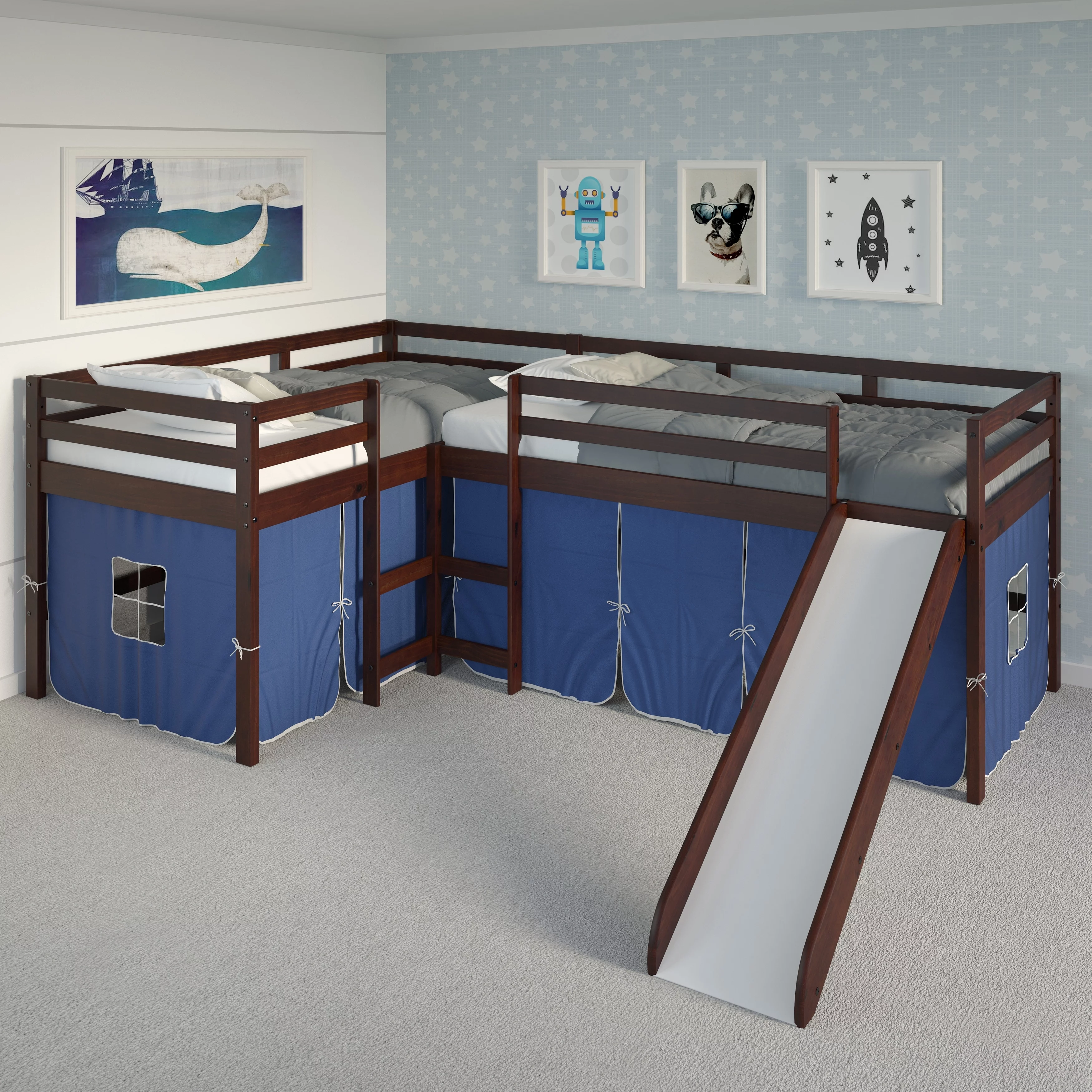 Dark Walnut & Dark Oak Solid Wood Queen Bedroom Set 3pcs FOA CM7363 Fulton