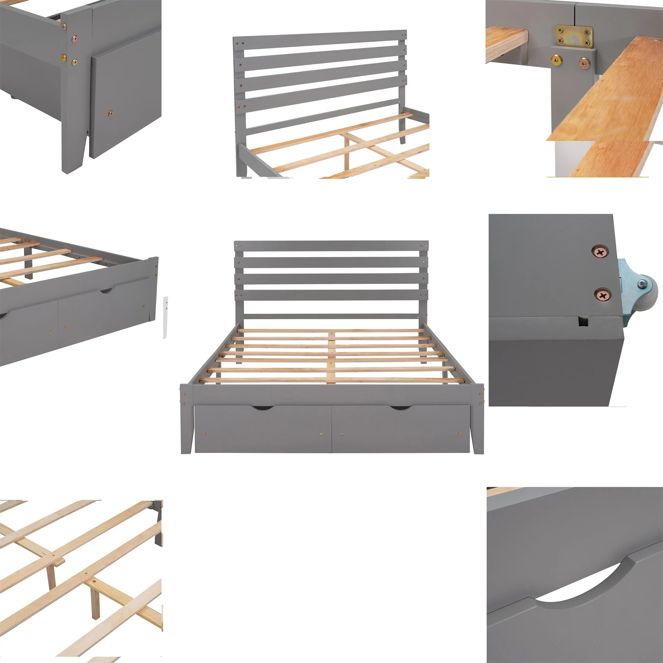 YJTONWIN Queen Bed Storage Drawer, Solid Wood Bed Frame W/ Headboard, Kids Bed
