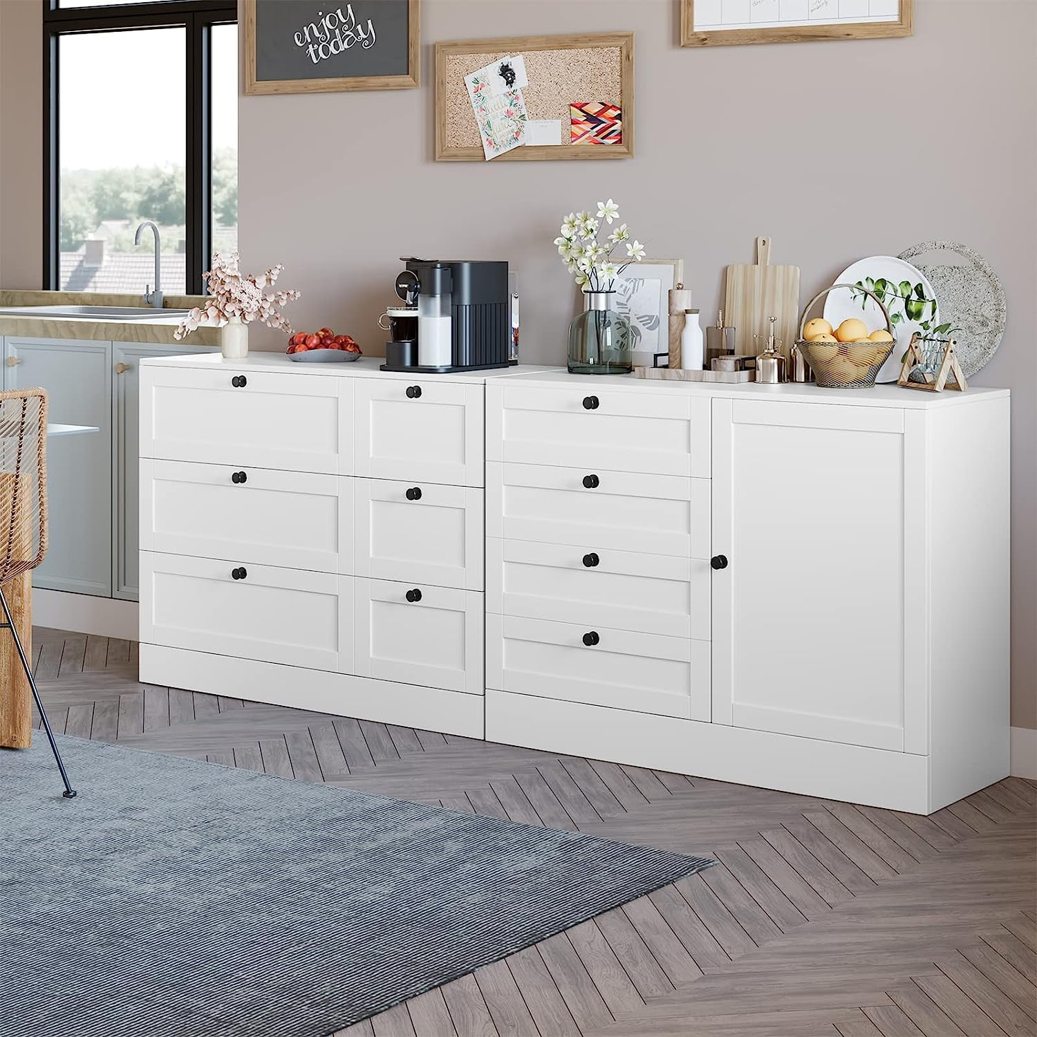 Docooler Full size Wooden House Bed with Trundle and 3 Storage Drawers-White