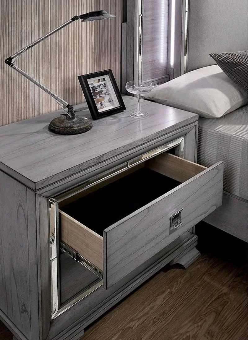 Contemporary Light Gray Solid Wood Queen Bedroom Set 6pcs FOA CM7579 Alanis