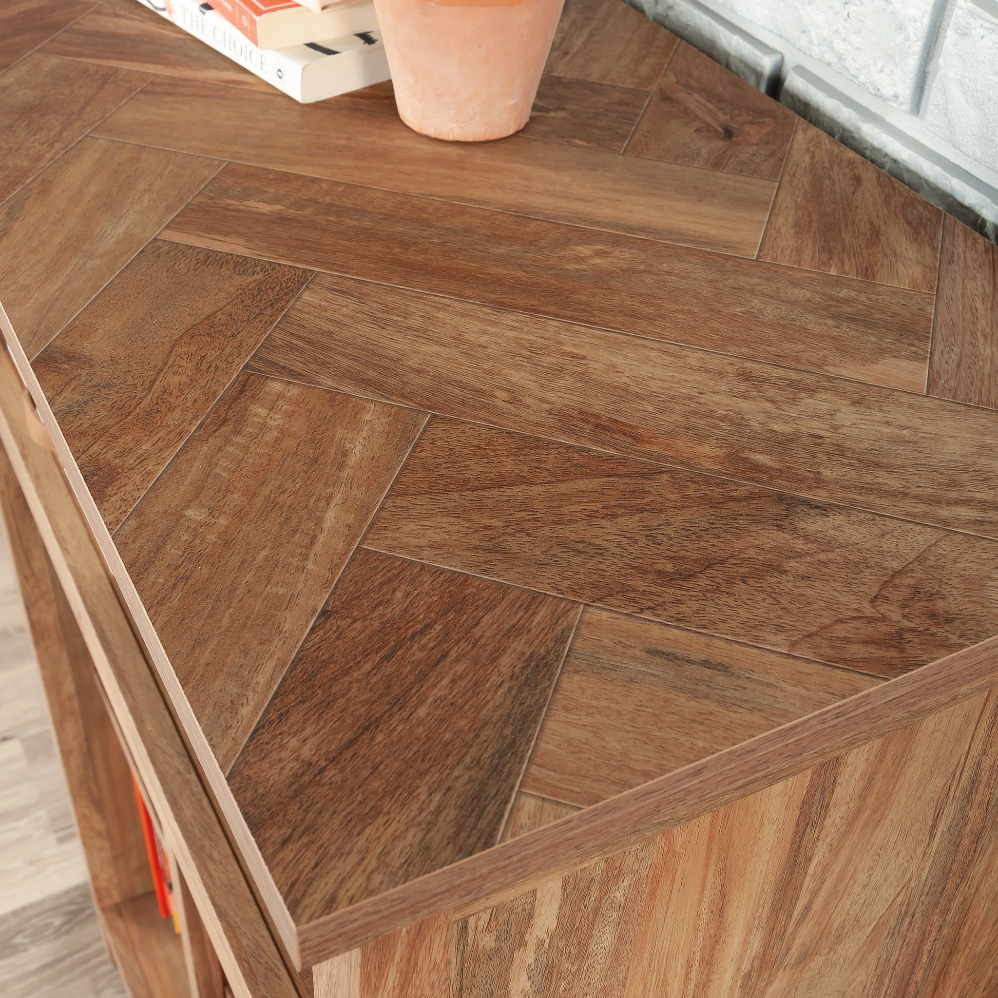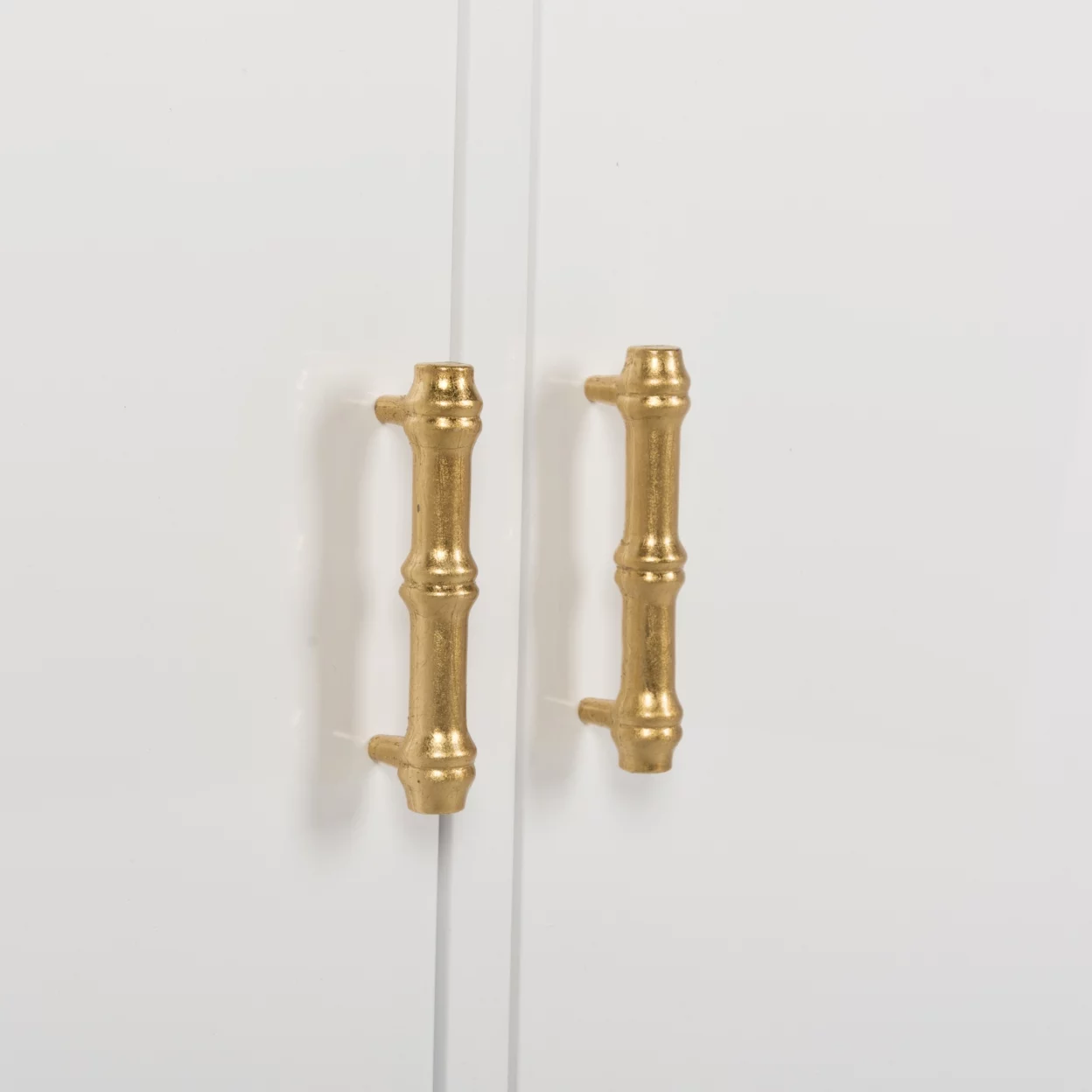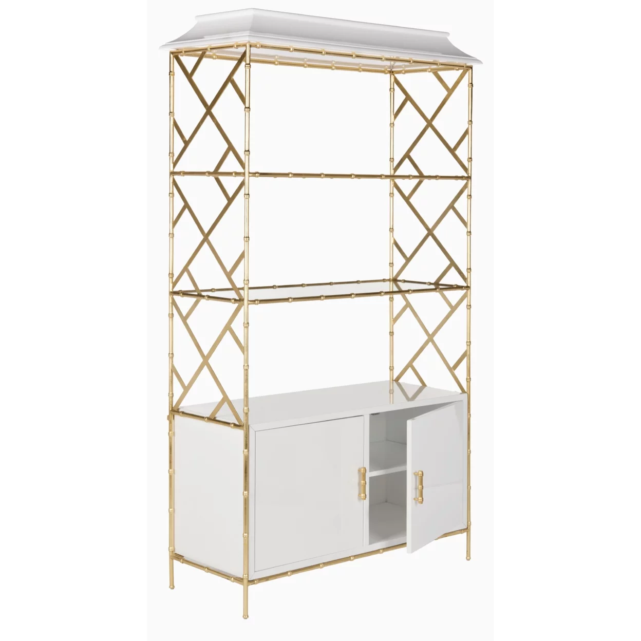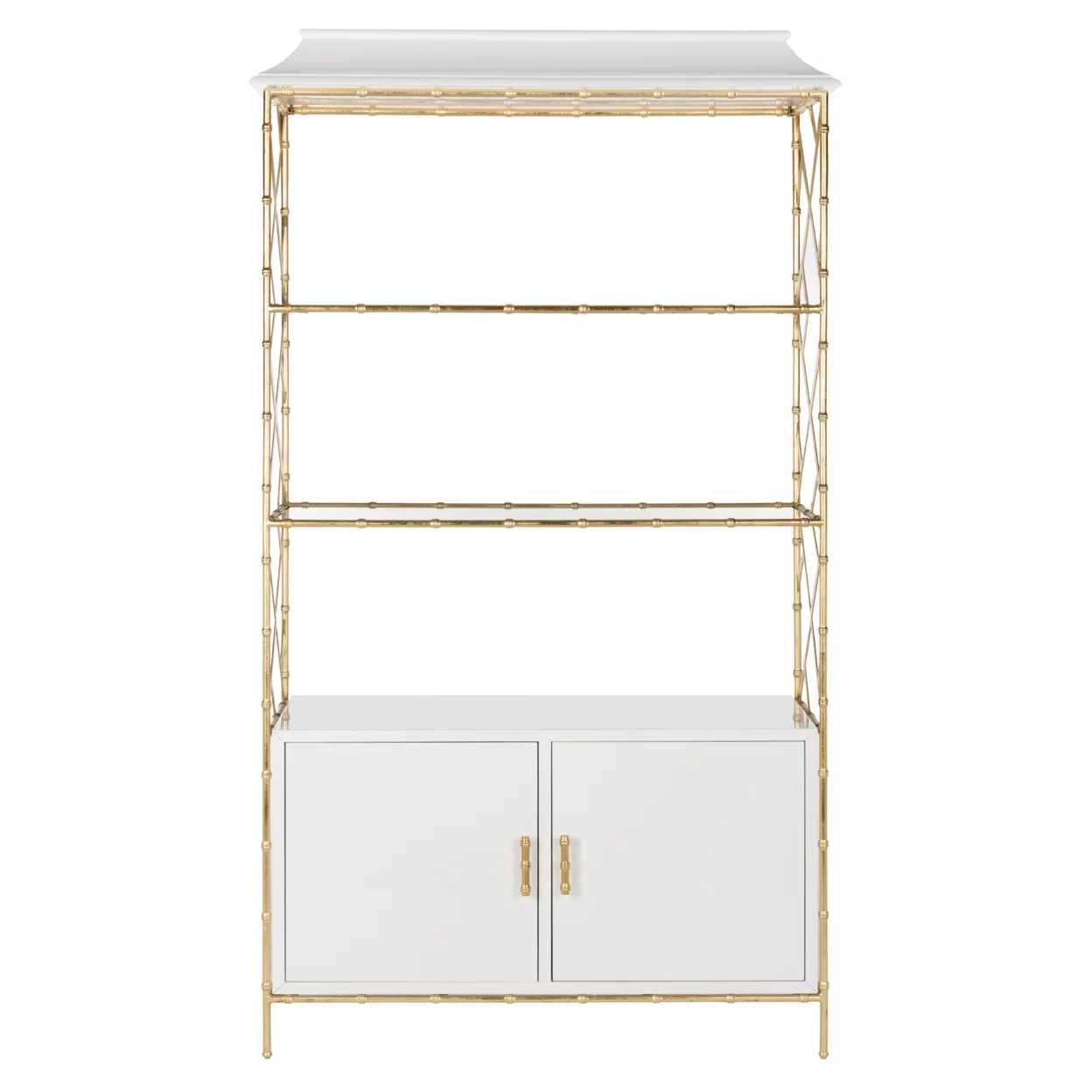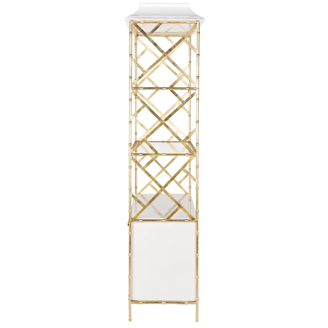 Homfa Trapezoidal Bookshelf, 3-Tier Open Storage Shelves with 3 Drawers, White and Gold Finish