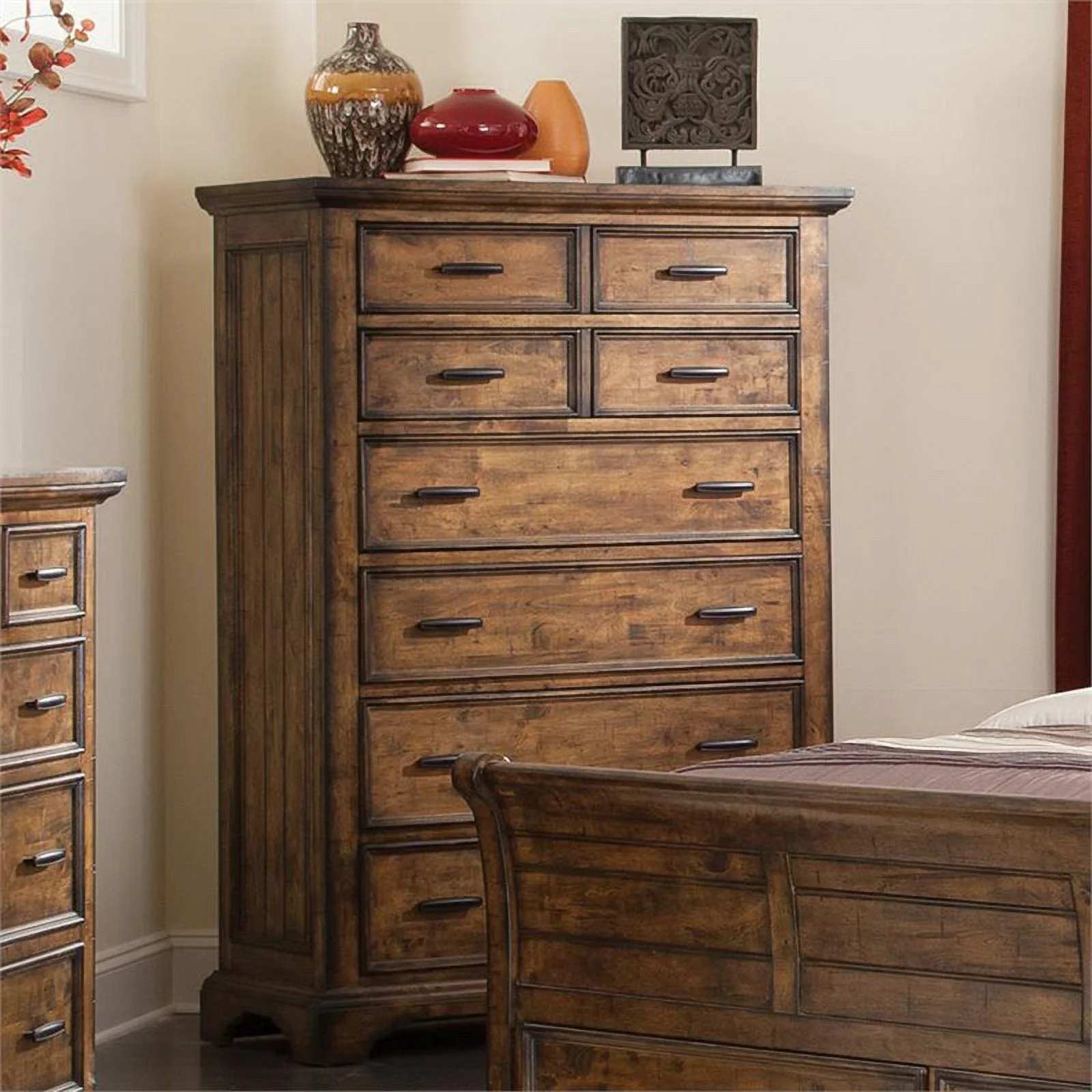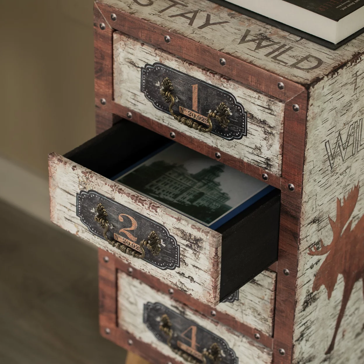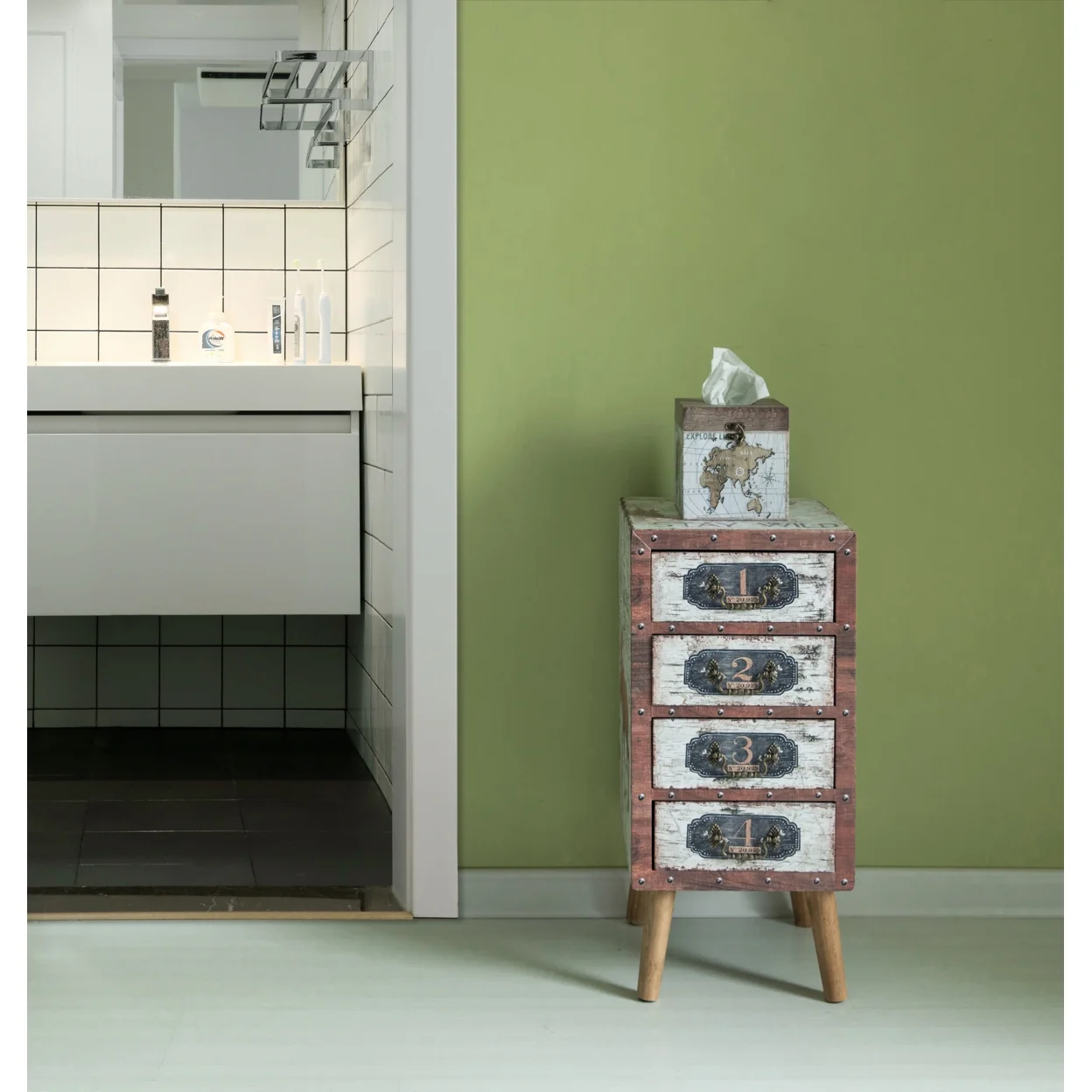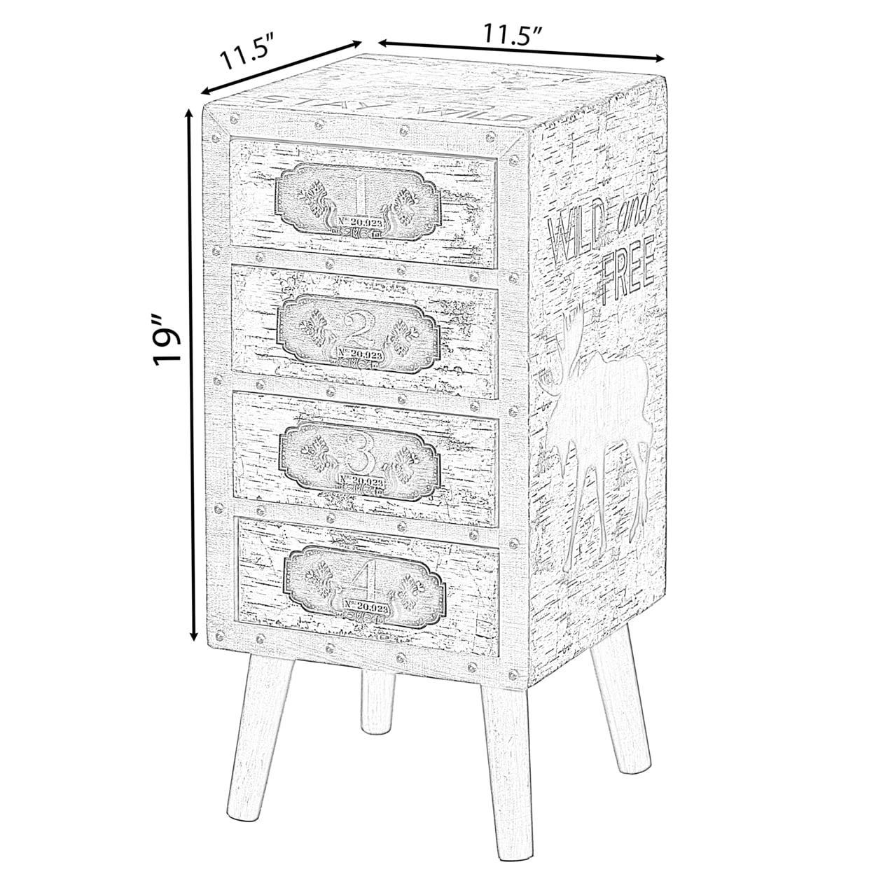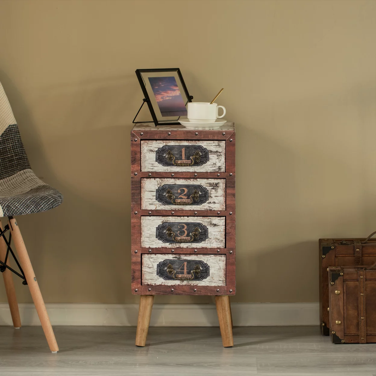 Antique Rustic Brown Wood Vintage Tallboy Chest with 4 Drawers and Legs