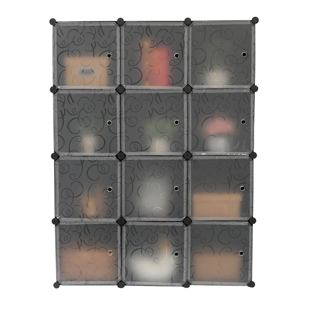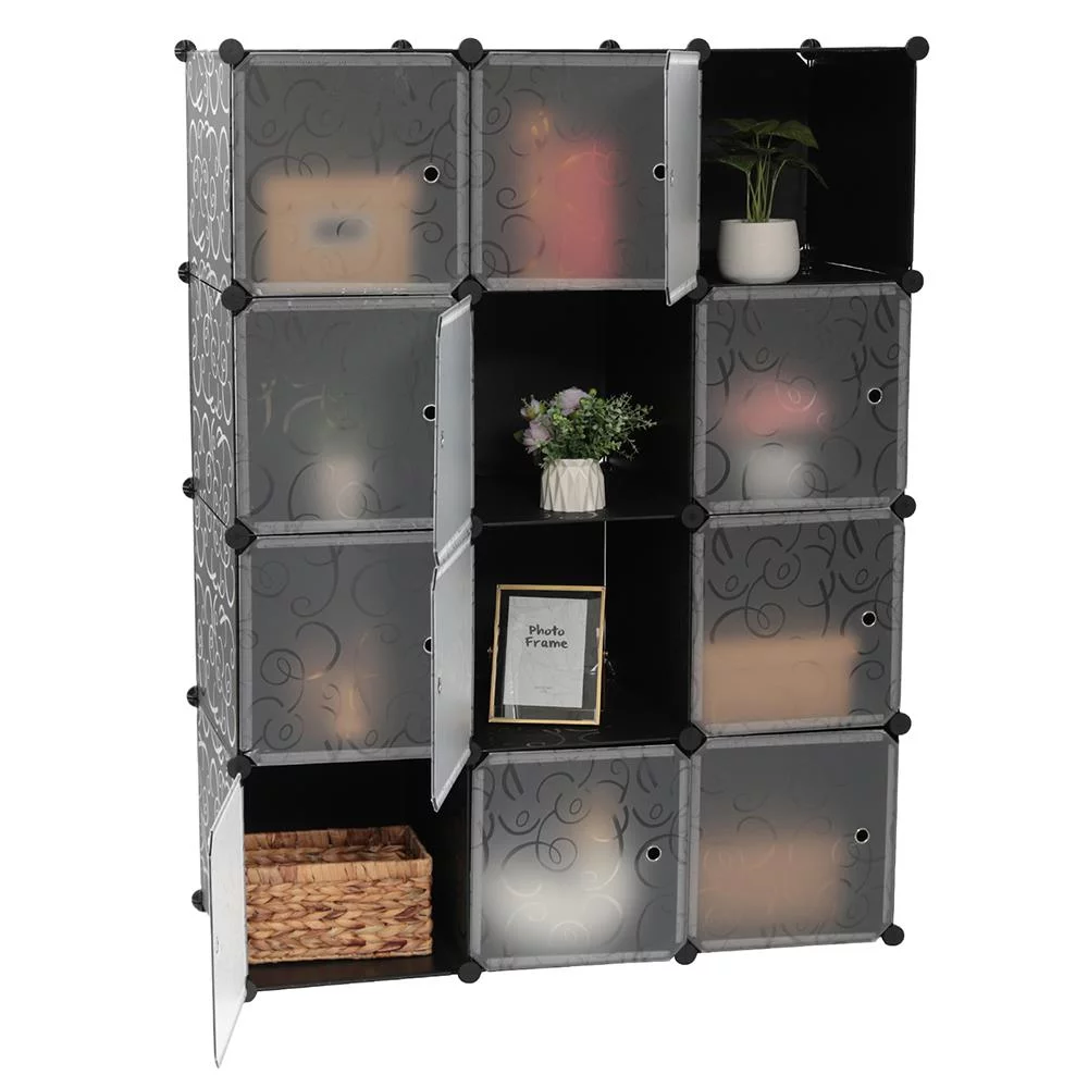 GoDecor 12-Cube DIY Closet Cabinet Plastic Closet Organizer Shelving Bookcase with White Doors and Black Color