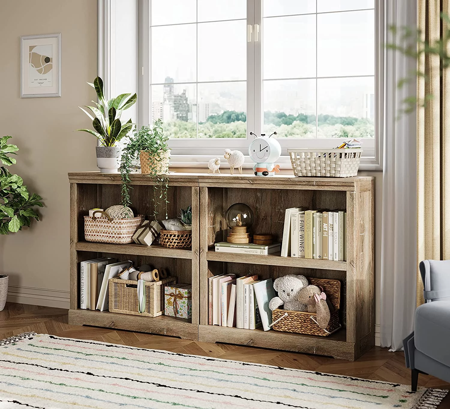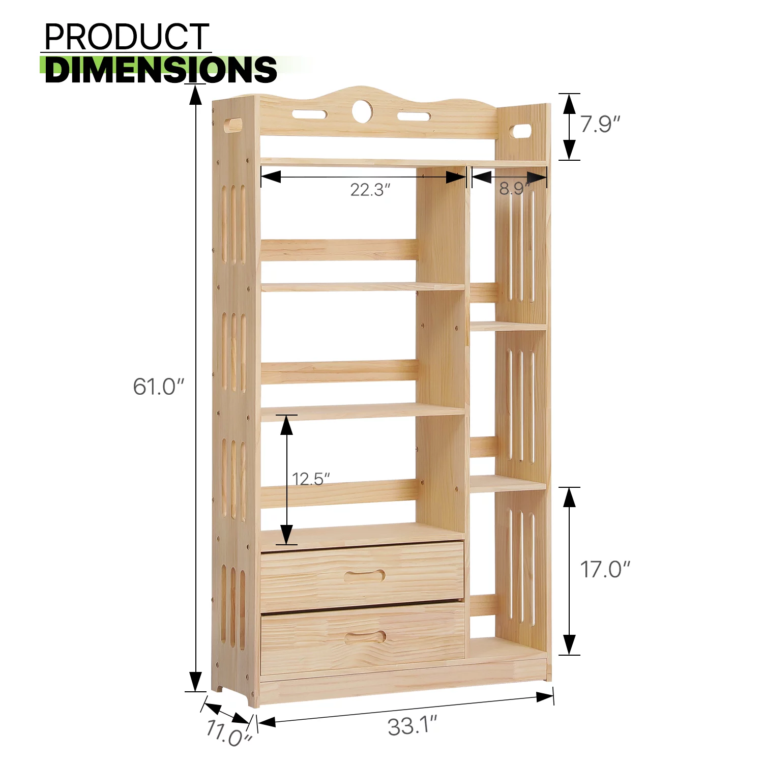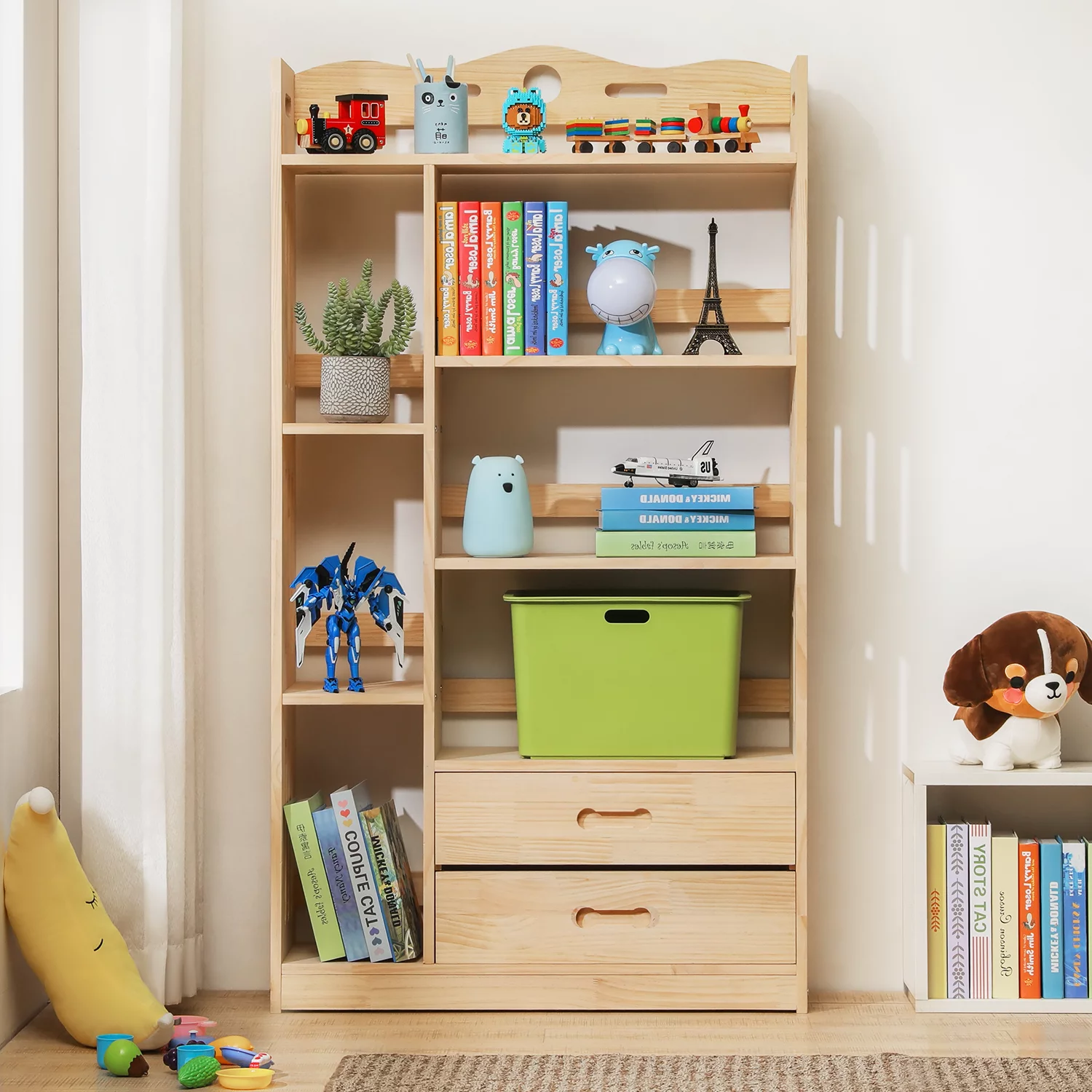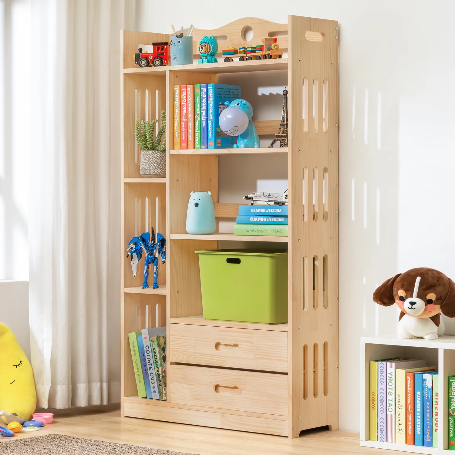 Magshion Wood 5 Shelves 2 Drawers Bookshelf, Books Toys Organizer Bookcase, Natural, for Home