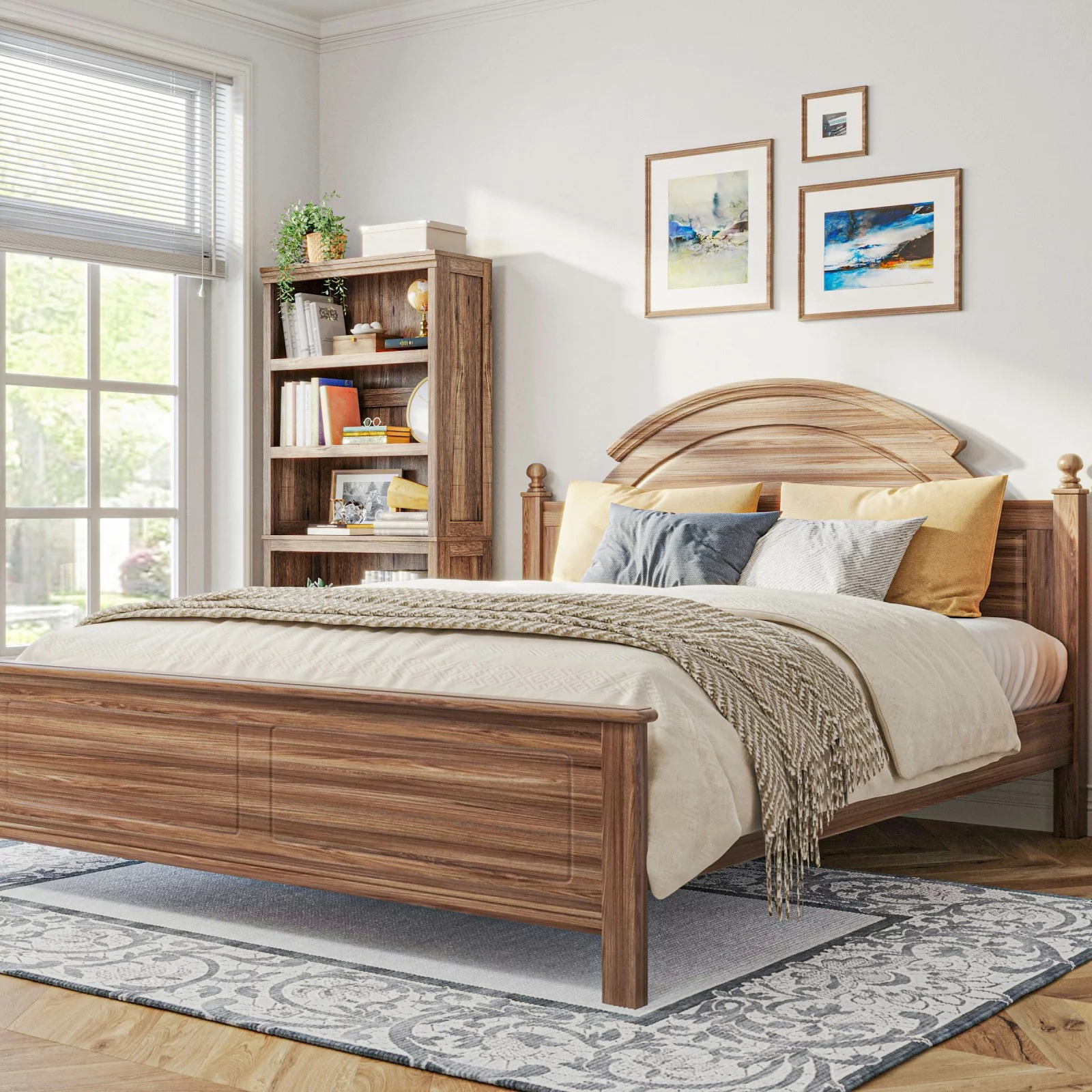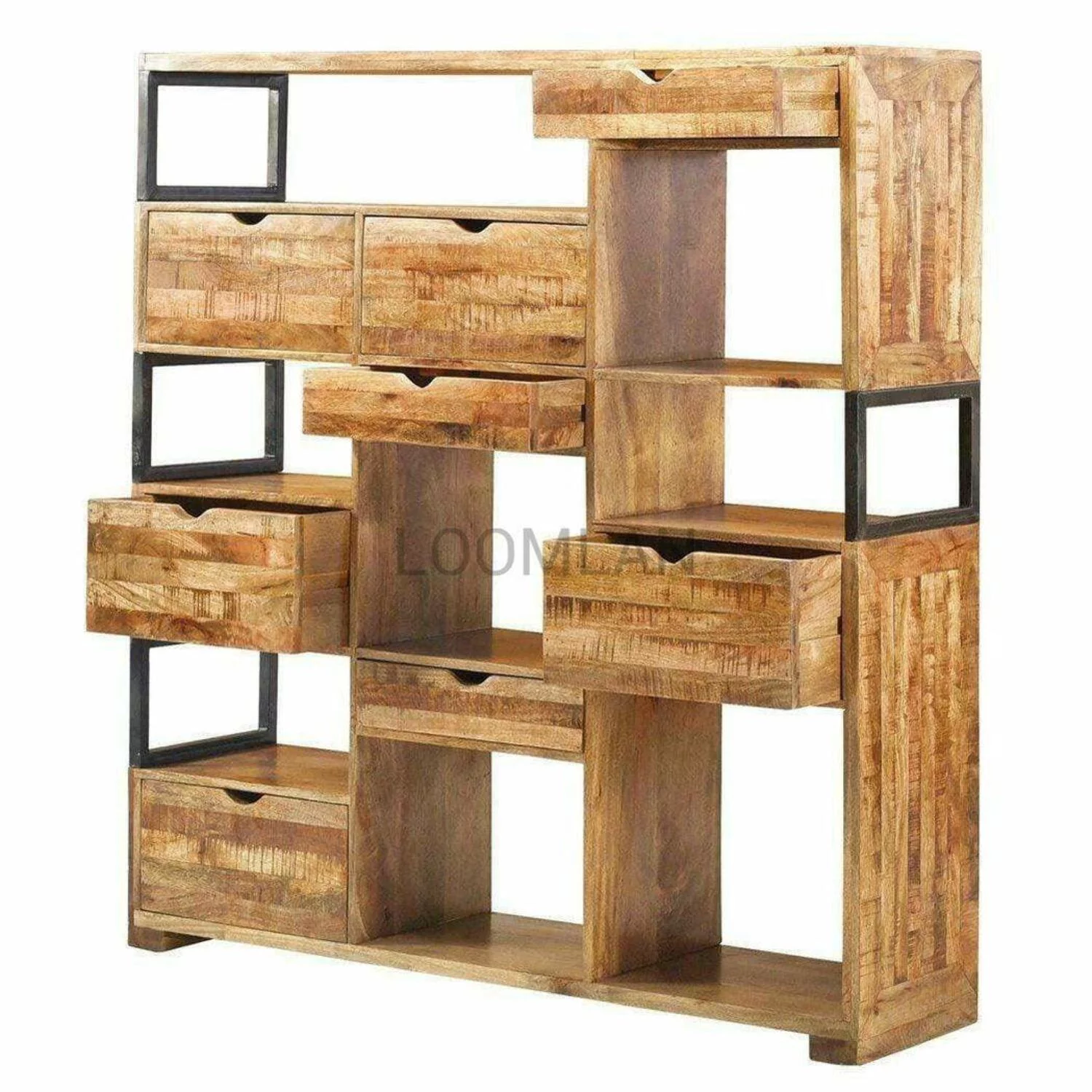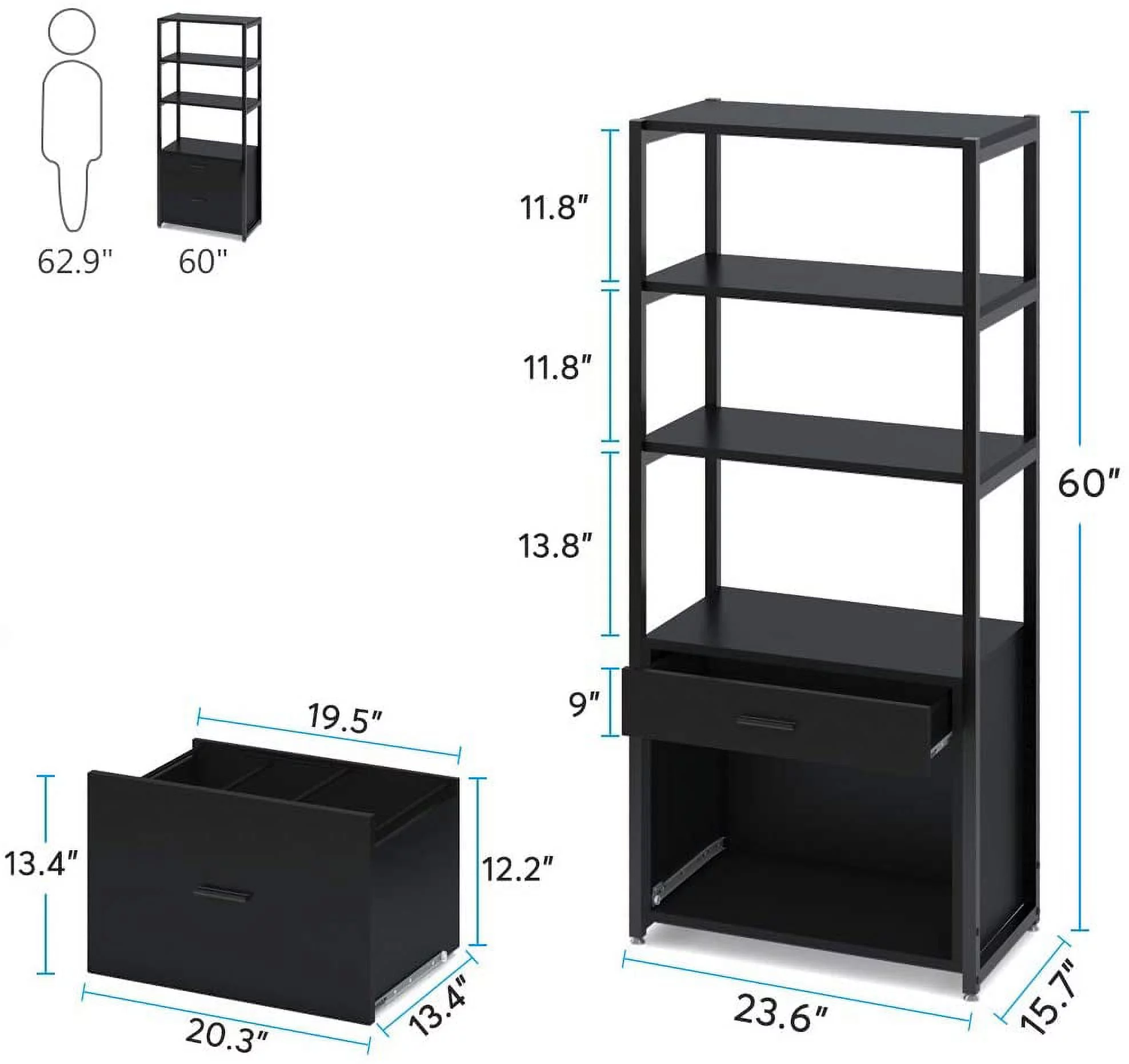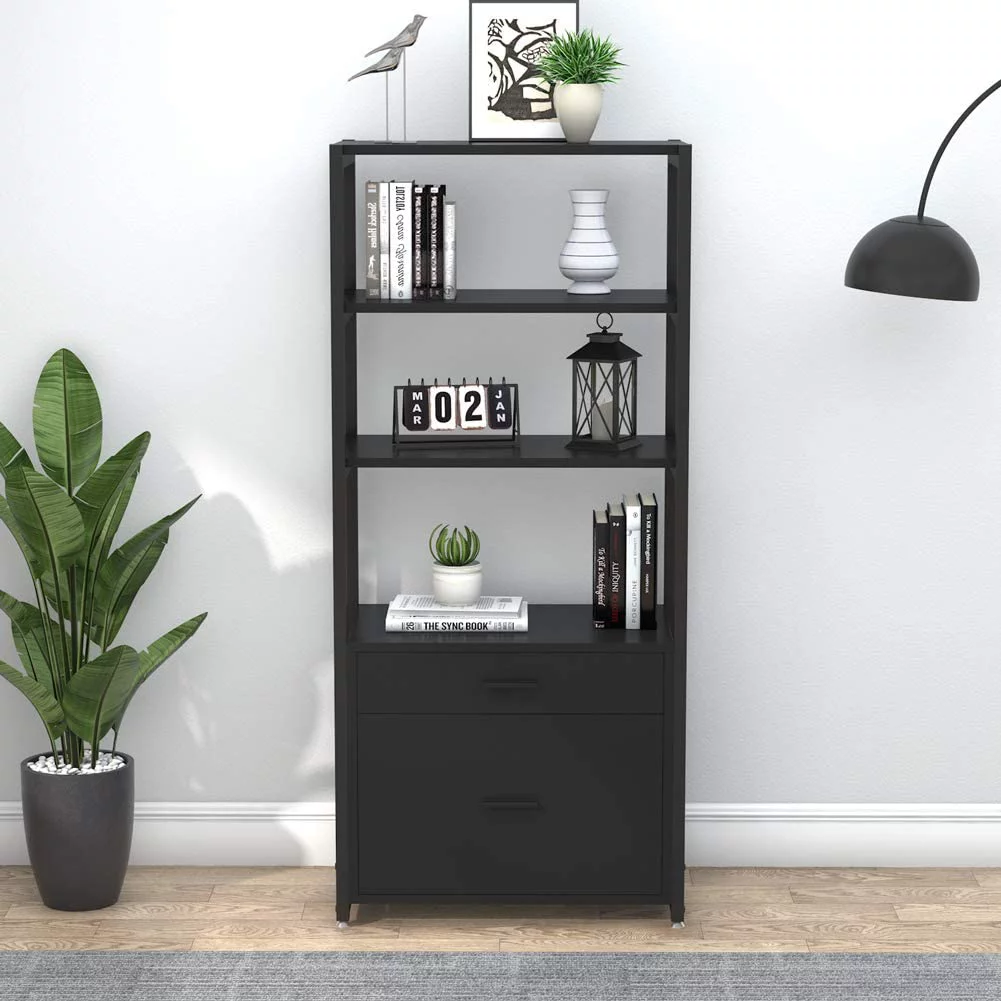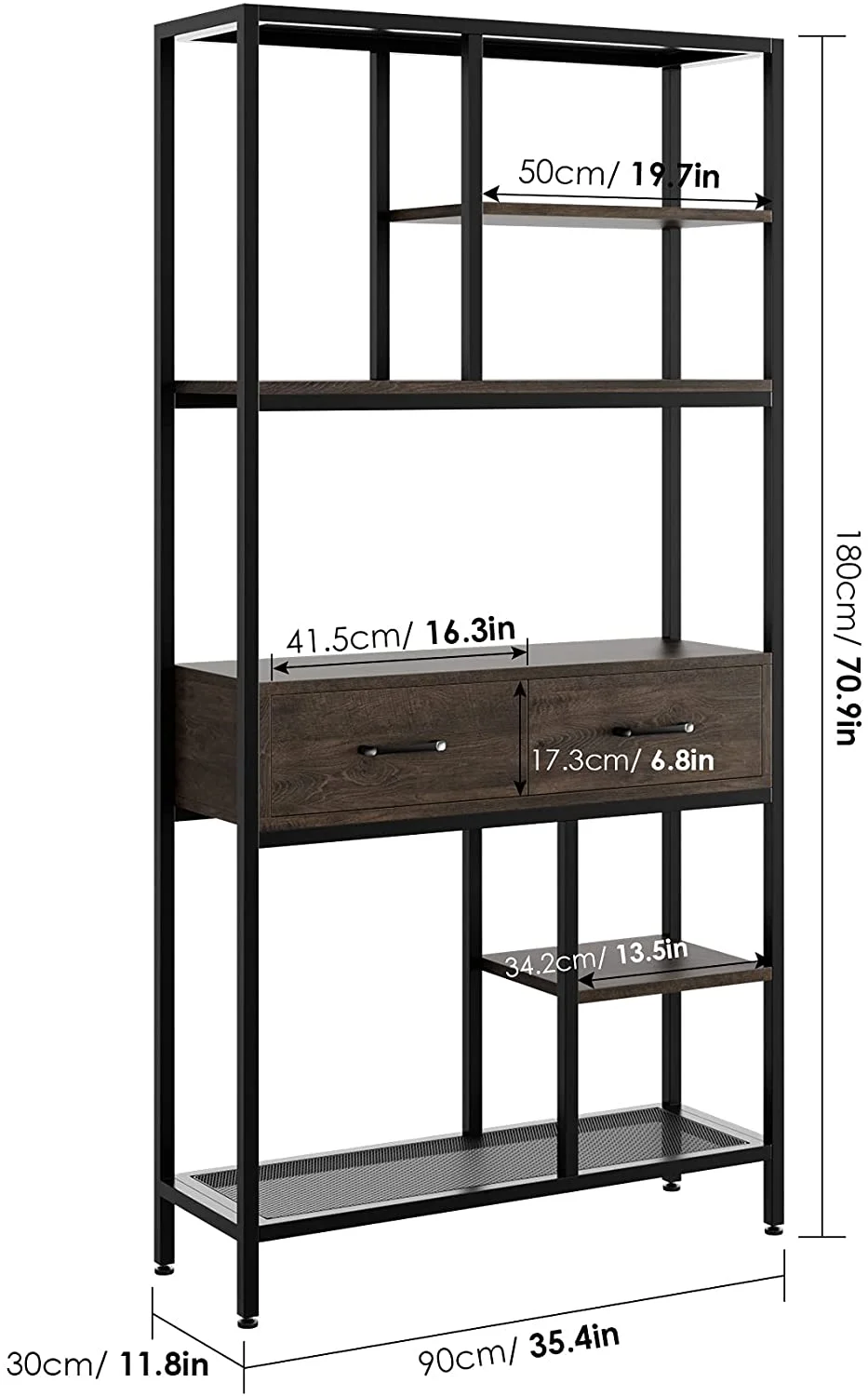 Magshion Wood 5 Tiers 2 Drawers Bookcase, Display Storage Bookshelf, Natural, for Living Room