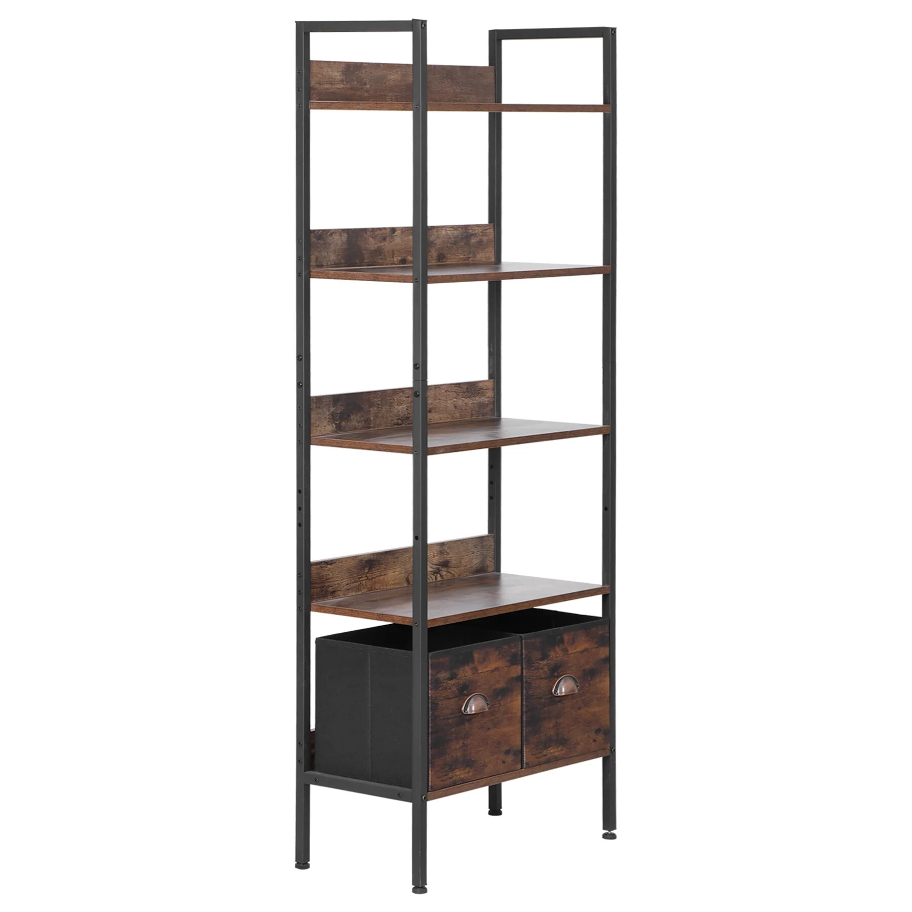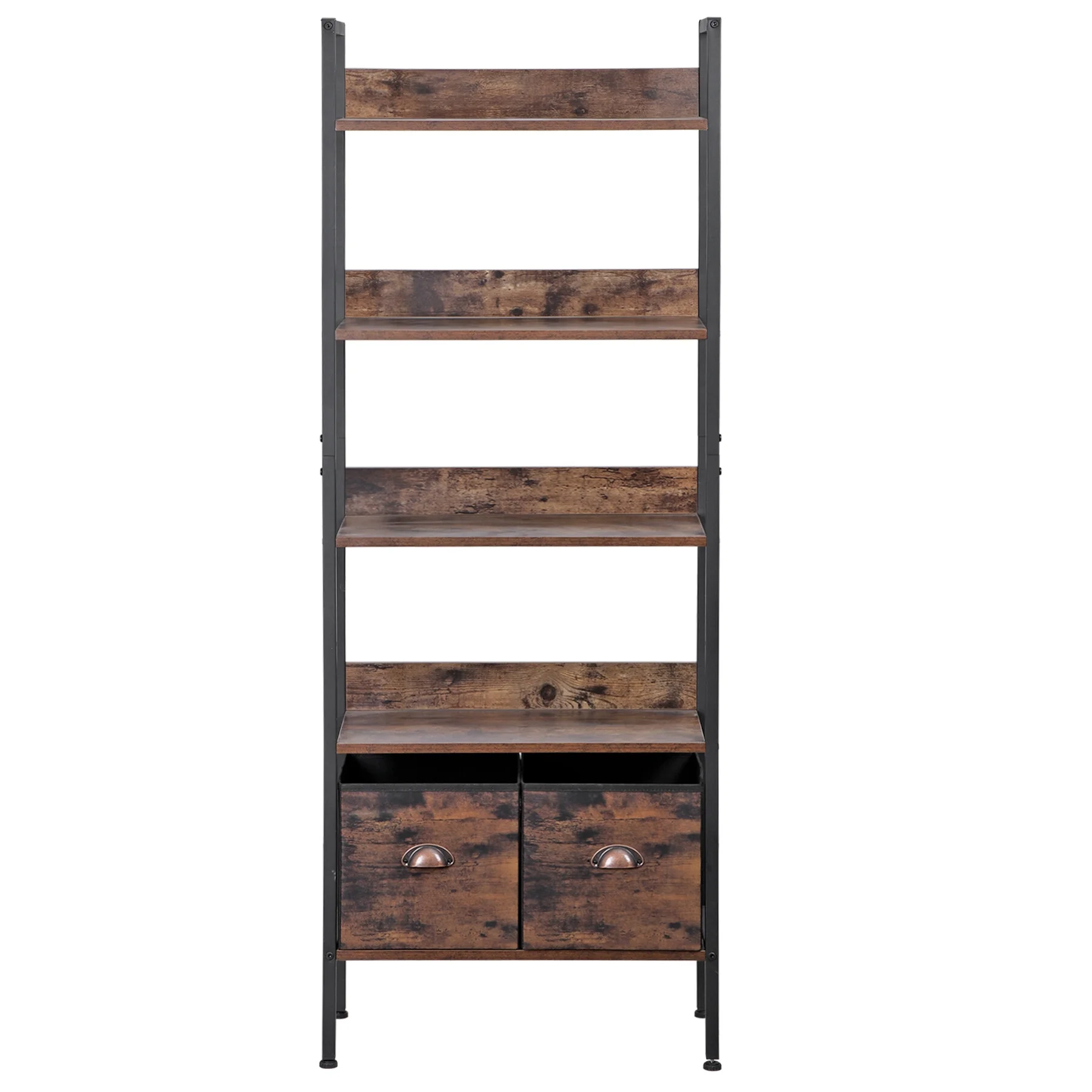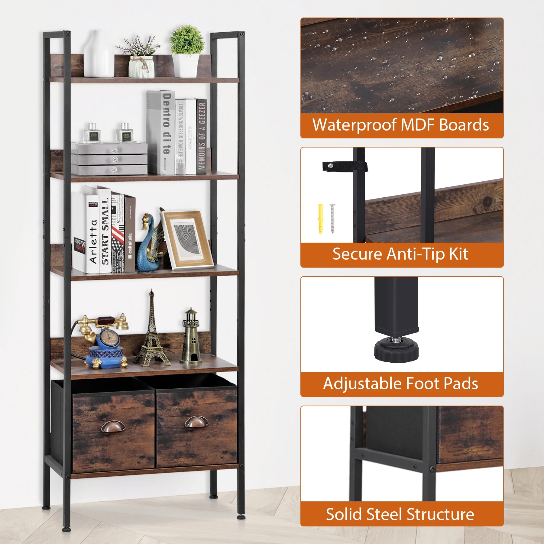HomGarden 5 Tier Bookshelf Adjustable Bookcase W/ 2 Fabric Drawers for Home Office Living Room Rustic Brown