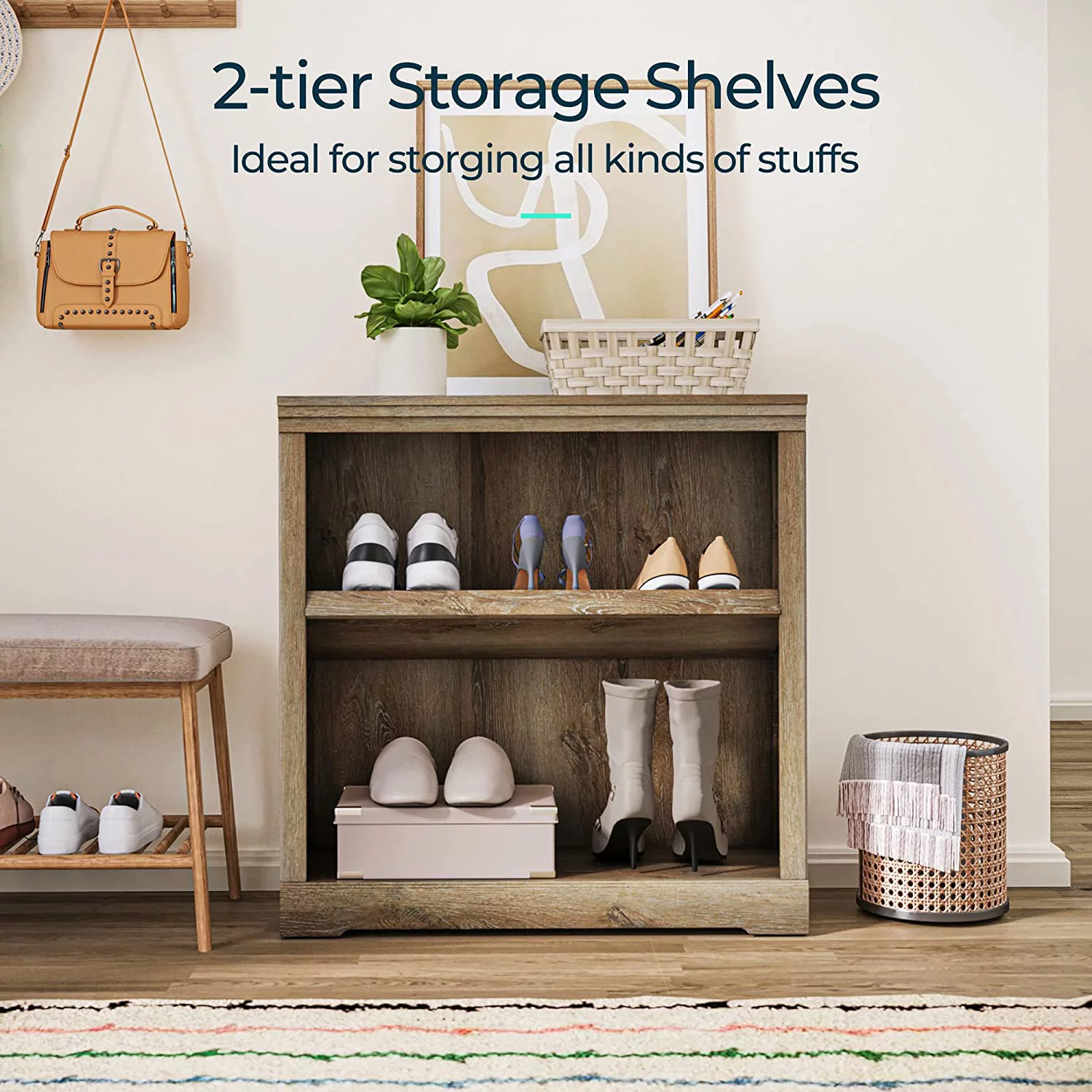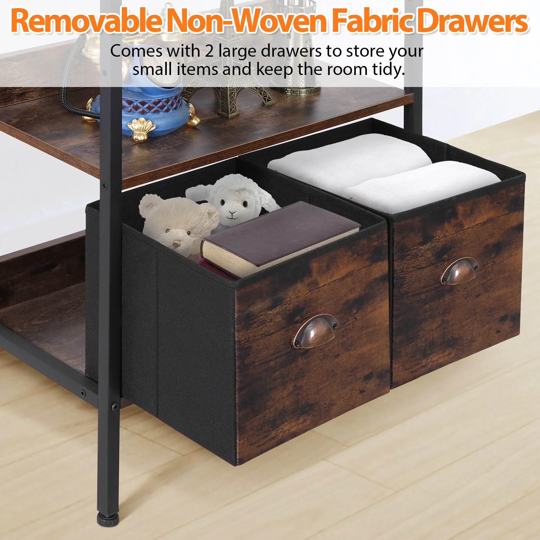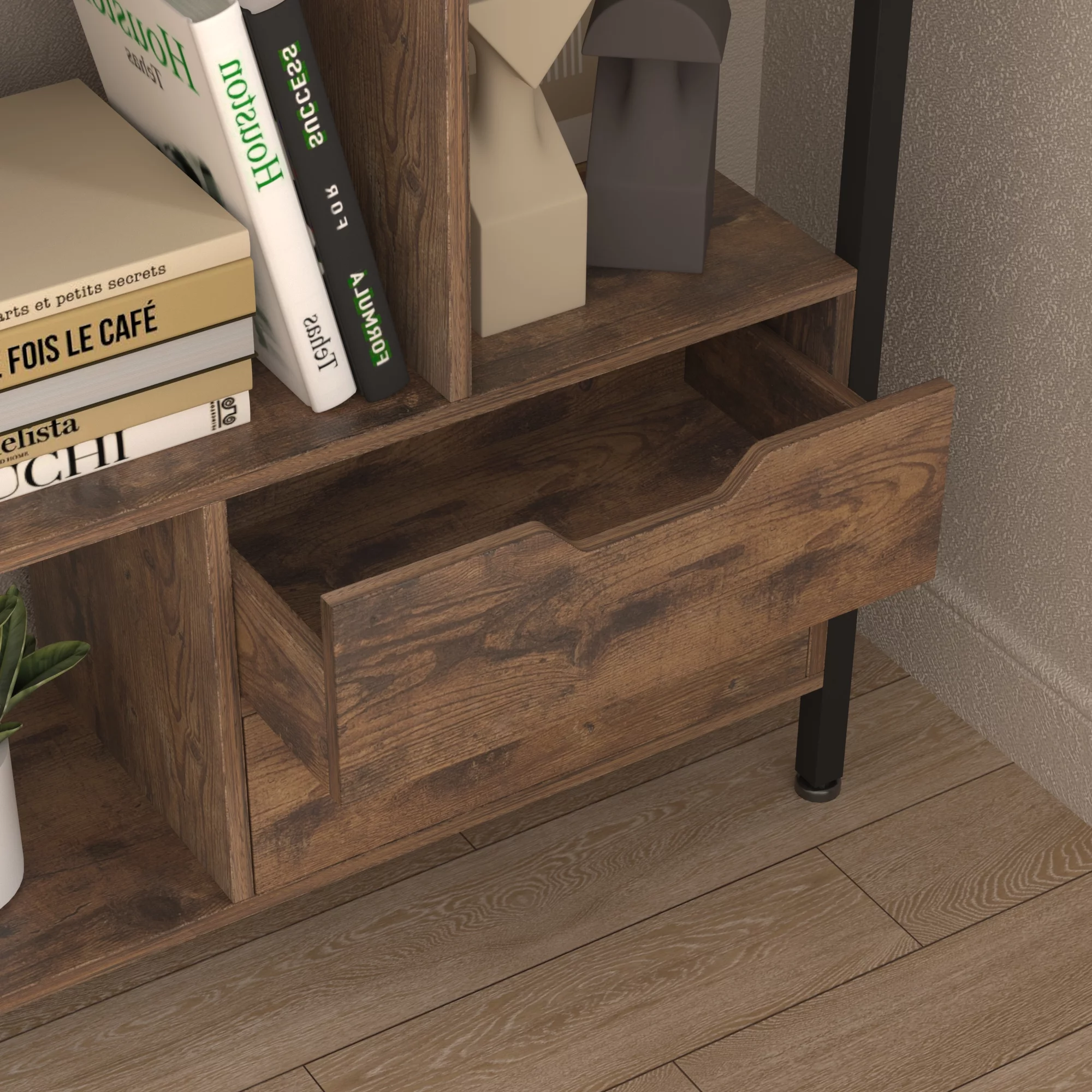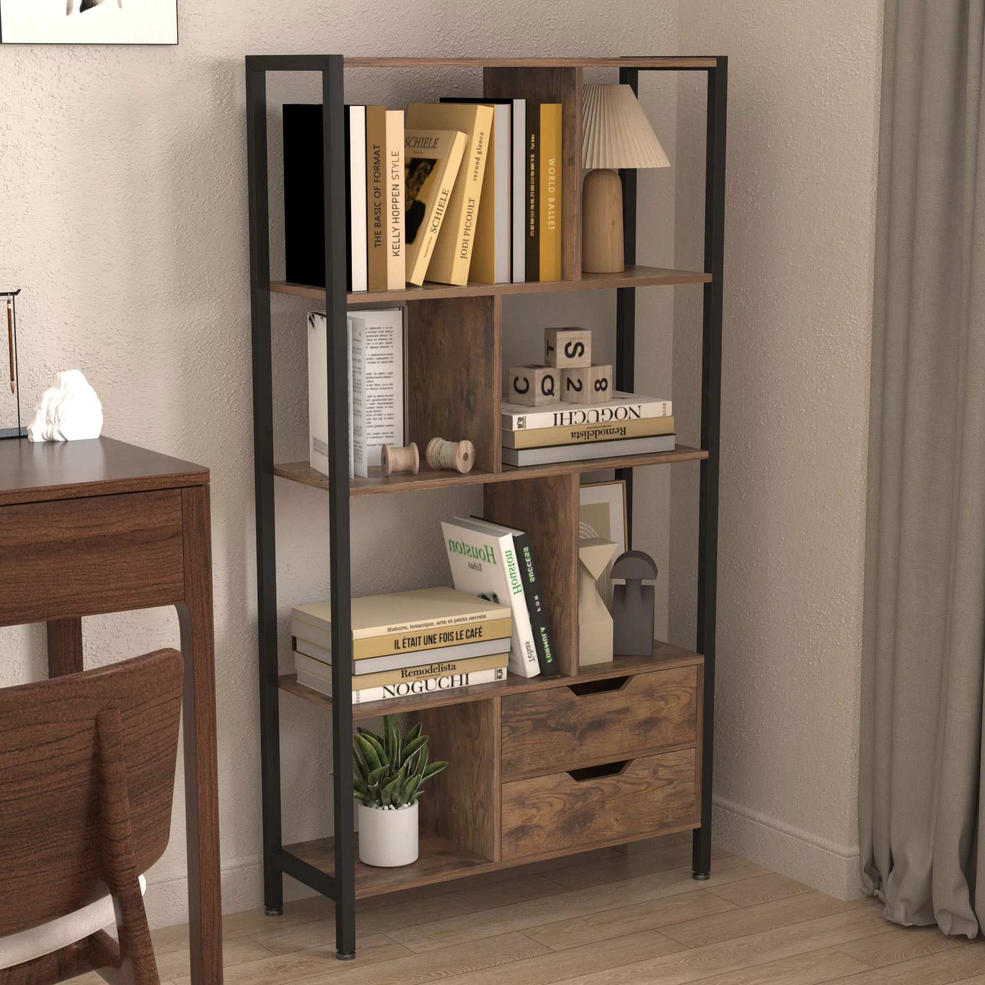 HomGarden 5 Tier Bookshelf Adjustable Bookcase W/ 2 Fabric Drawers for Home Office Living Room Rustic Brown