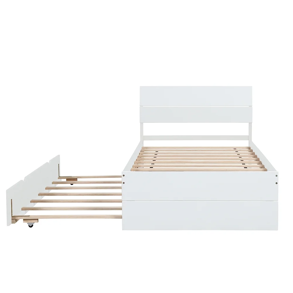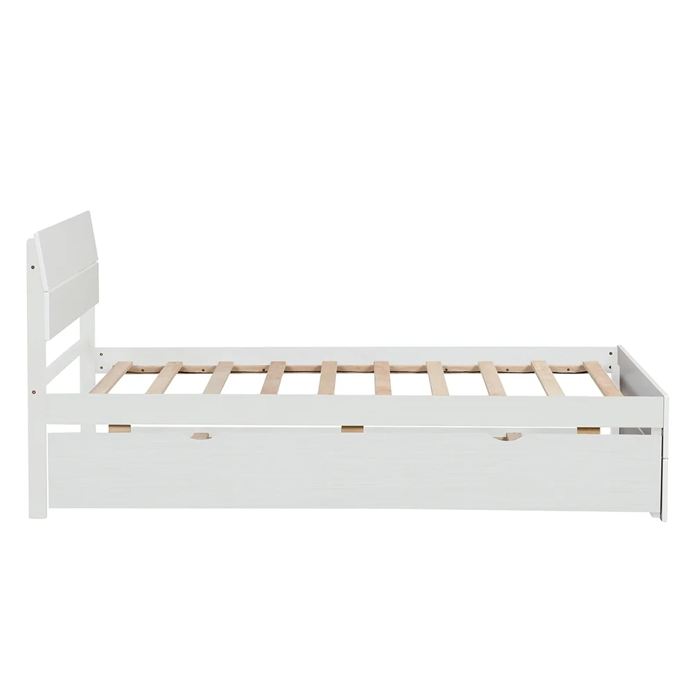 HUTWIFE Wood Bed with Trundle and Twin Size Trundle Twin Daybed Frame for Kids Teens Adults/No Box Spring Needed