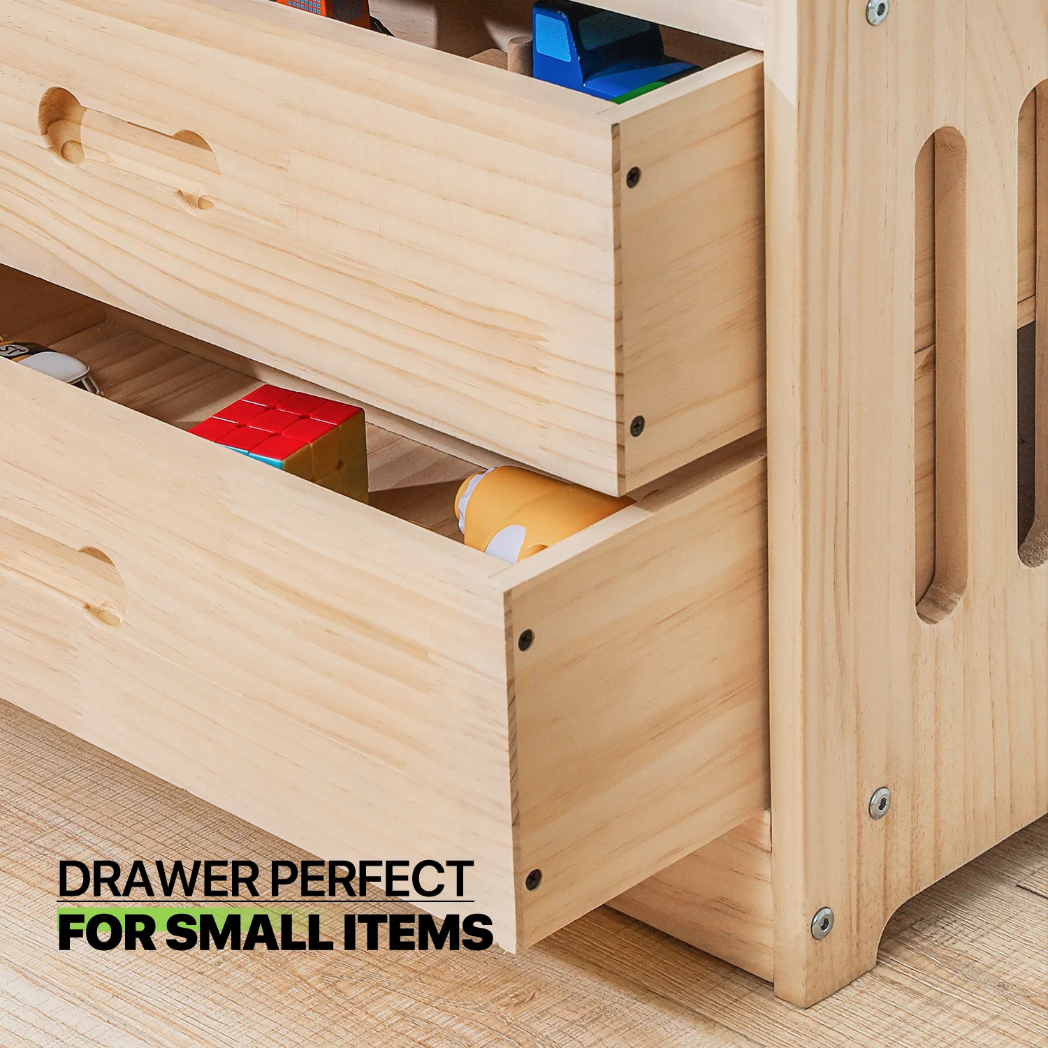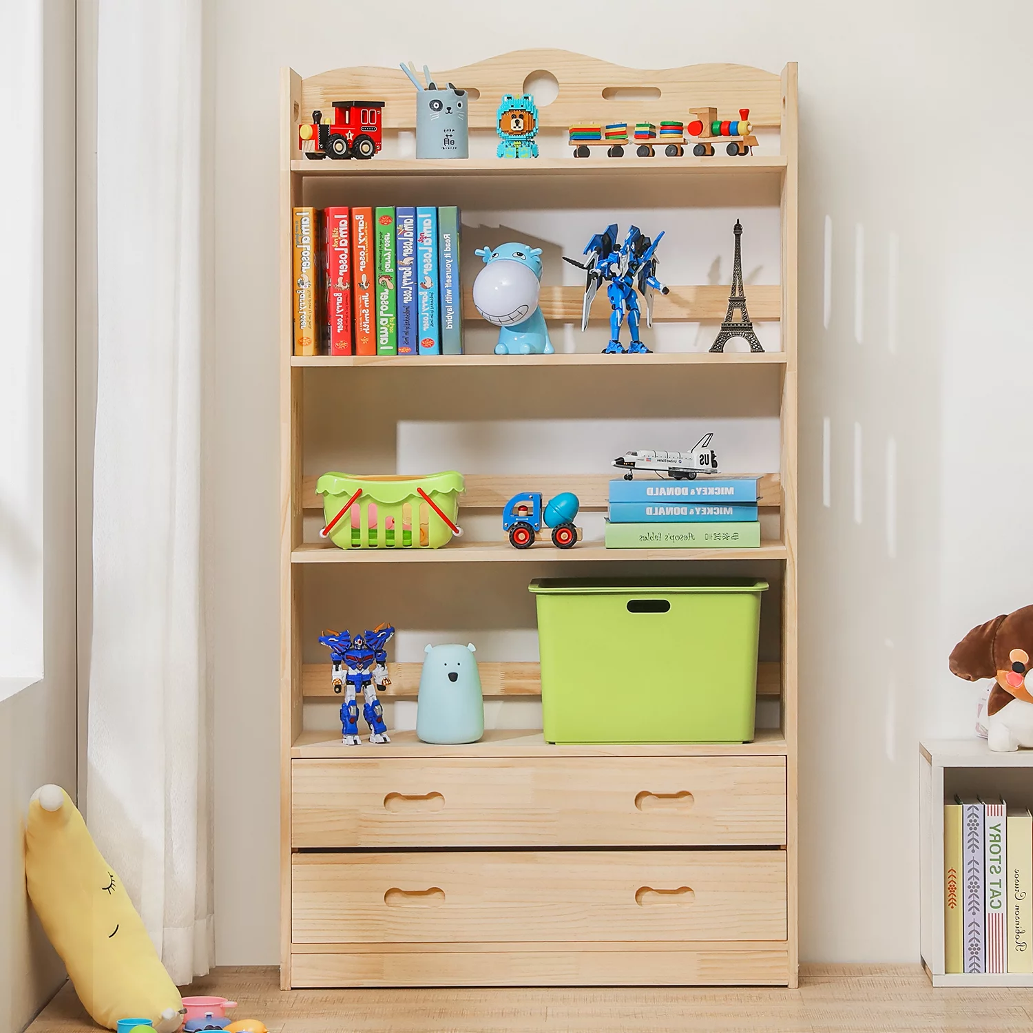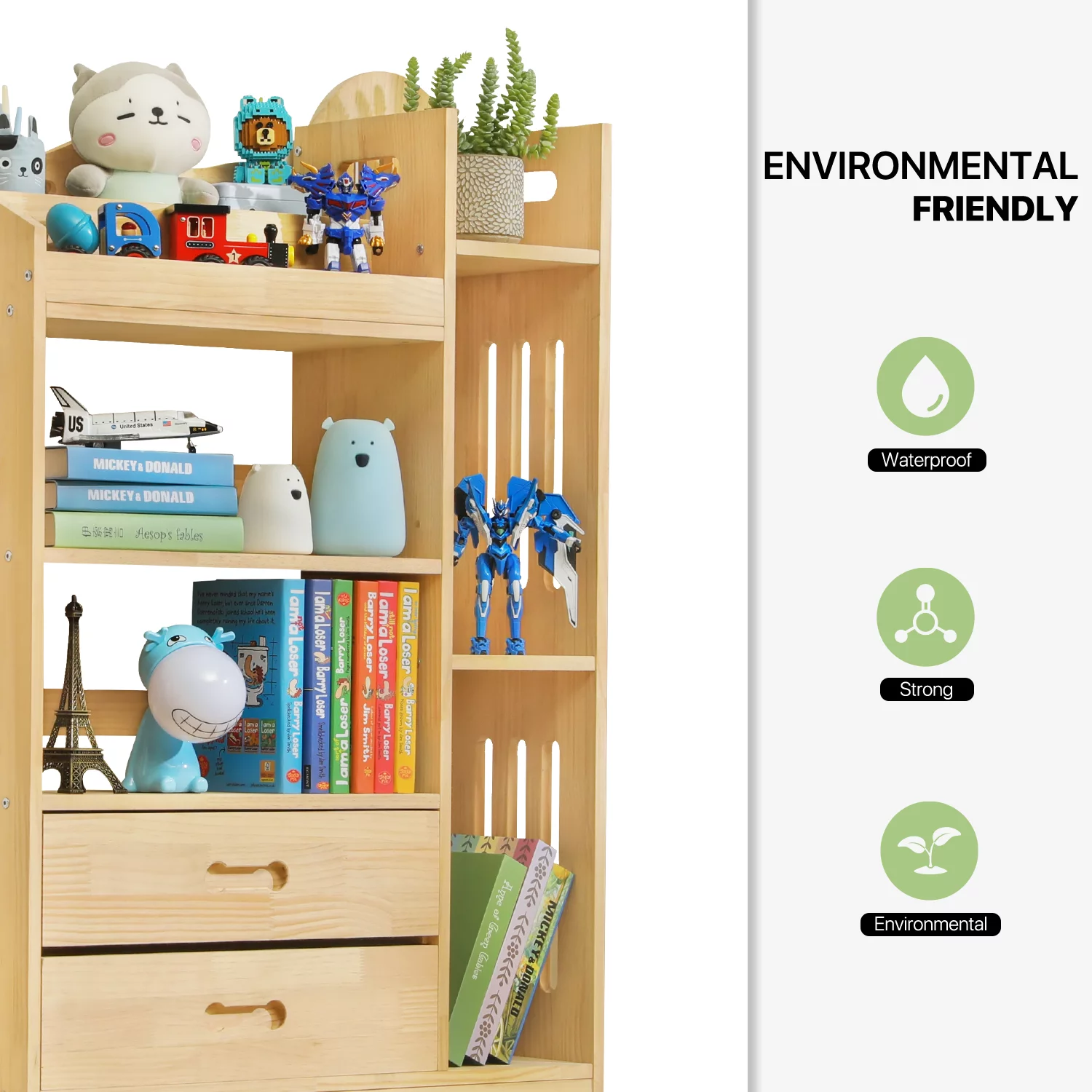 Magshion Wood 4 Tiers 2 Drawers Bookshelf, Toys Books Display Storage Bookcase, Natural, for Home