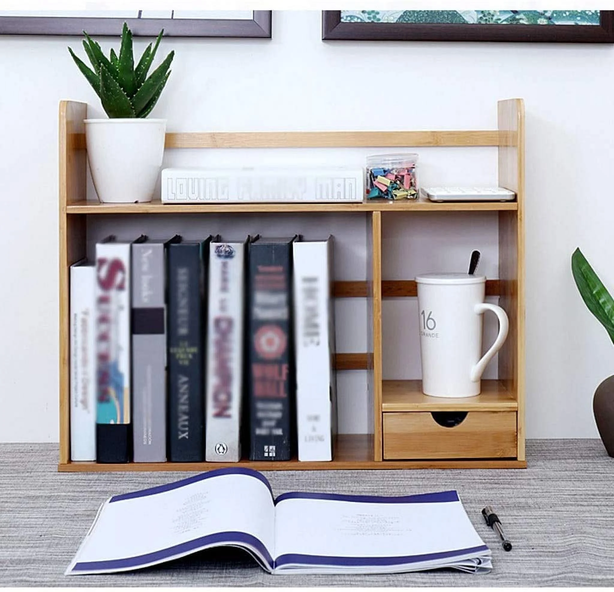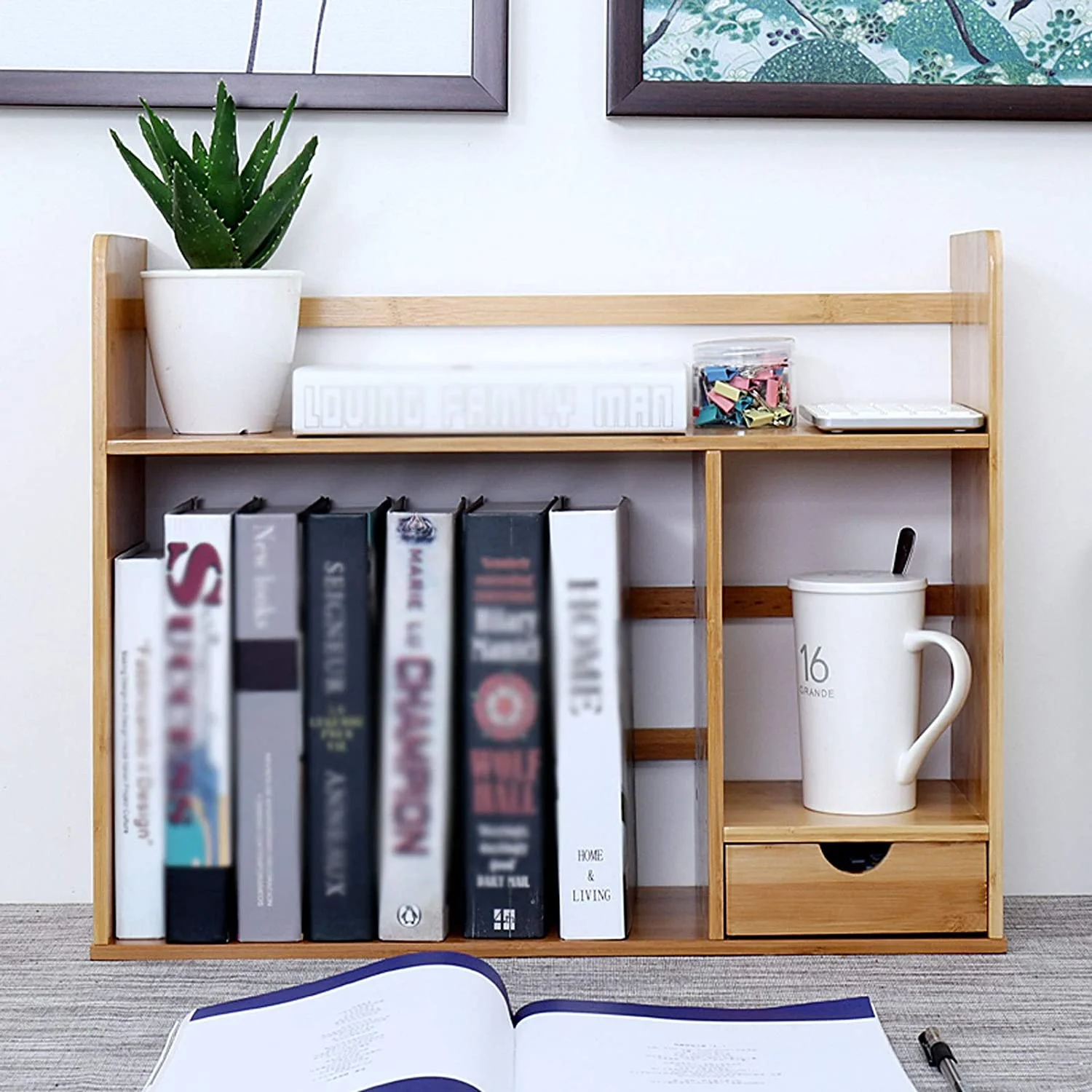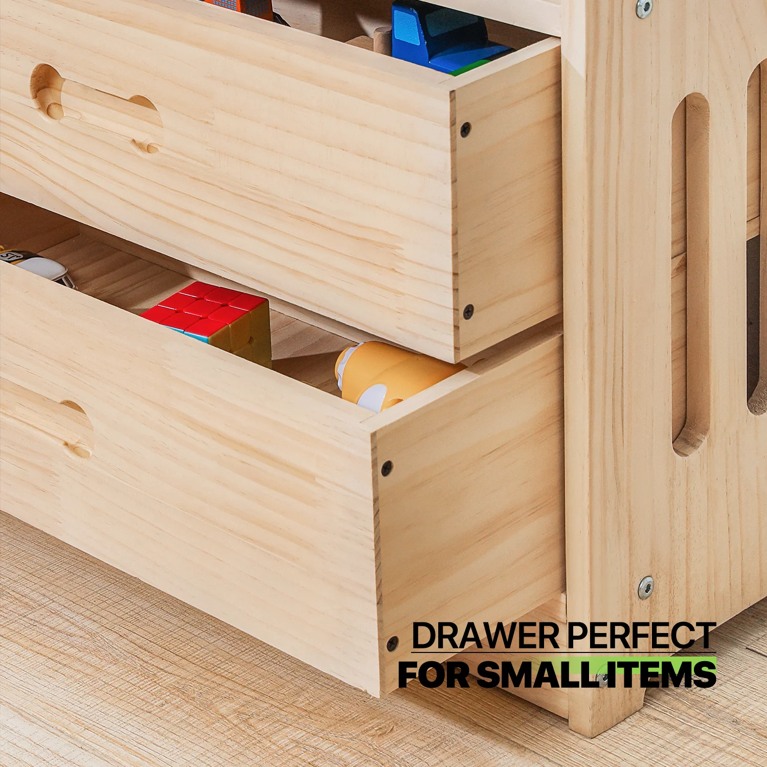 Magshion Wood 4 Tiers 2 Drawers Bookshelf, Toys Books Display Storage Bookcase, Natural, for Home