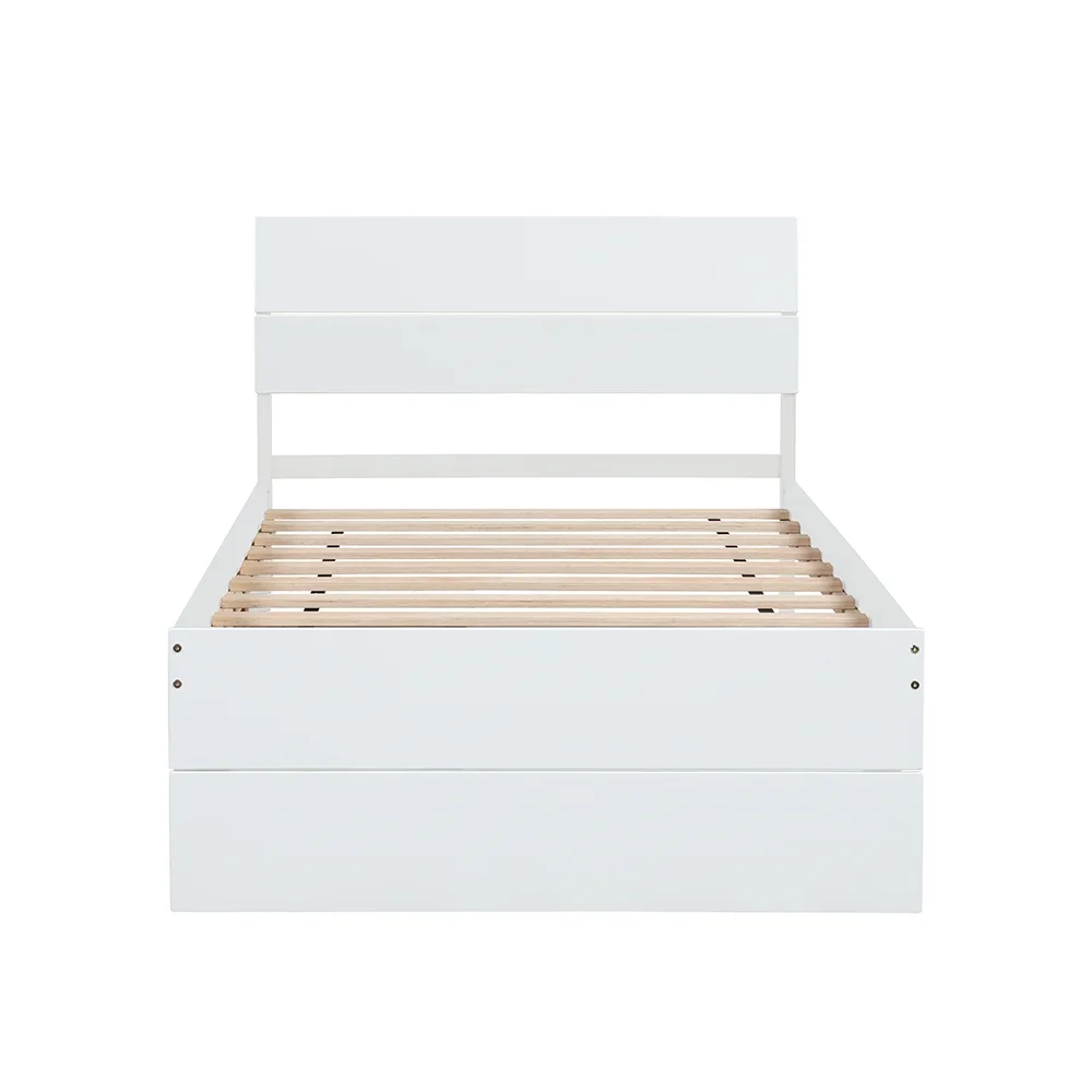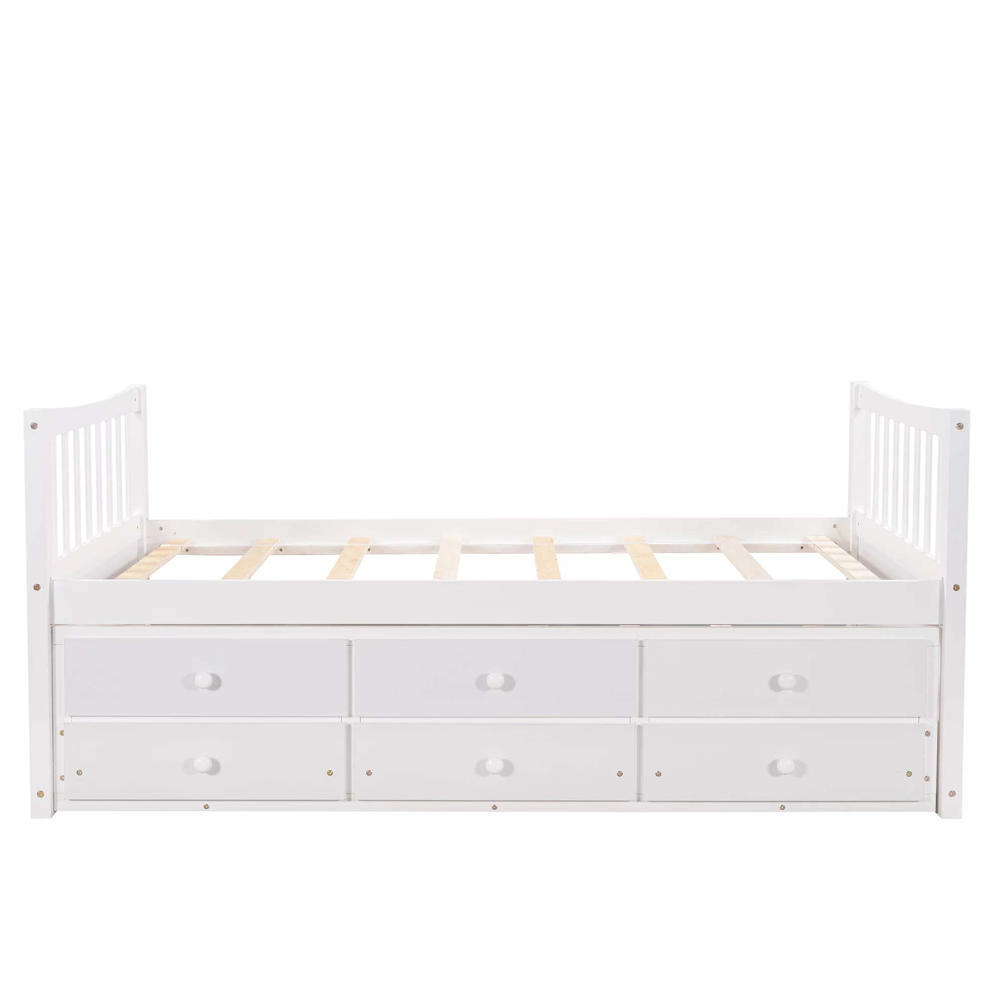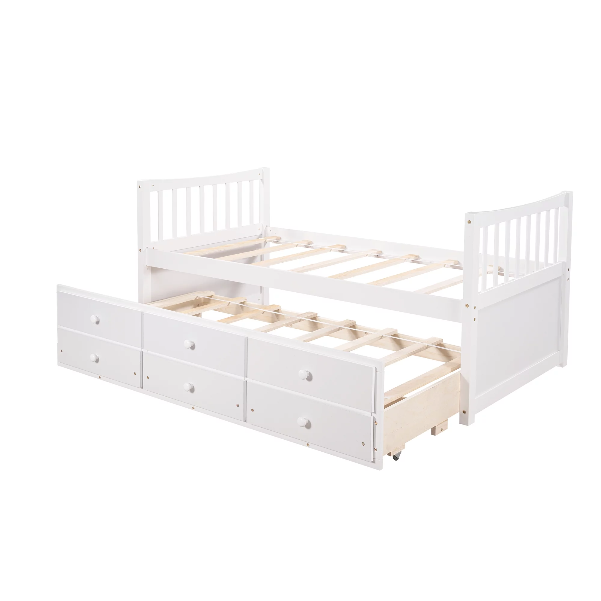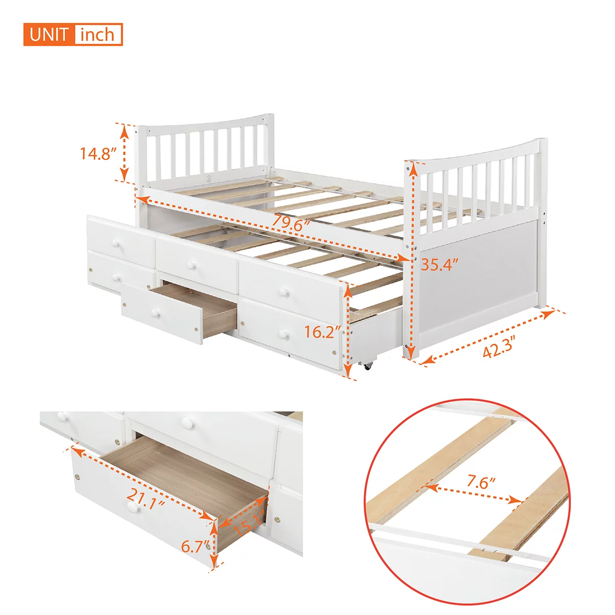 Twin Captain's Platform Storage Bed with Trundle Bed and Drawers, Solid Wood Twin Size Daybed for Kids Teens and Adults