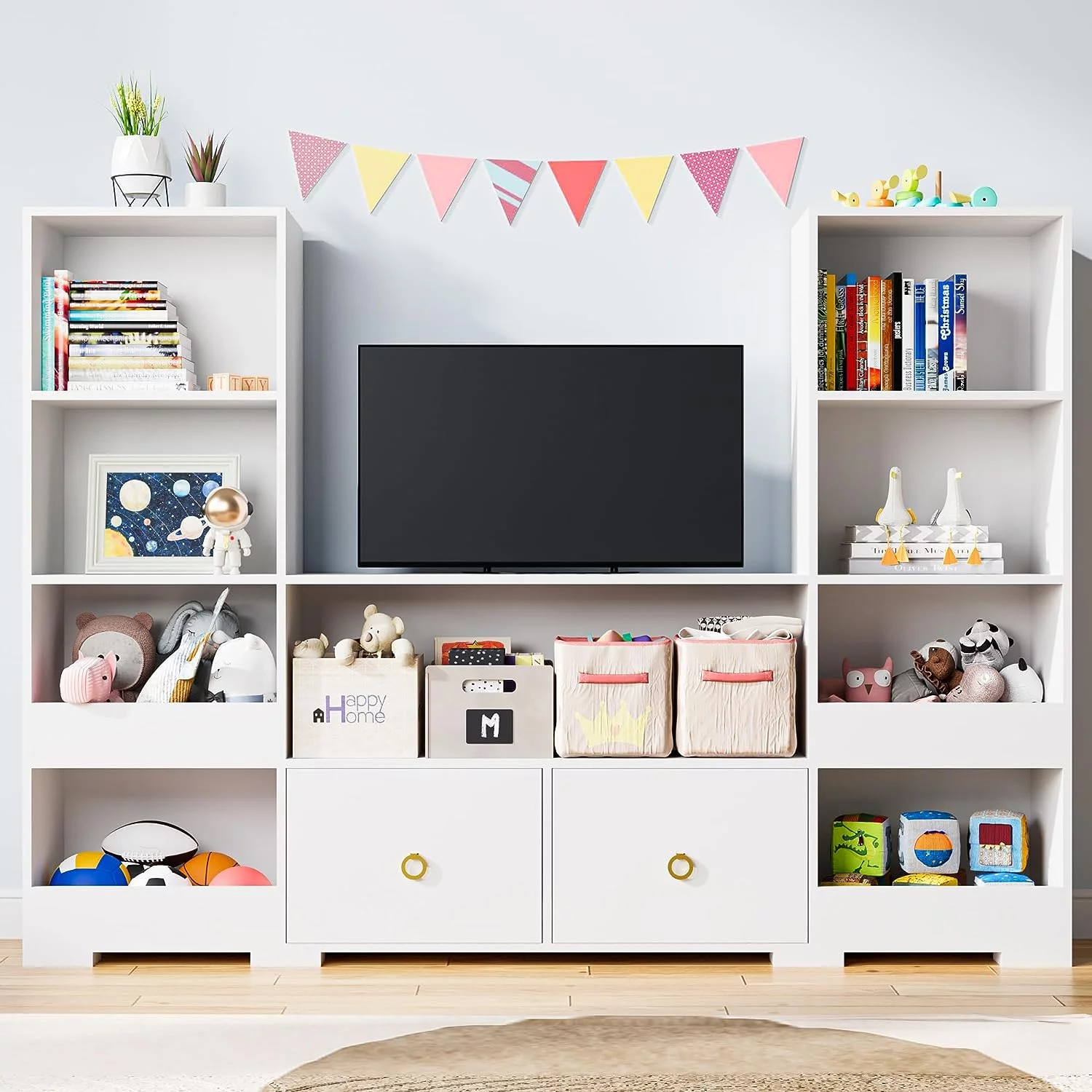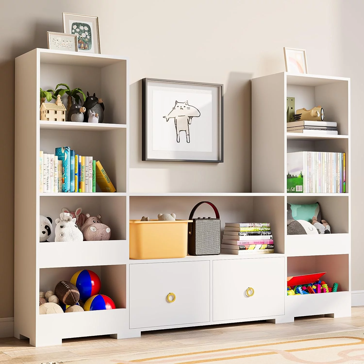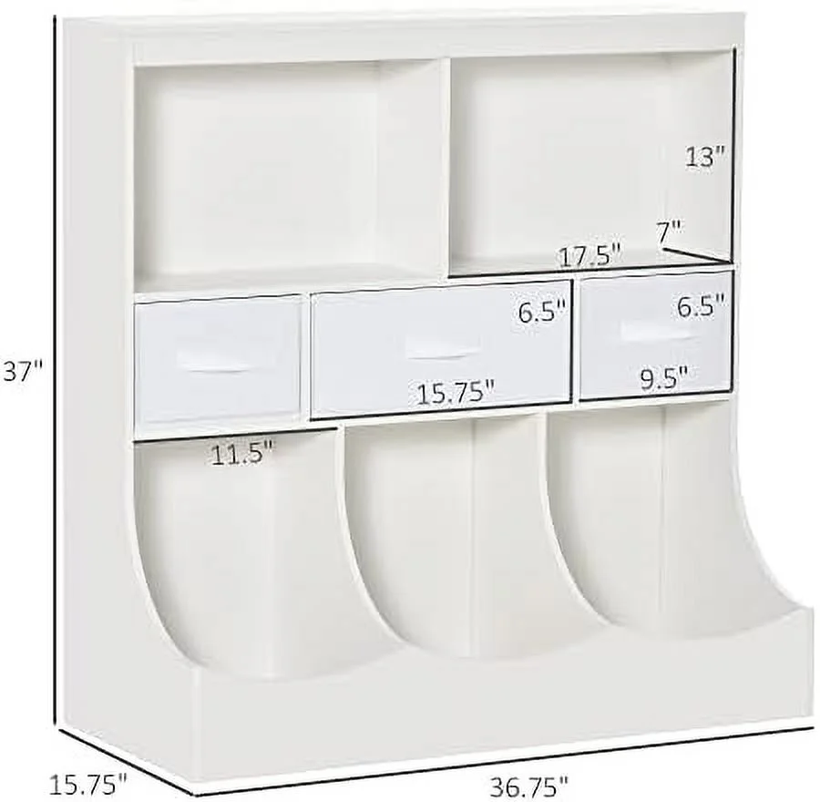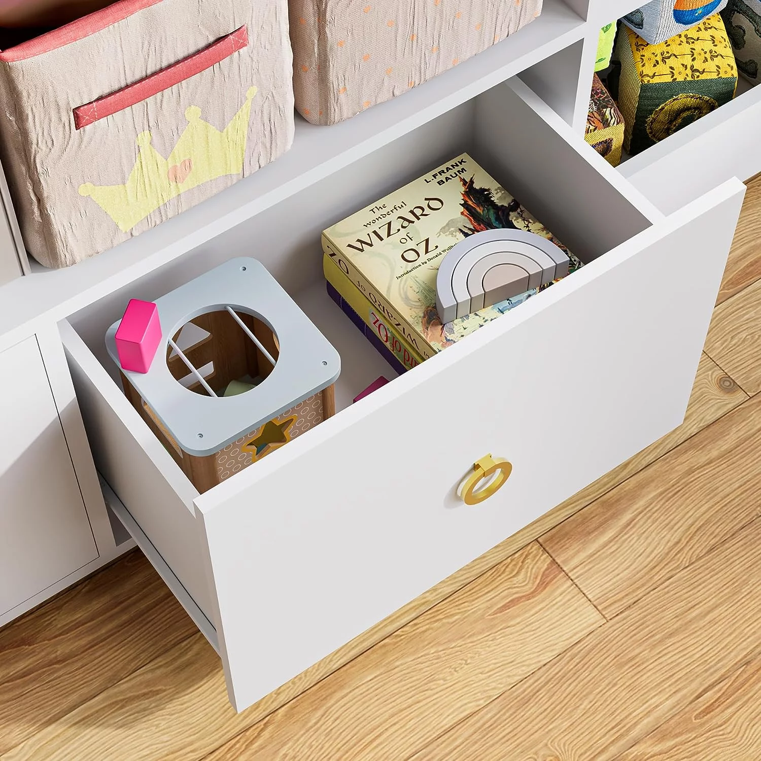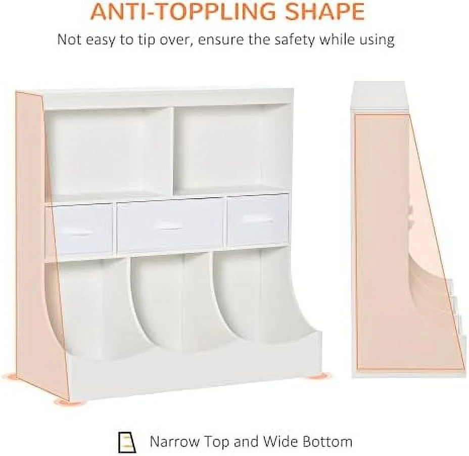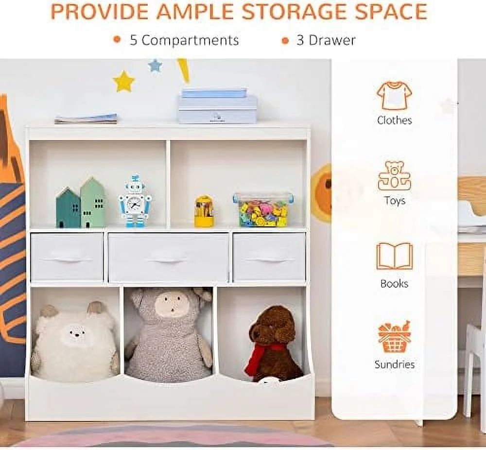 HOOMHIBIU Bookcase Toy Organizer Cabinet Children Display Bookshelf with Drawers for Toys Clothes Books White