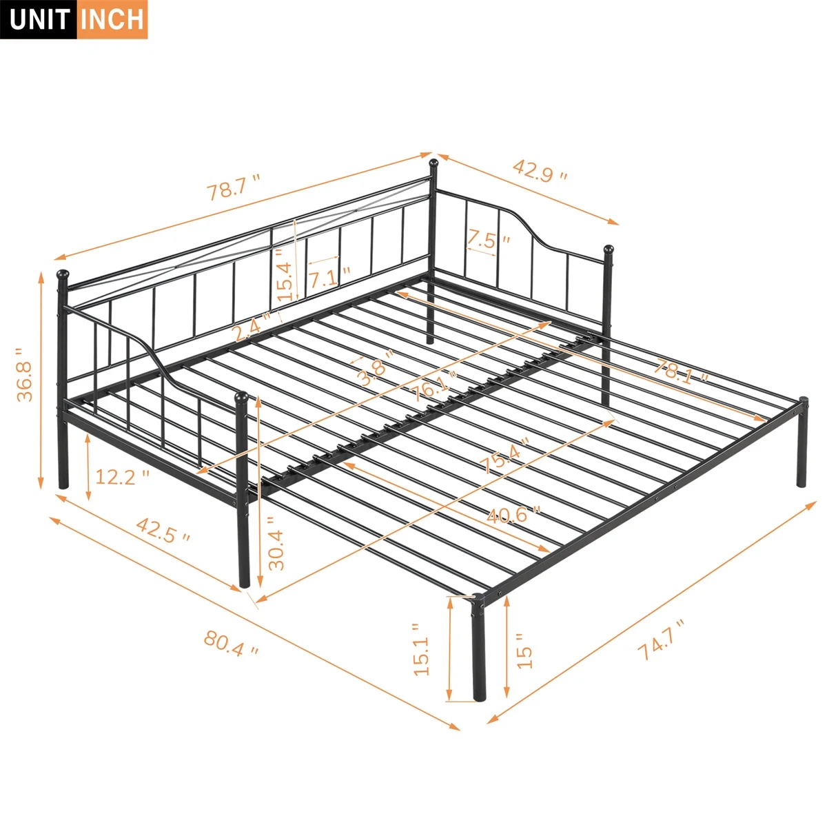 Metal Twin Size Platform Bed with Trundle, Twin Bed Frame, Modern Daybed for Kids Teens Adults, No Box Spring Needed
