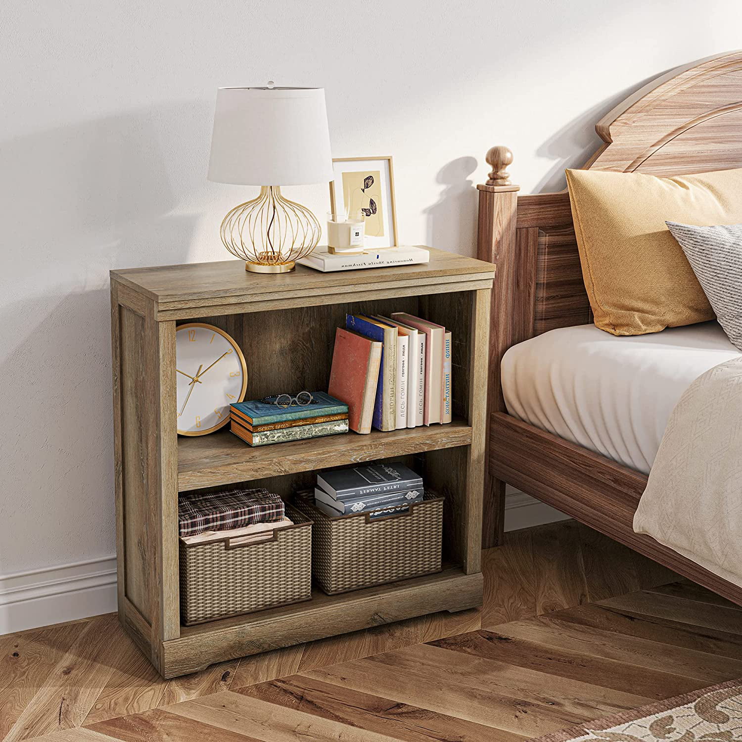 NAIYUFA Bookcase, 4-Tier Wood Bookshelf with 2 Drawers,Book Display Shelf for Living Room, Bedroom, Office,Brown