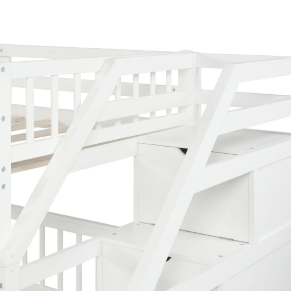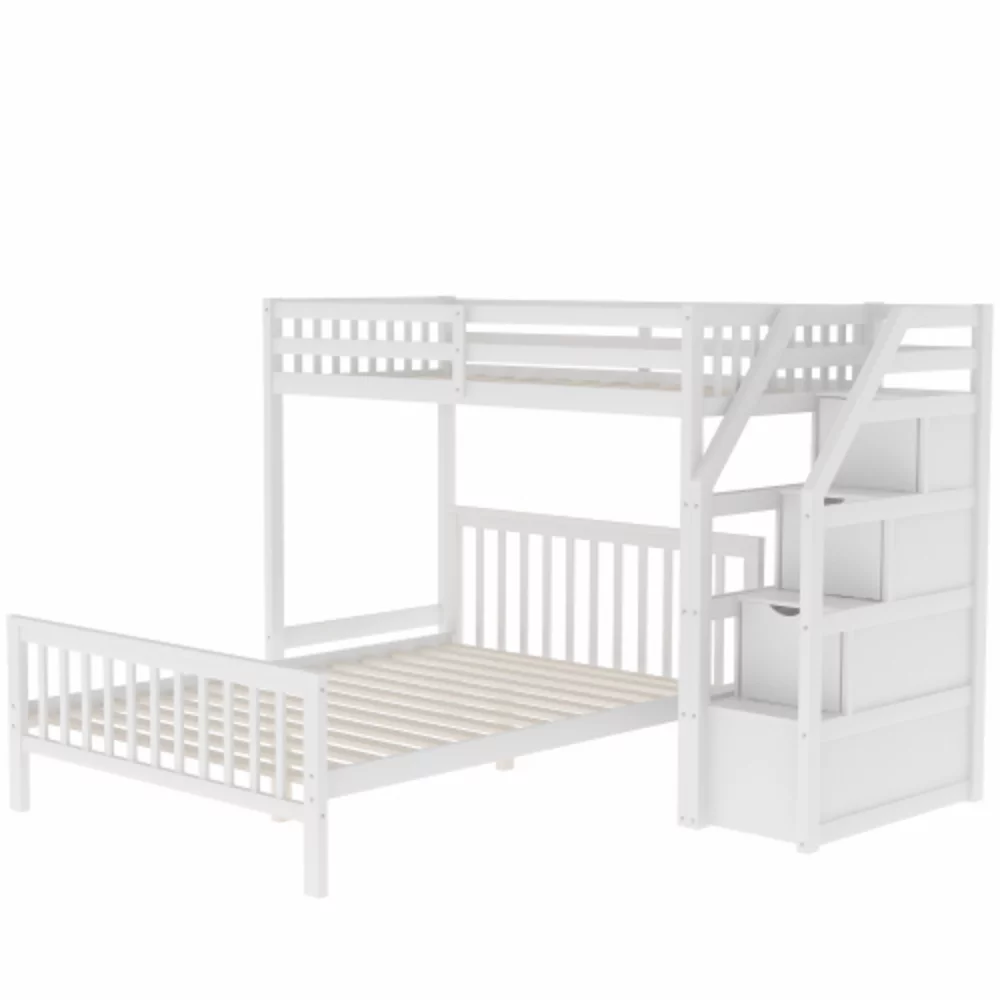 ikayaa Twin over Full Loft Bed with Cabinet, White(Expected Arrival Time:4.5)