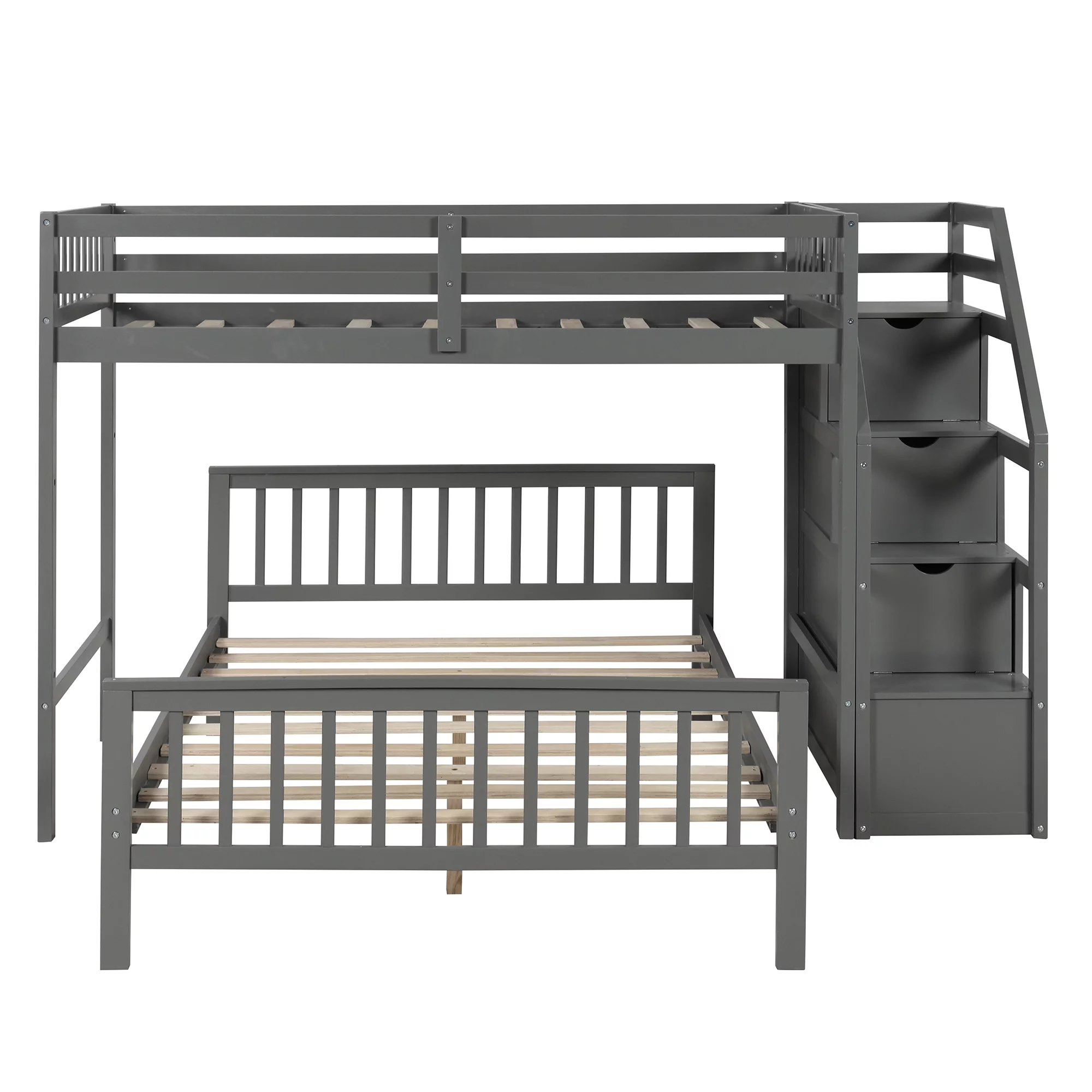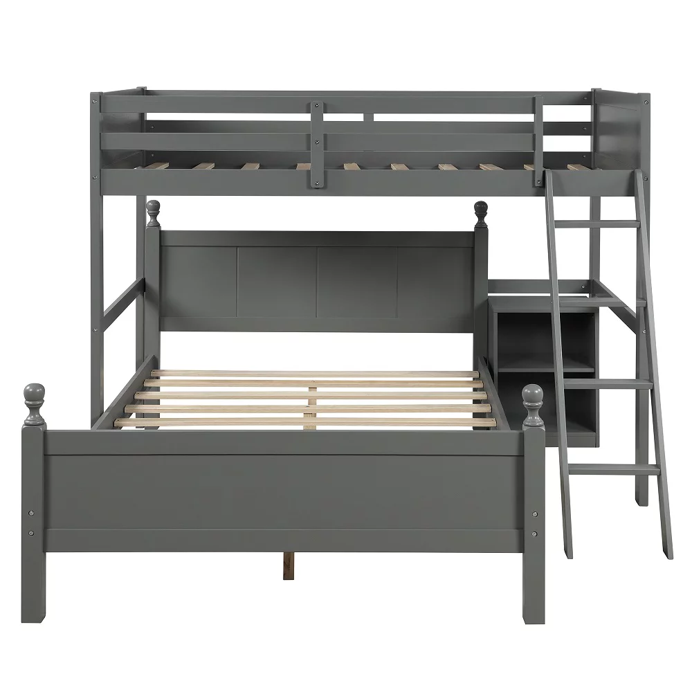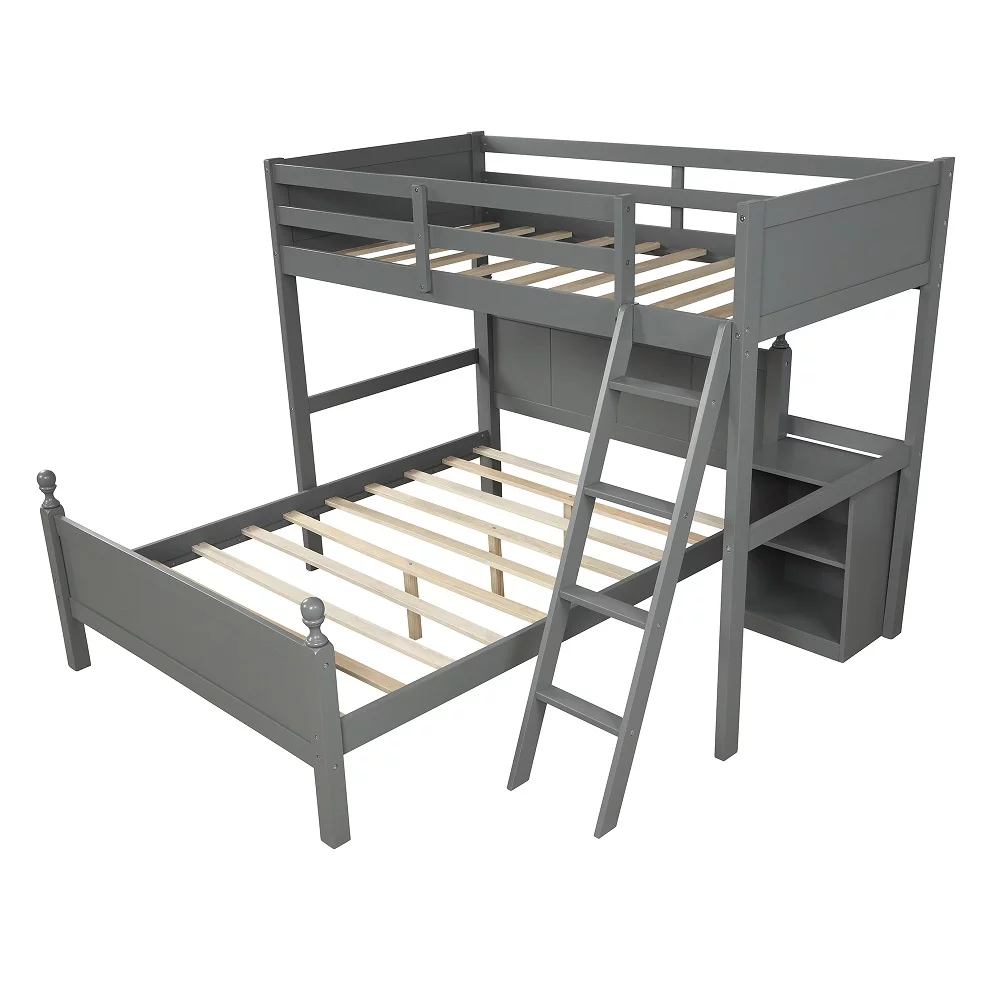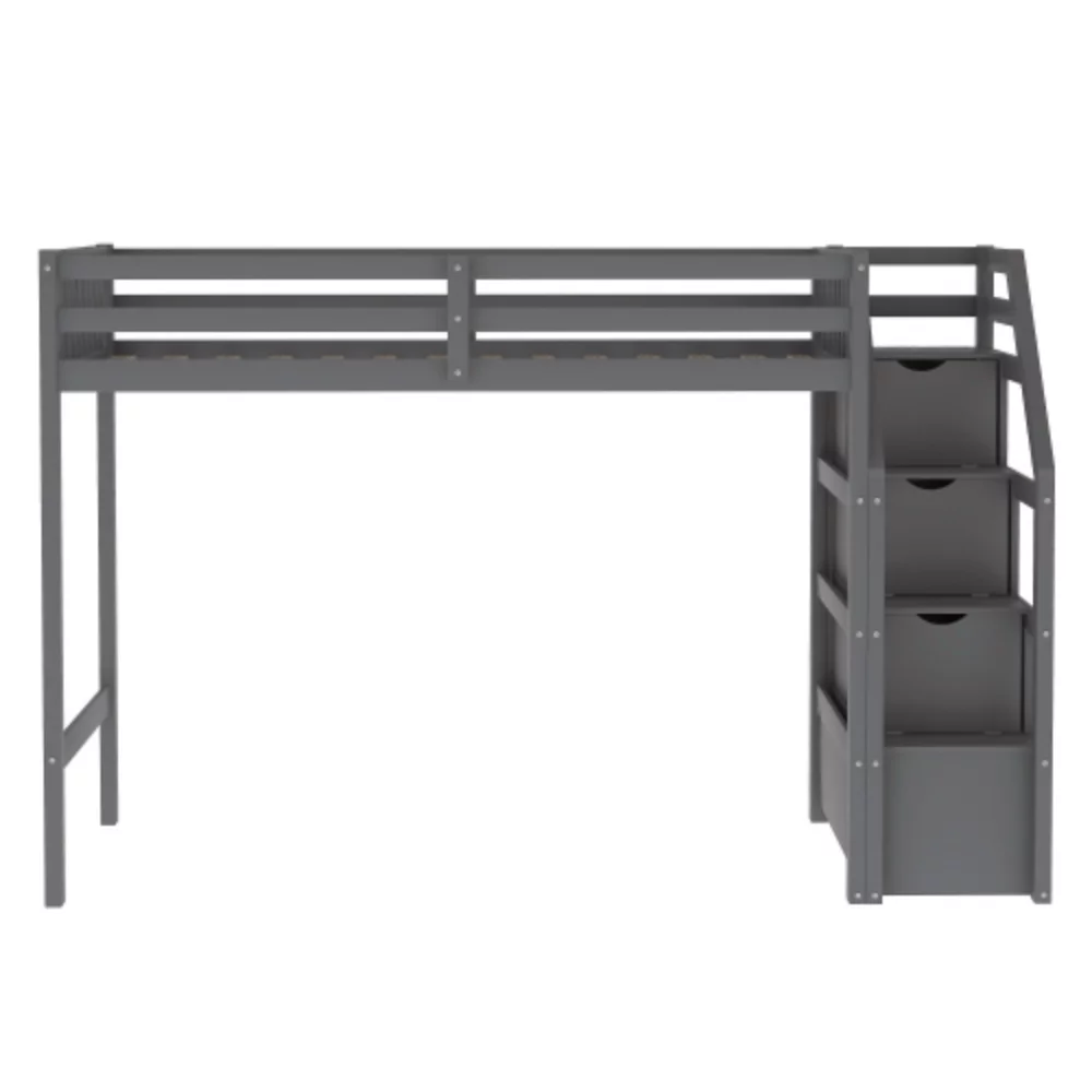 Cosymart Twin over Full Loft Bed with Staircase,Gray(OLD SKU:SM000107AAE)