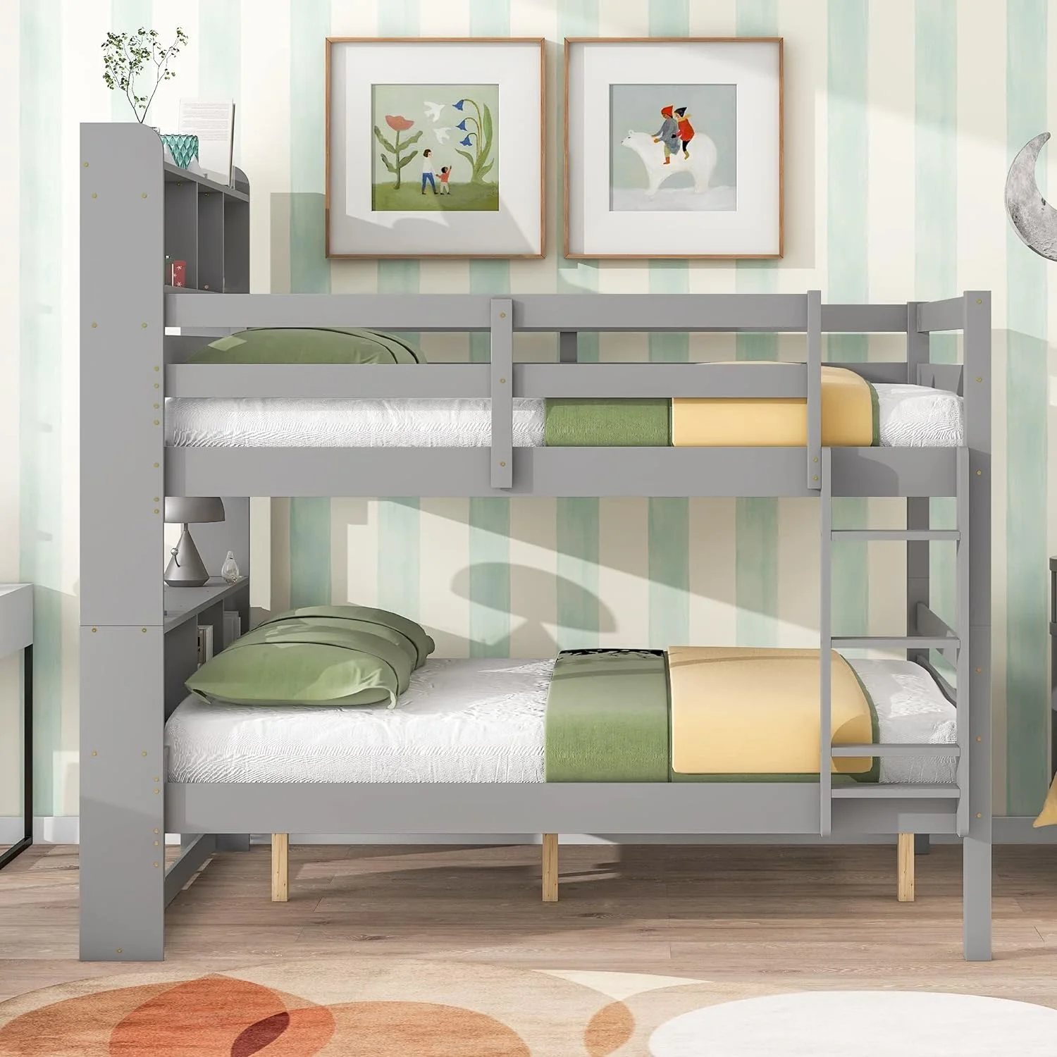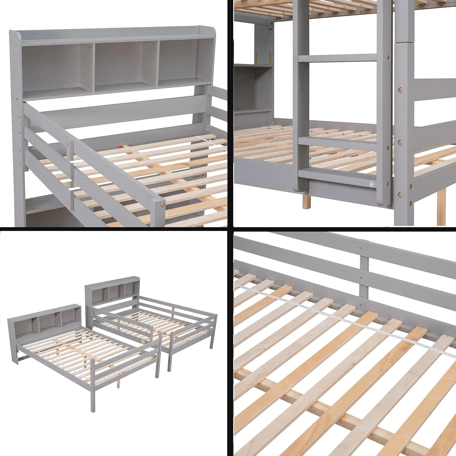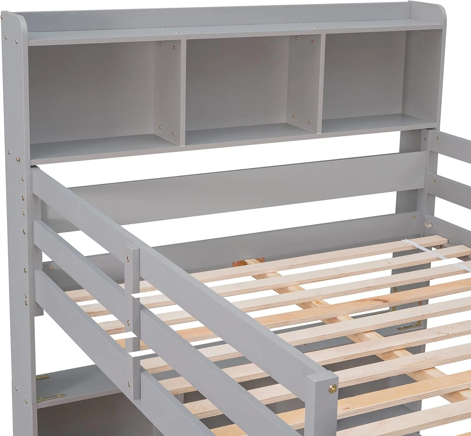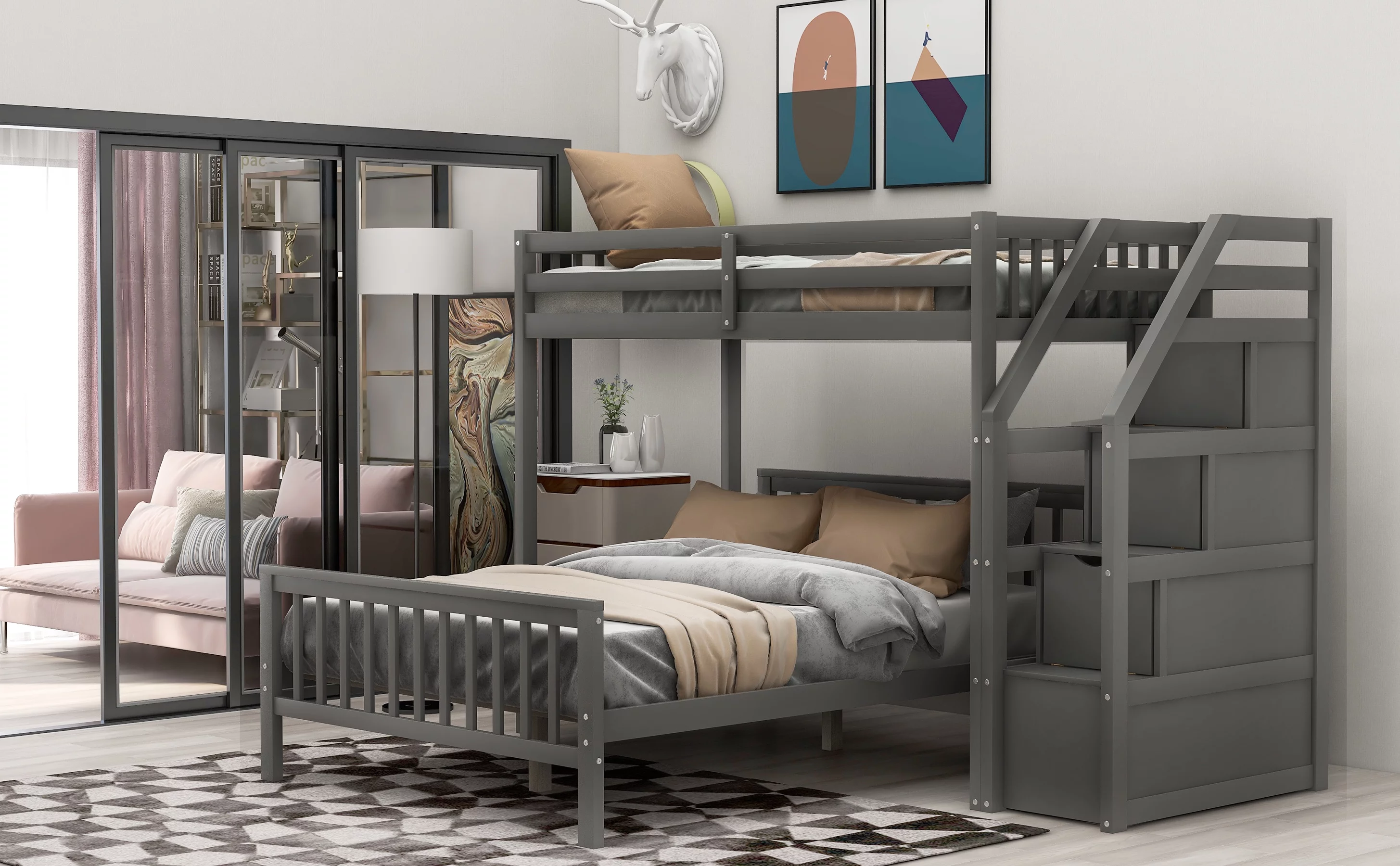 Cosymart Twin over Full Loft Bed with Staircase,Gray(OLD SKU:SM000107AAE)