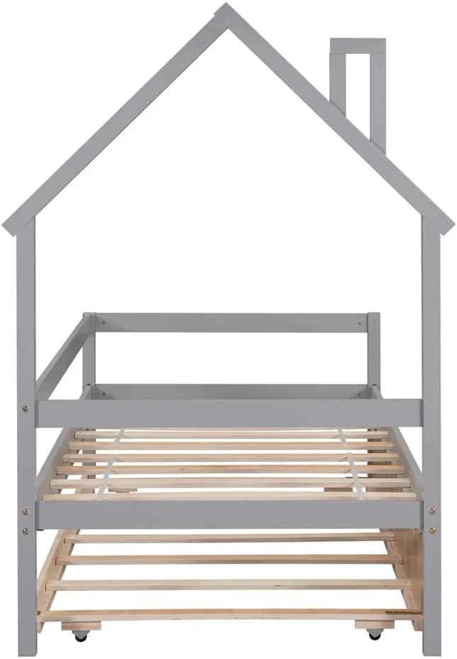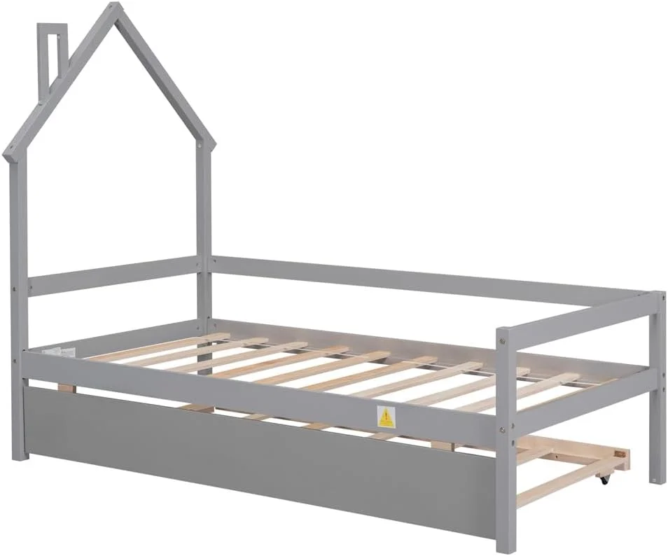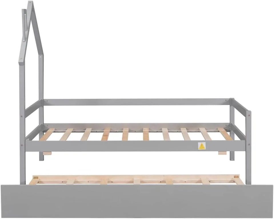 AFI Twin Daybed with Twin Trundle Roll Out Guest Bed in Solid Wood Cambridge Design, Grey