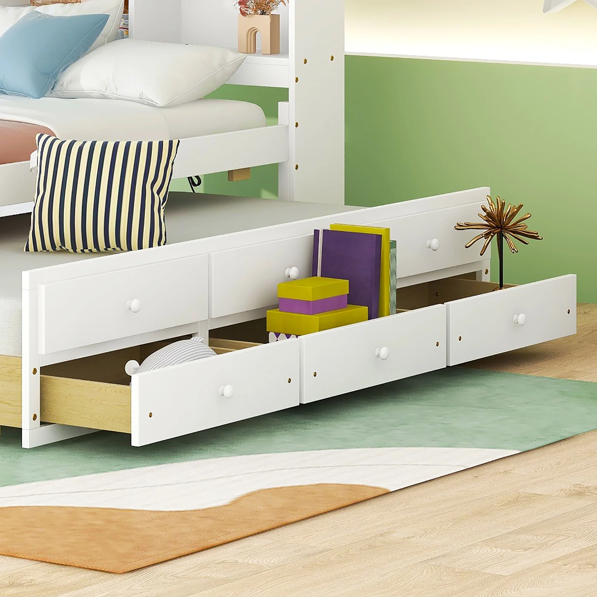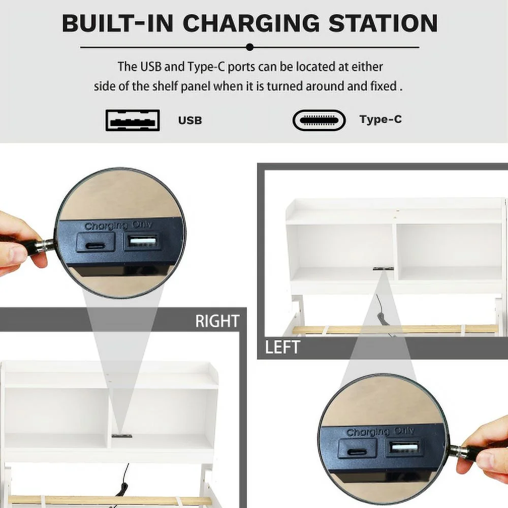Abanopi Twin over Full Loft Bed with Cabinet, White(Expected Arrival Time:4.5)