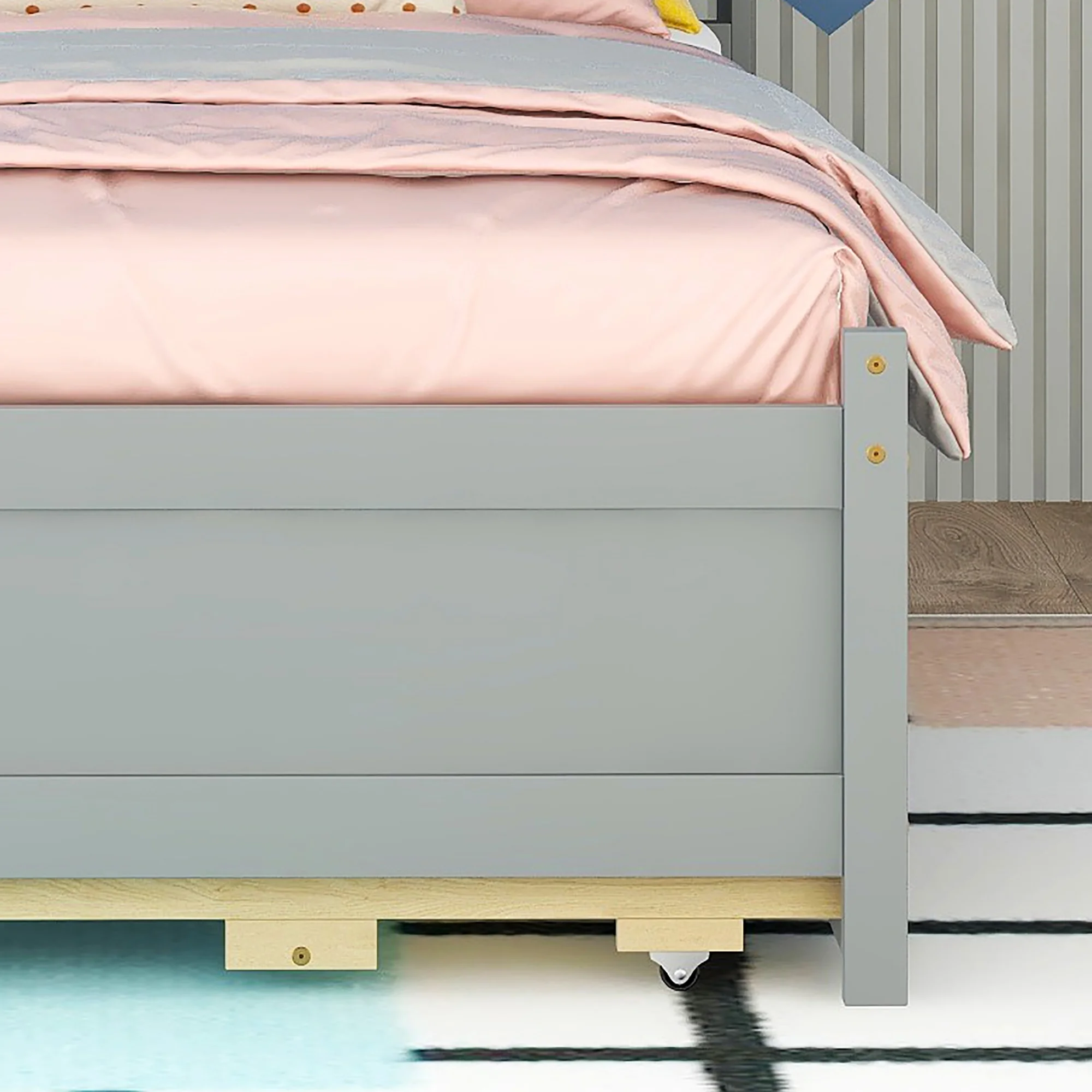 Pemberly Row Solid Wood Twin Daybed and Trundle Set in Scandinavian Oak