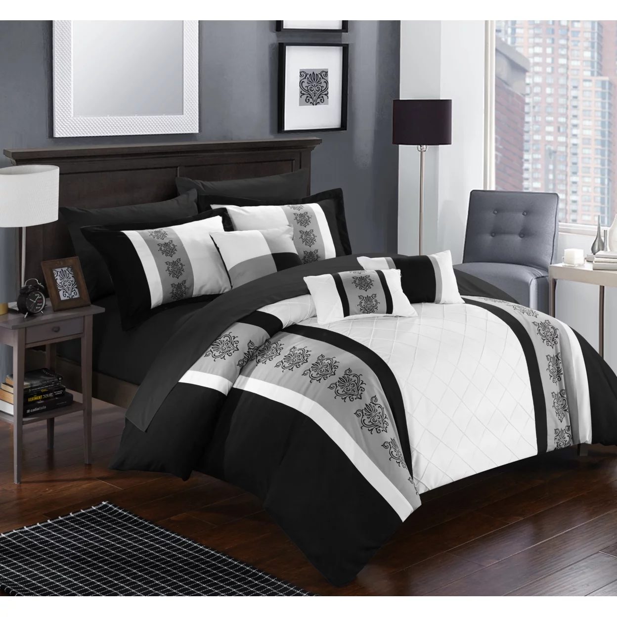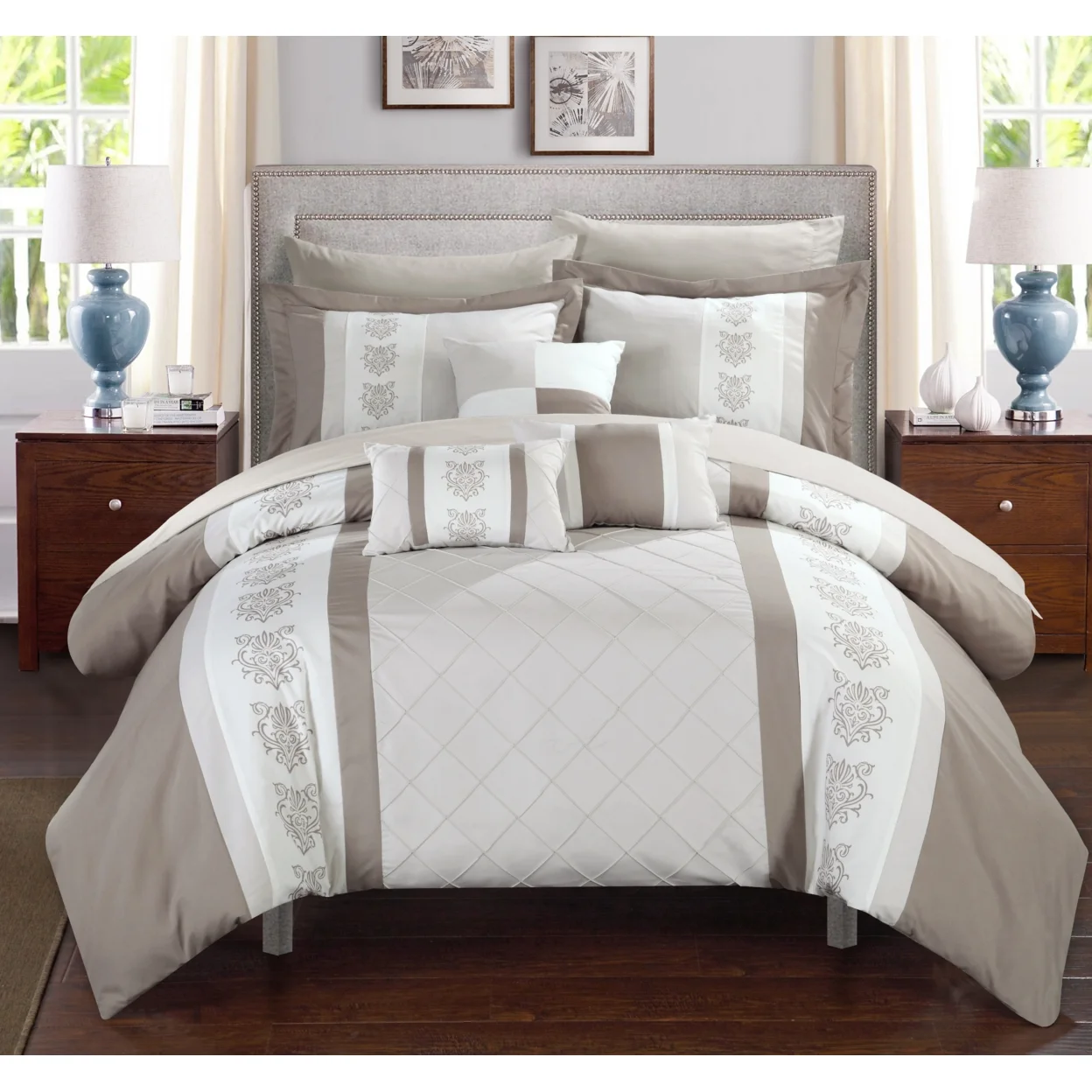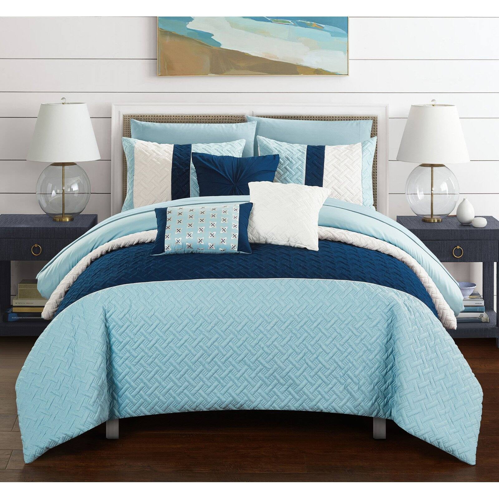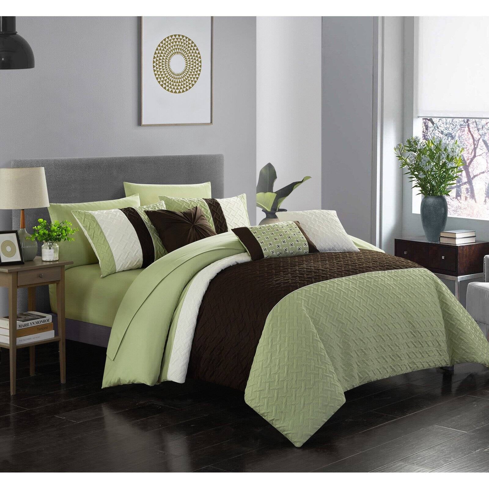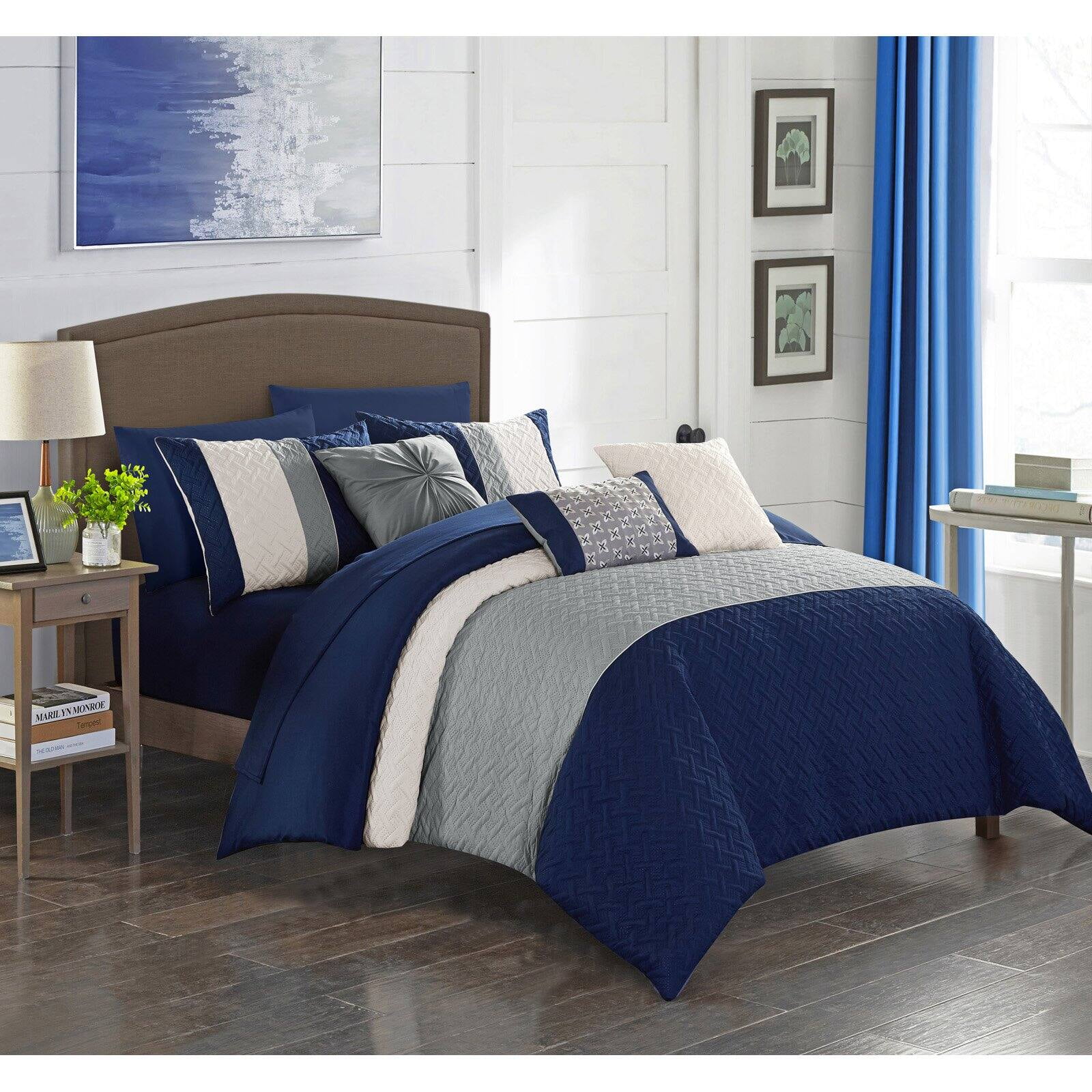 Chic Home 8/10 Piece Adam Pintuck Pieced Color Block Embroidery Bed In a Bag Comforter Set With sheet set