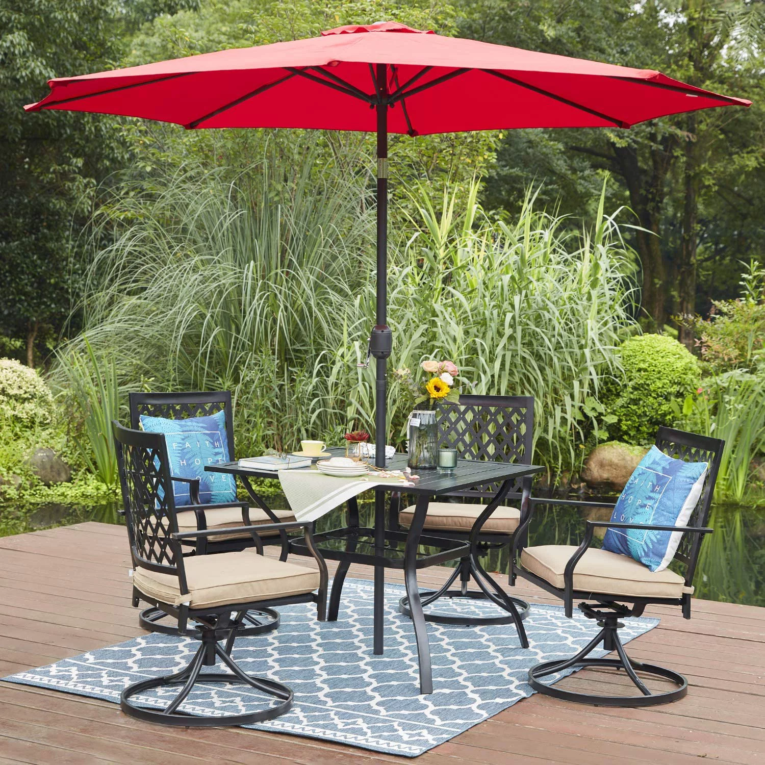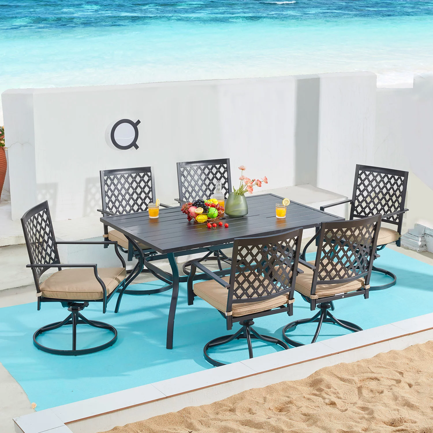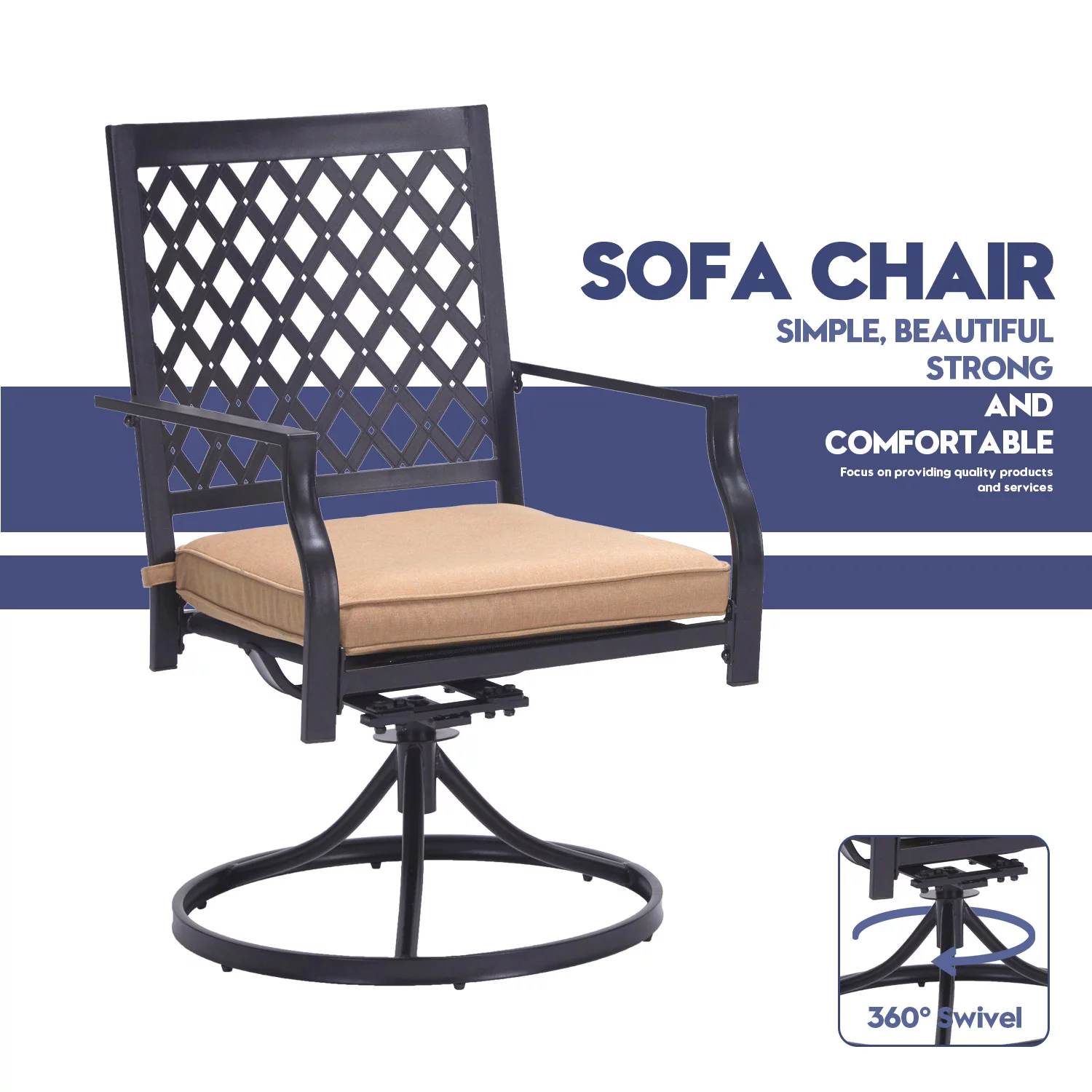 Vicllax Outdoor Swivel Dining Chairs Set of 2 Extra Wide Bar Chairs Metal Frame Patio Furniture