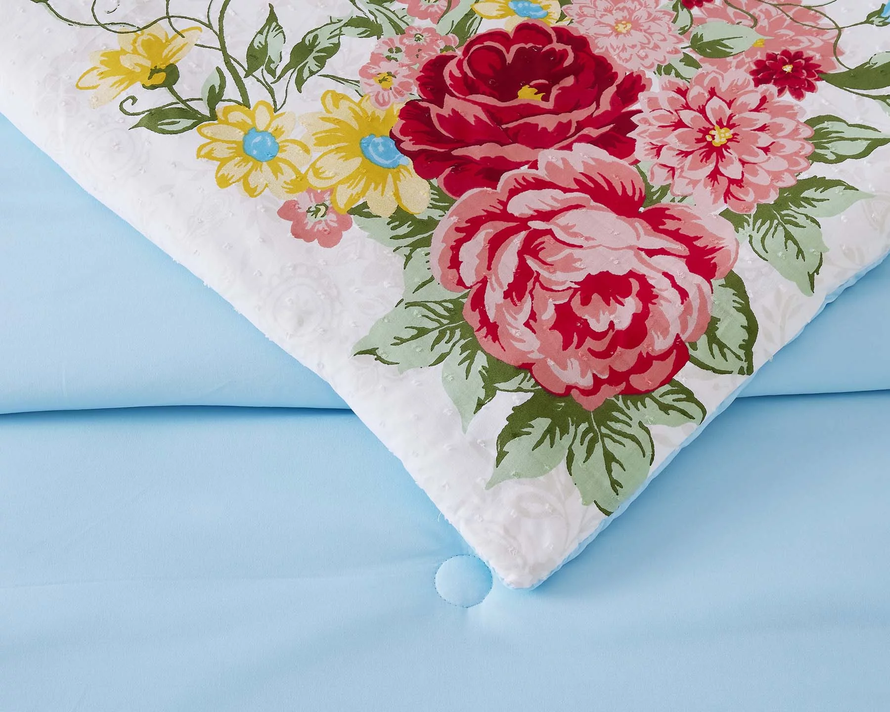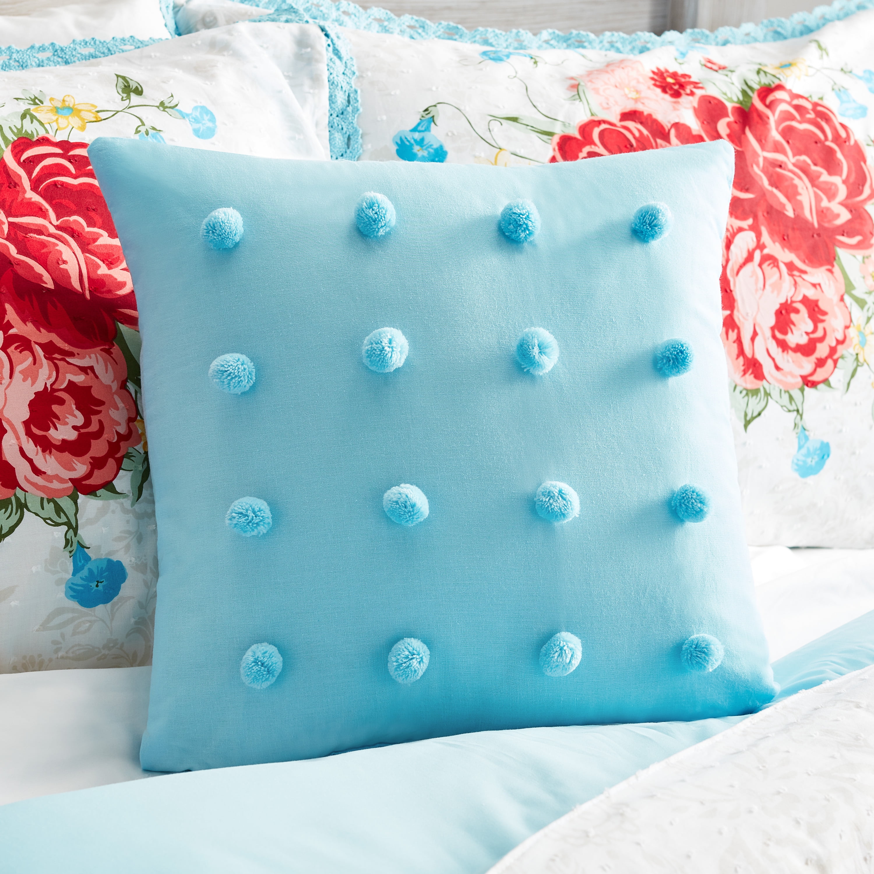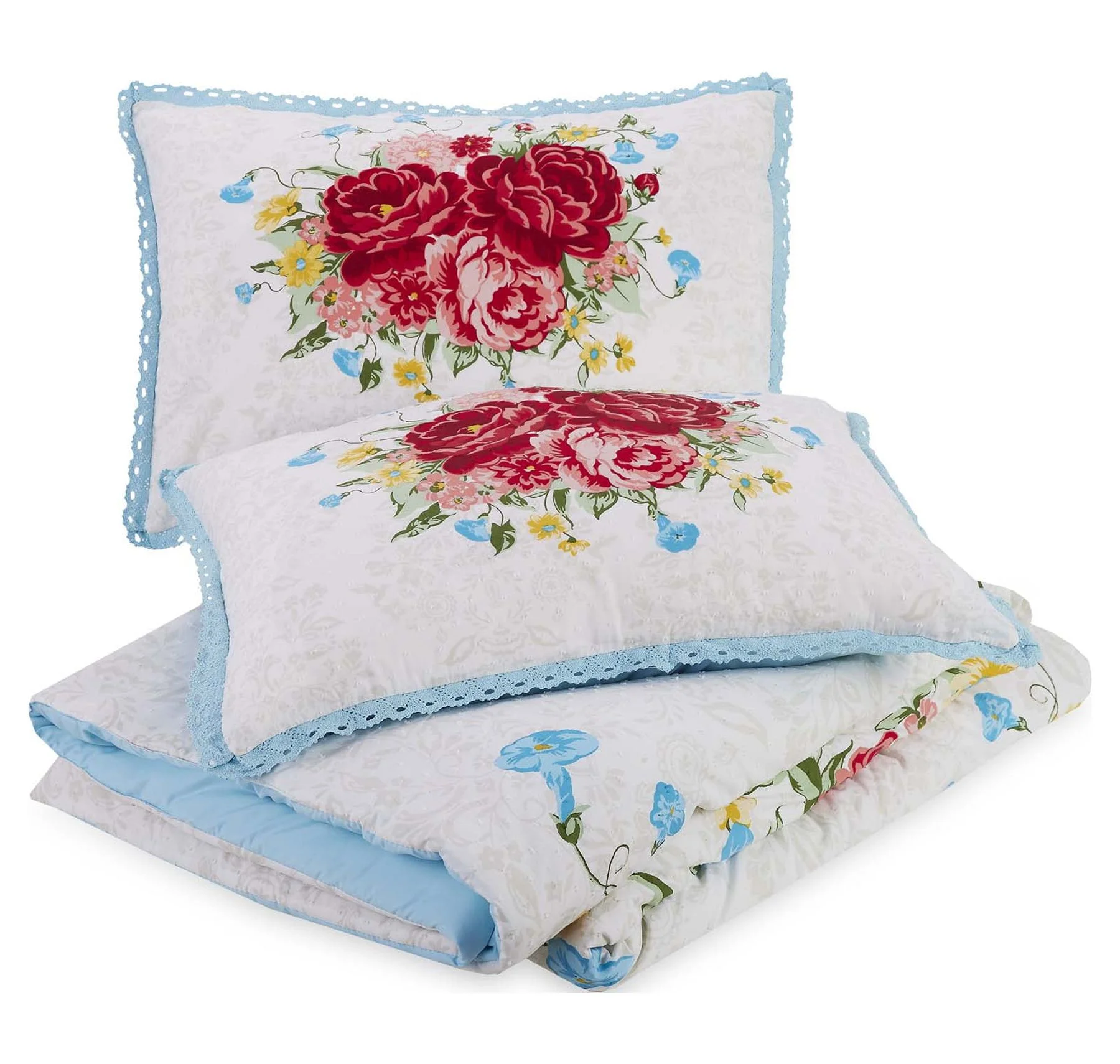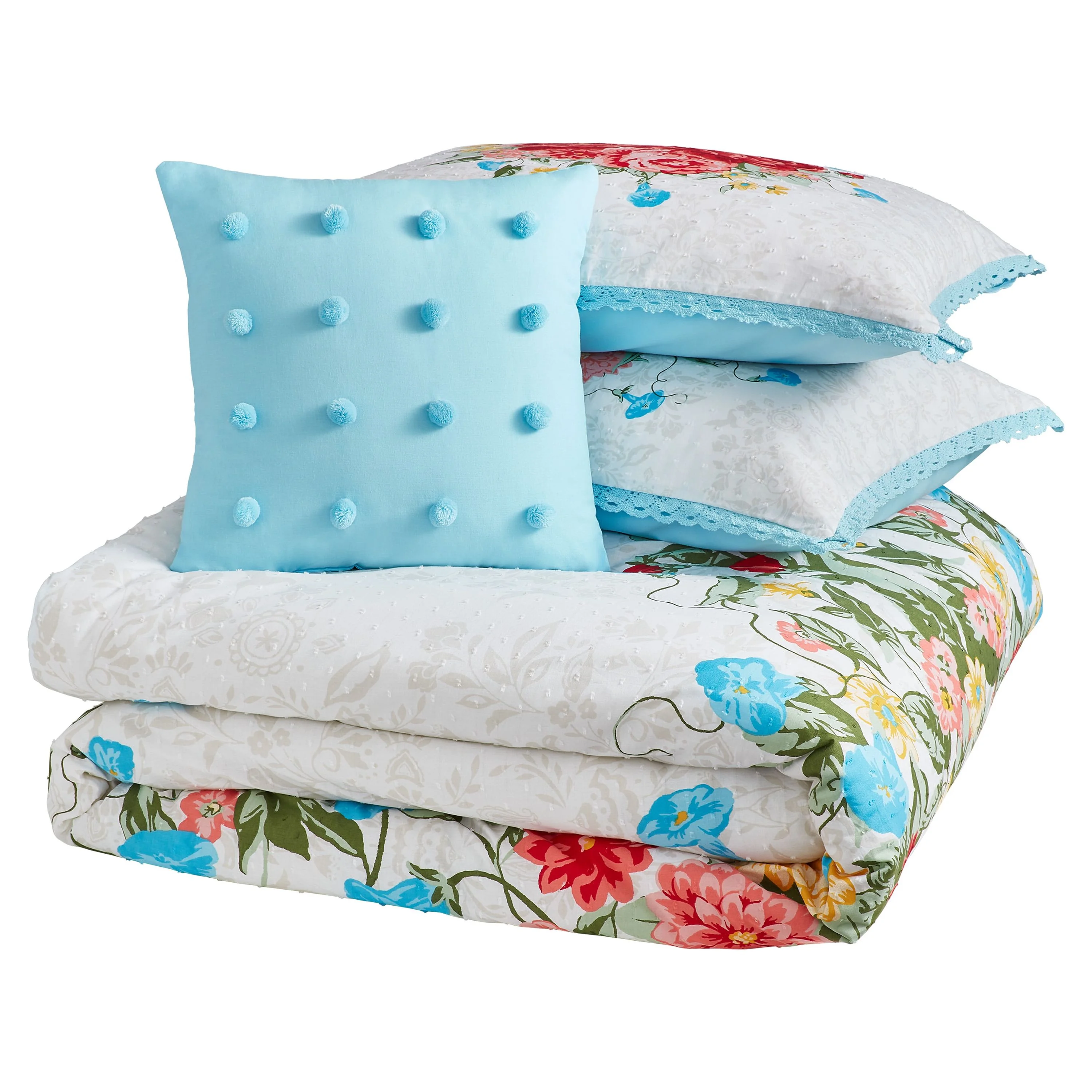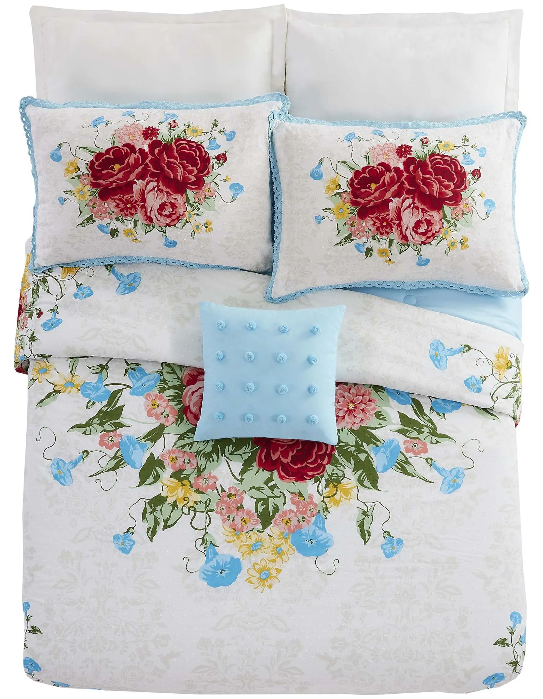 The Pioneer Woman Blue Cotton Sweet Rose 4-Piece Comforter Set, Full / Queen