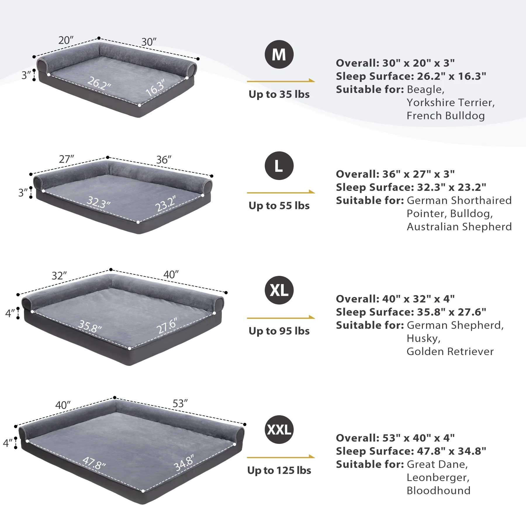 KSIIA Orthopedic Dog Bed Sofa with Removable Waterproof Cover 35"x22" Pet Couch for Medium Dogs