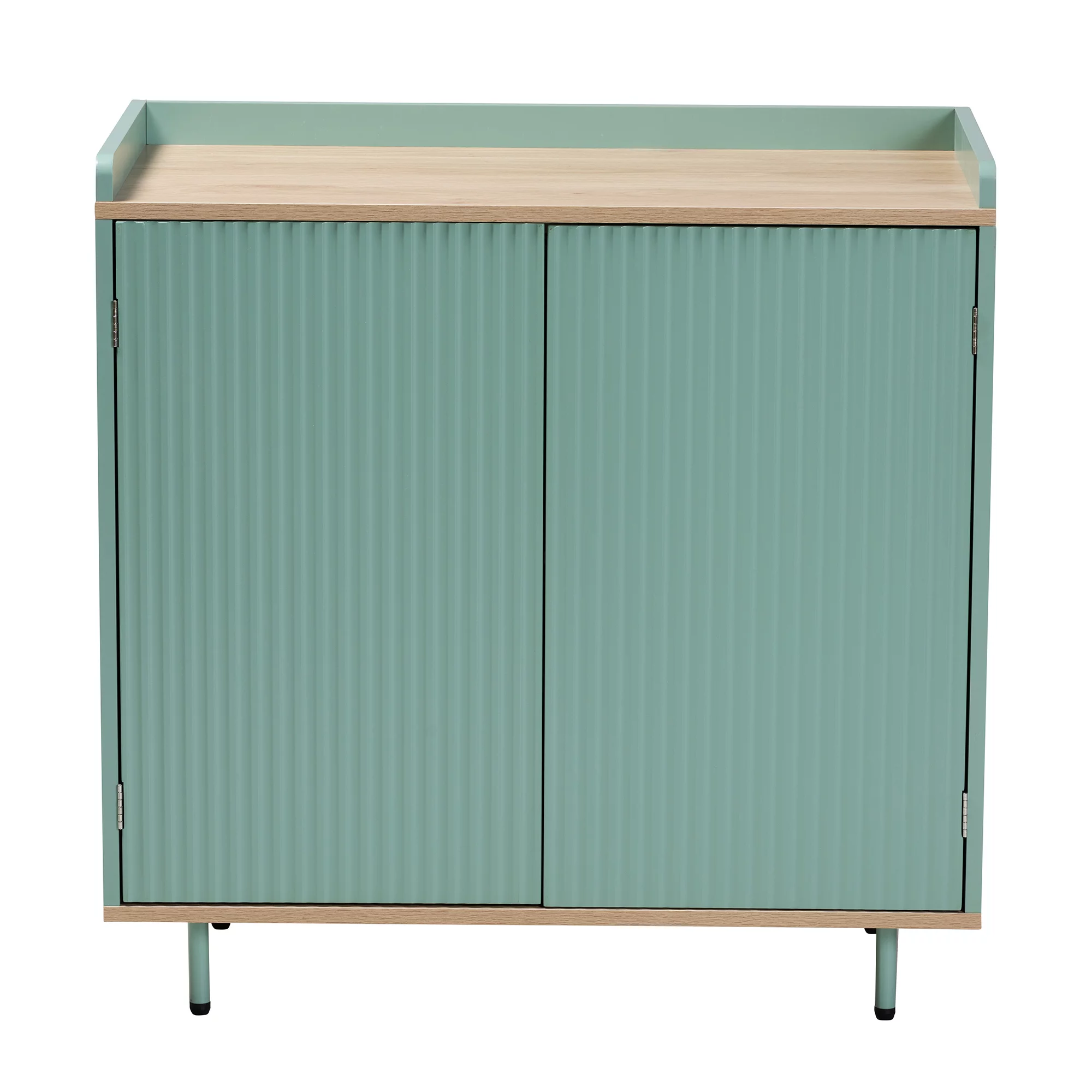 Baxton Studio Tavita Mid-Century Modern Two-Tone Mint Green and Oak Brown Finished Wood 2-Door Sideboard Buffet
