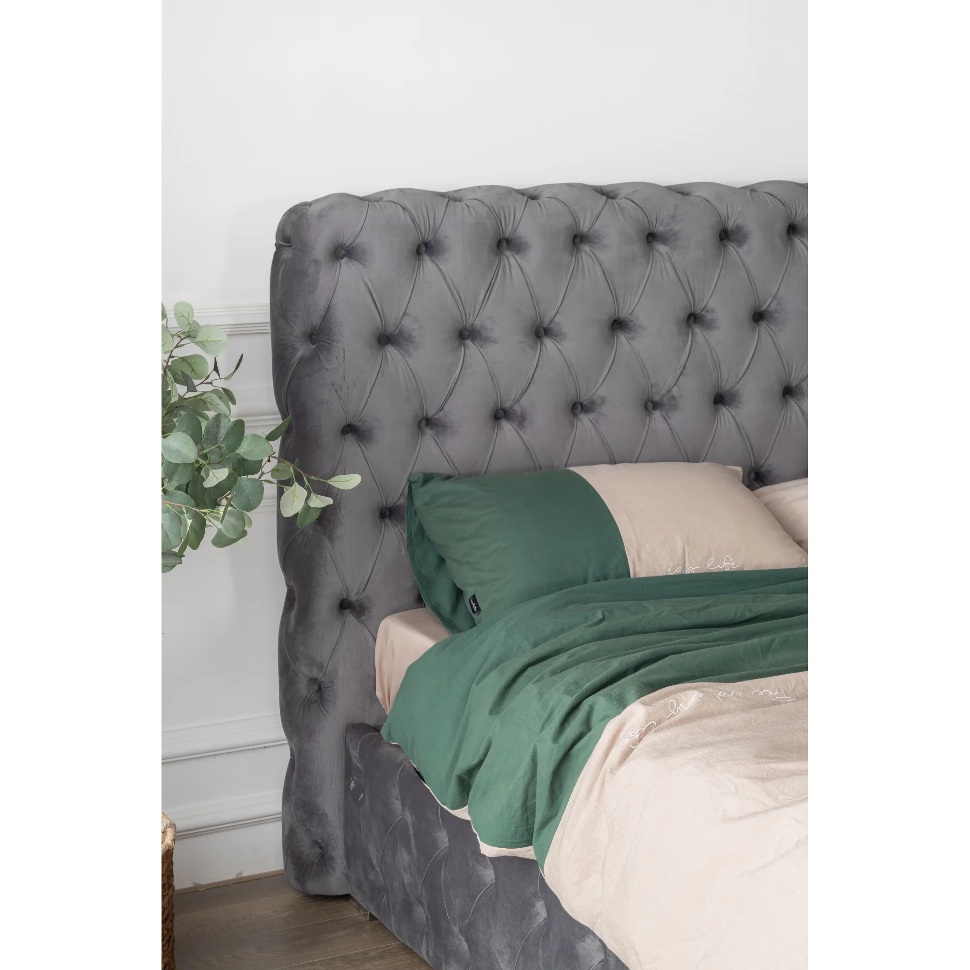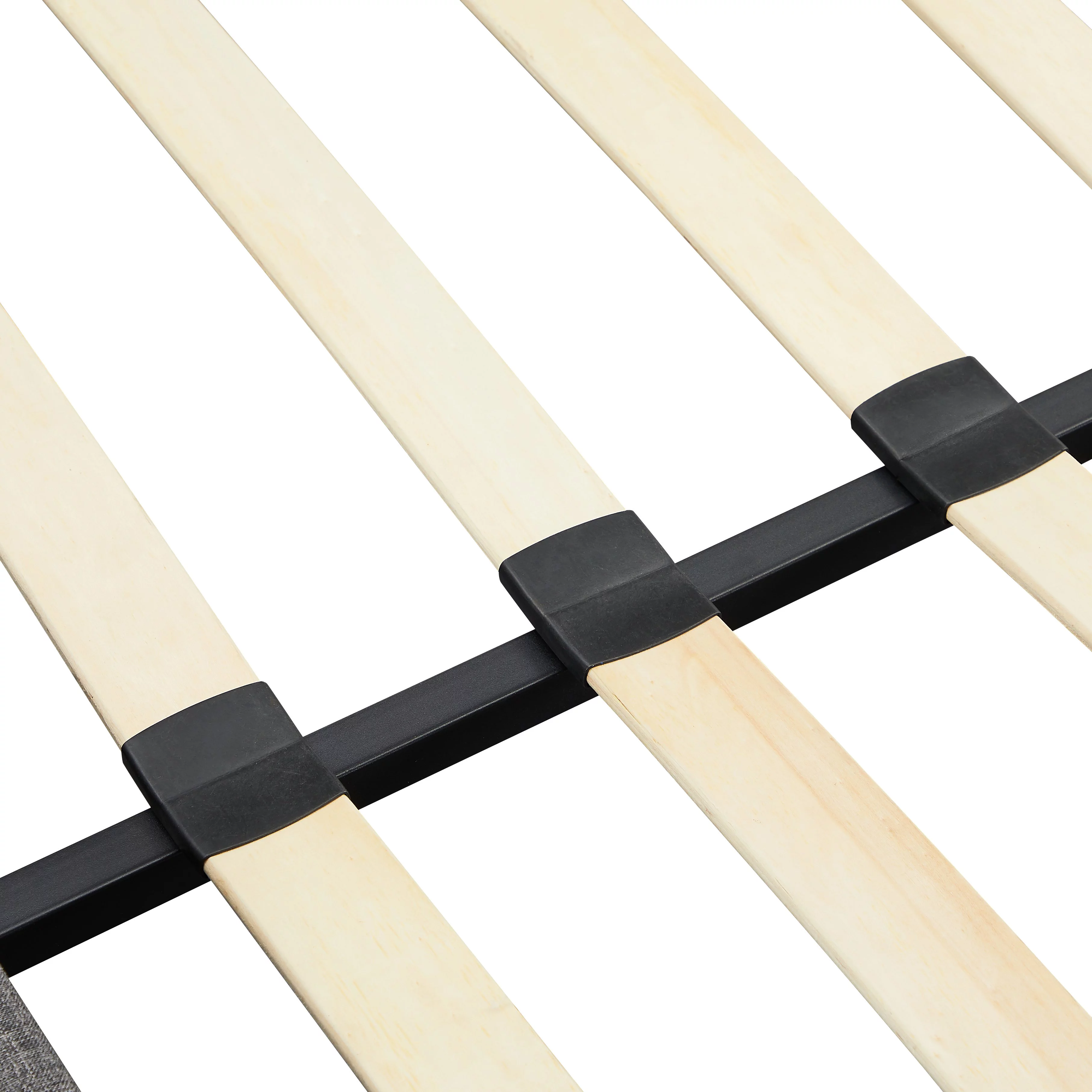 LANTRO JS B108 Full bed Beautiful line stripe cushion headboard, strong wooden slats + metal support feet, Gray Flannelette