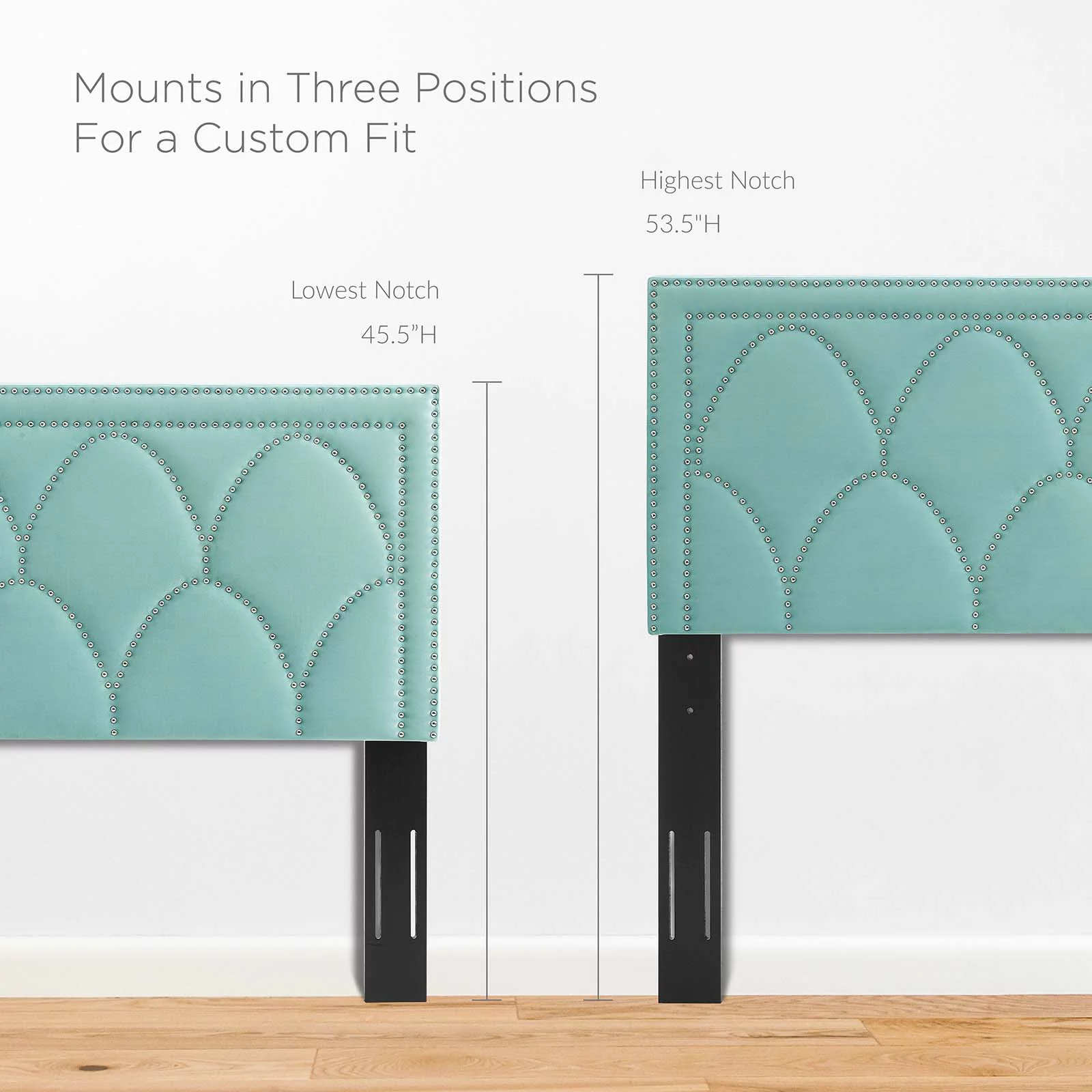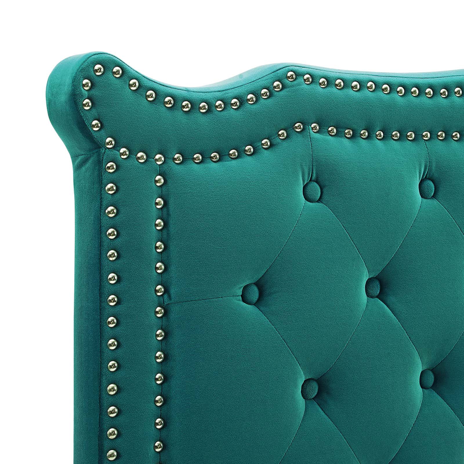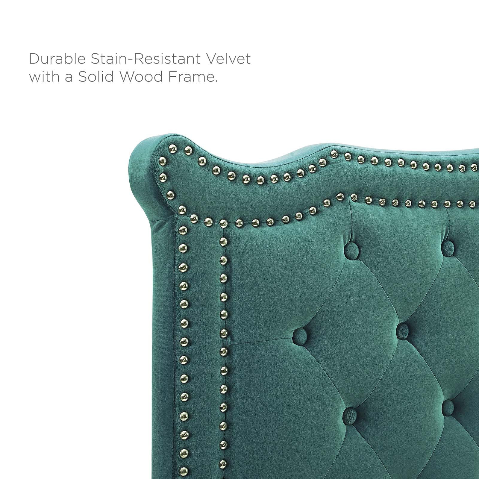 Pemberly Row Modern Fabric Biscuit Tufted Velvet Twin Headboard in Light Blue