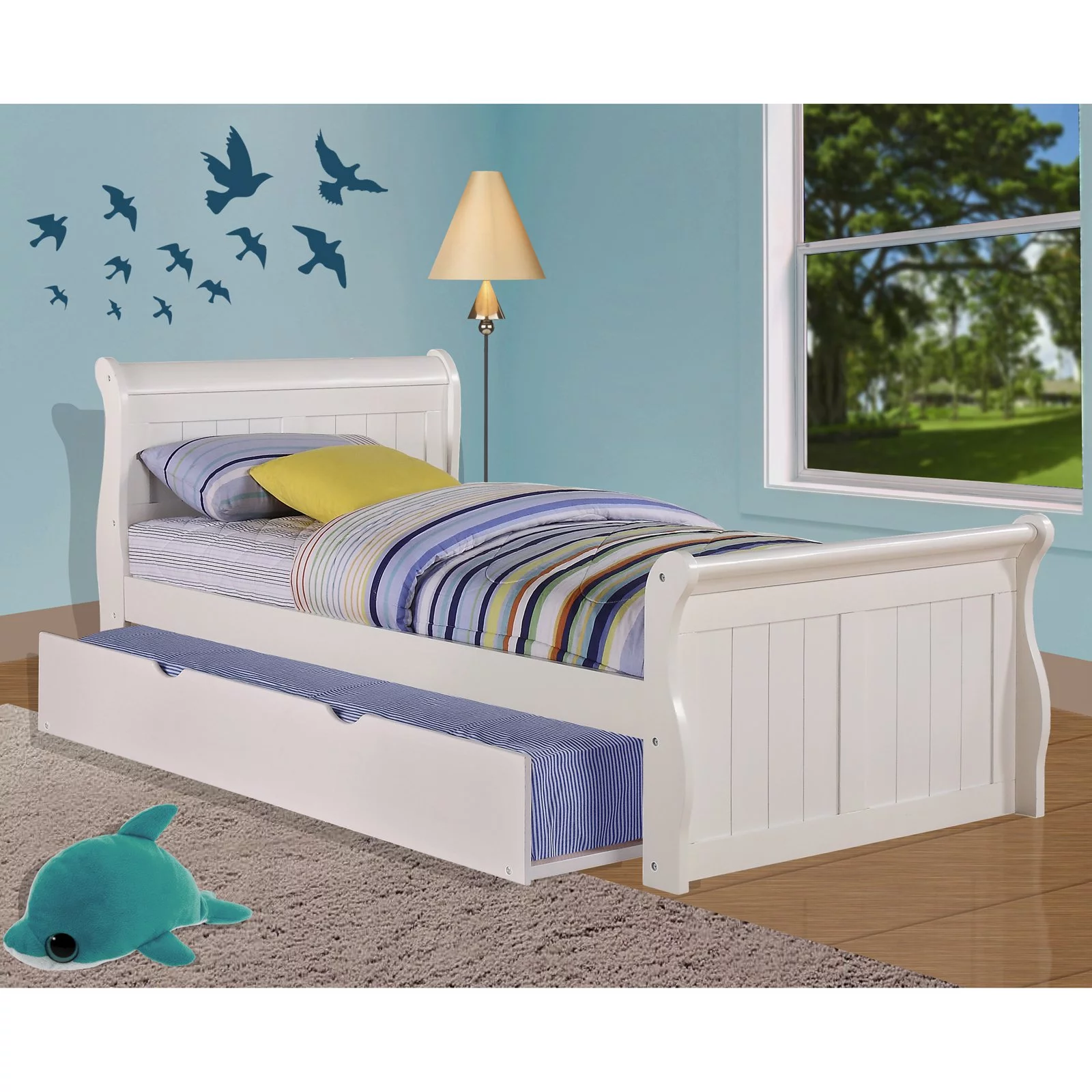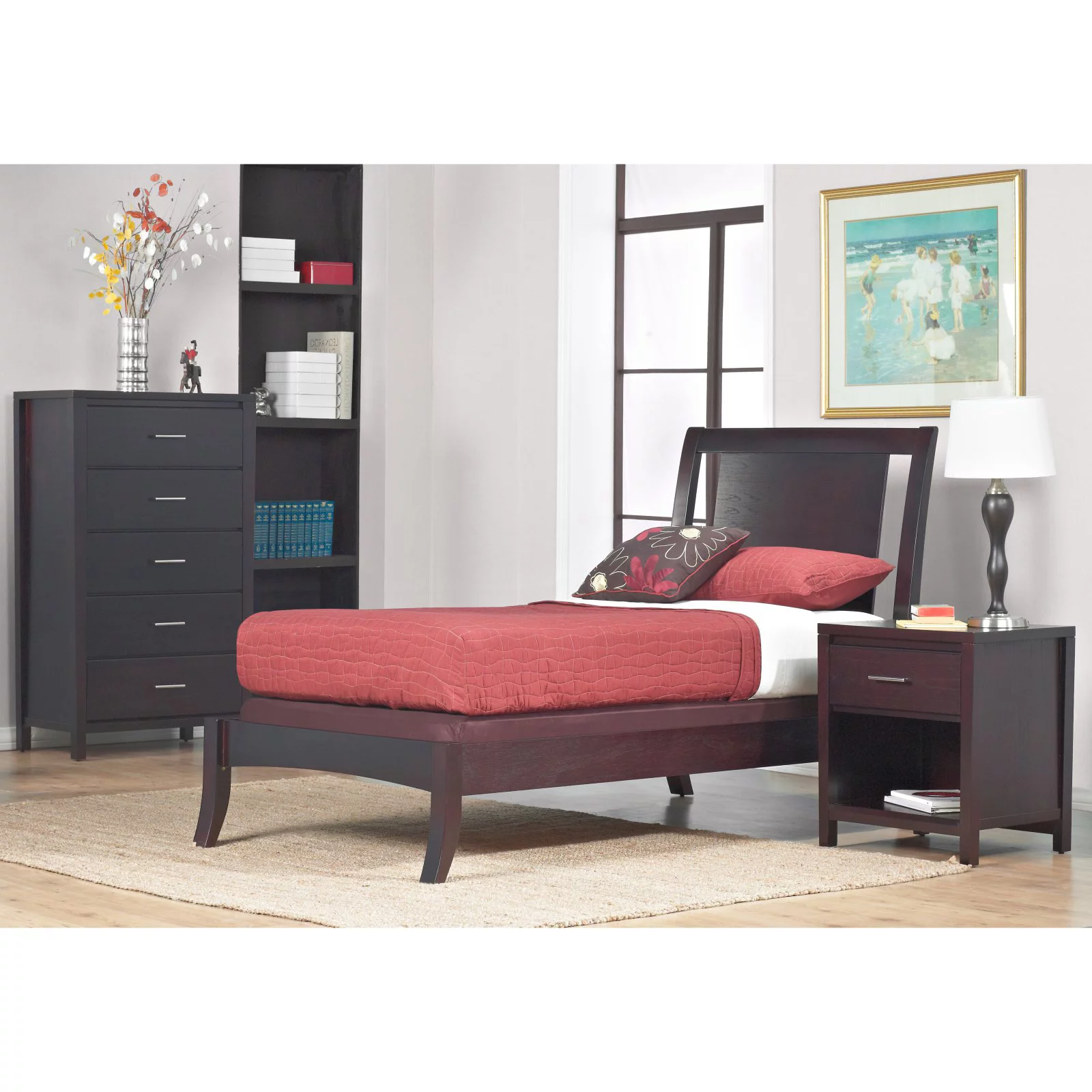 CoSoTower Twin Size Bed Black Louis Phillipe Solidwood 1Pc Bed Bedroom Sleigh Bed