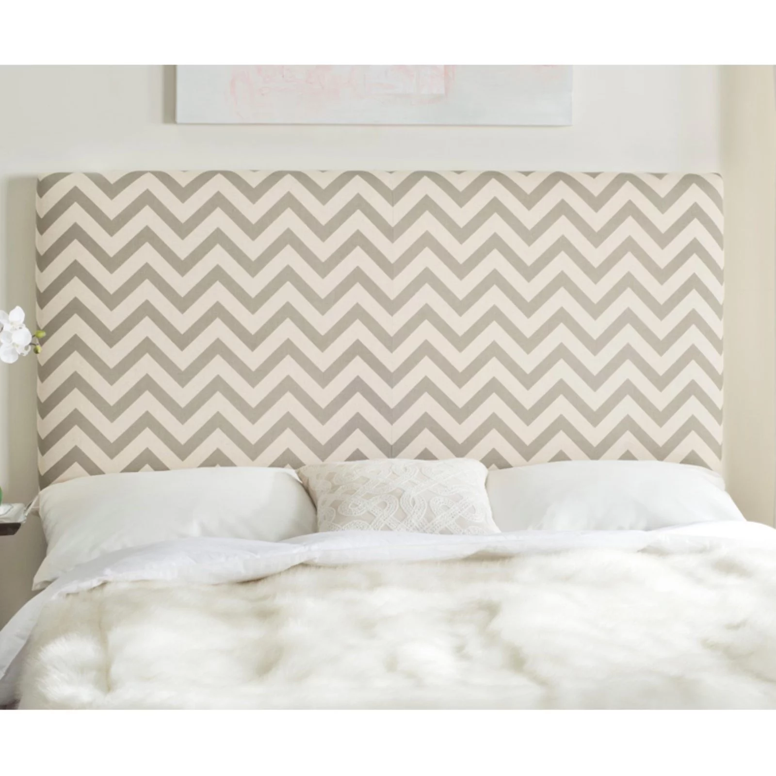 SAFAVIEH Ziggy Chevron Stripes Upholstered Headboard, Full, Black/White Zig Zag