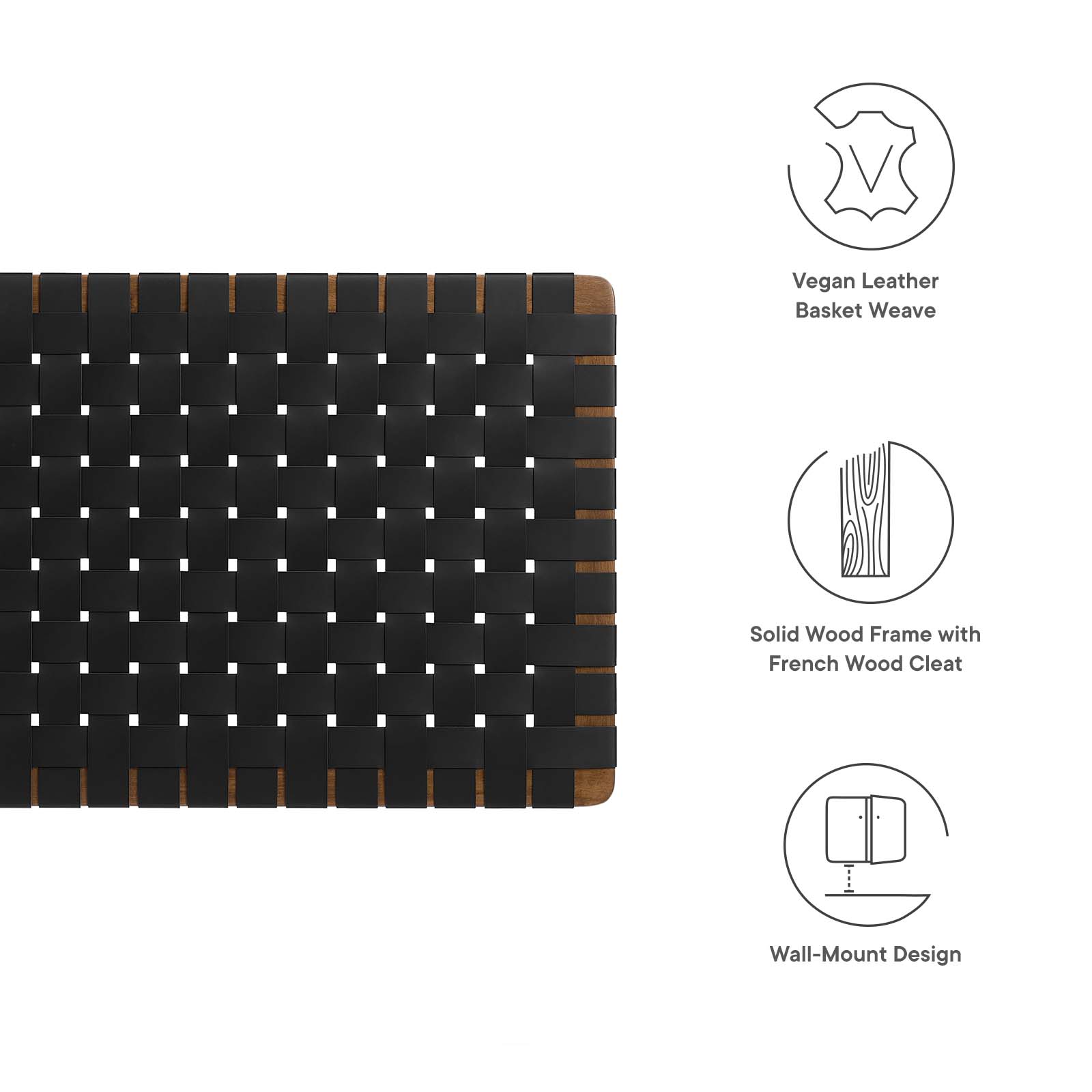 Modway Sparta Weave Wall-Mount Twin Vegan Leather Headboard in Walnut Black