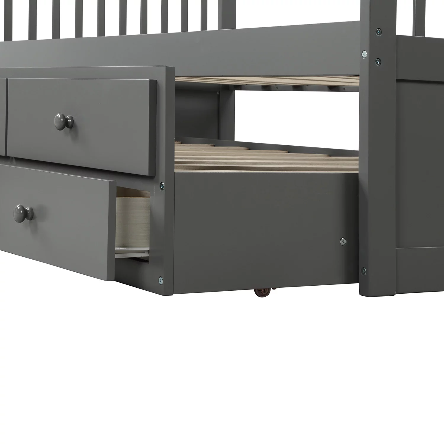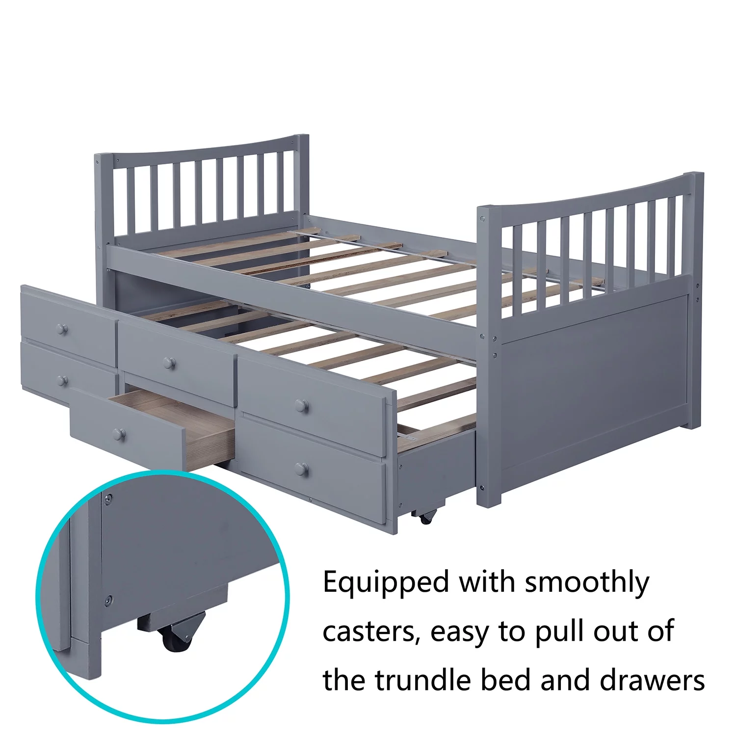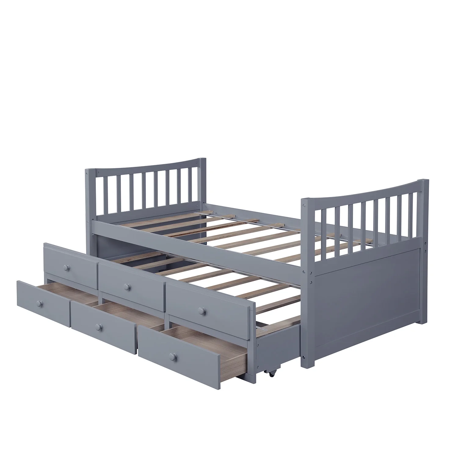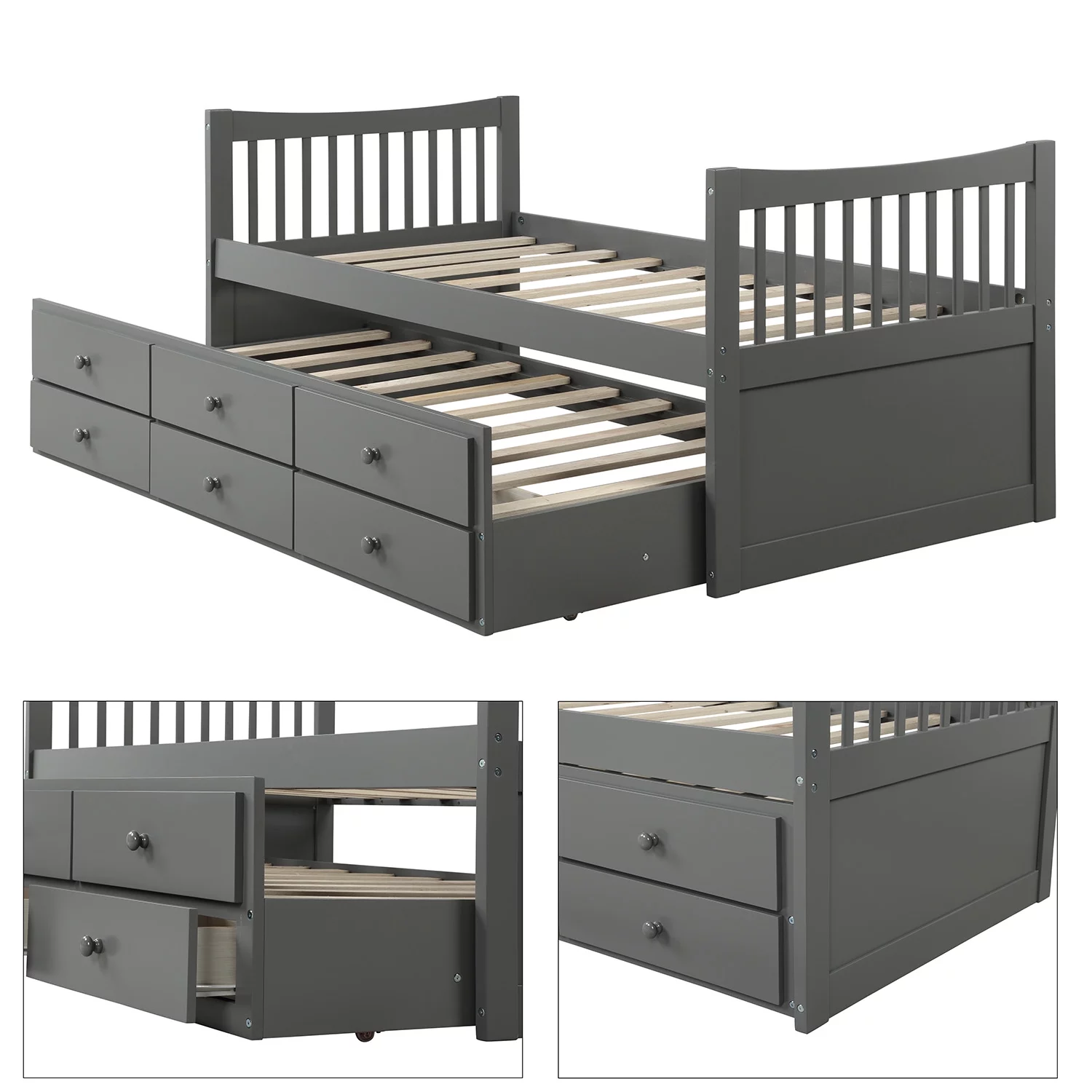 Wood Bed Captain's Bed Storage Twin Daybed with Trundle Bed and Storage Drawers Platform Bed Kids Bed
