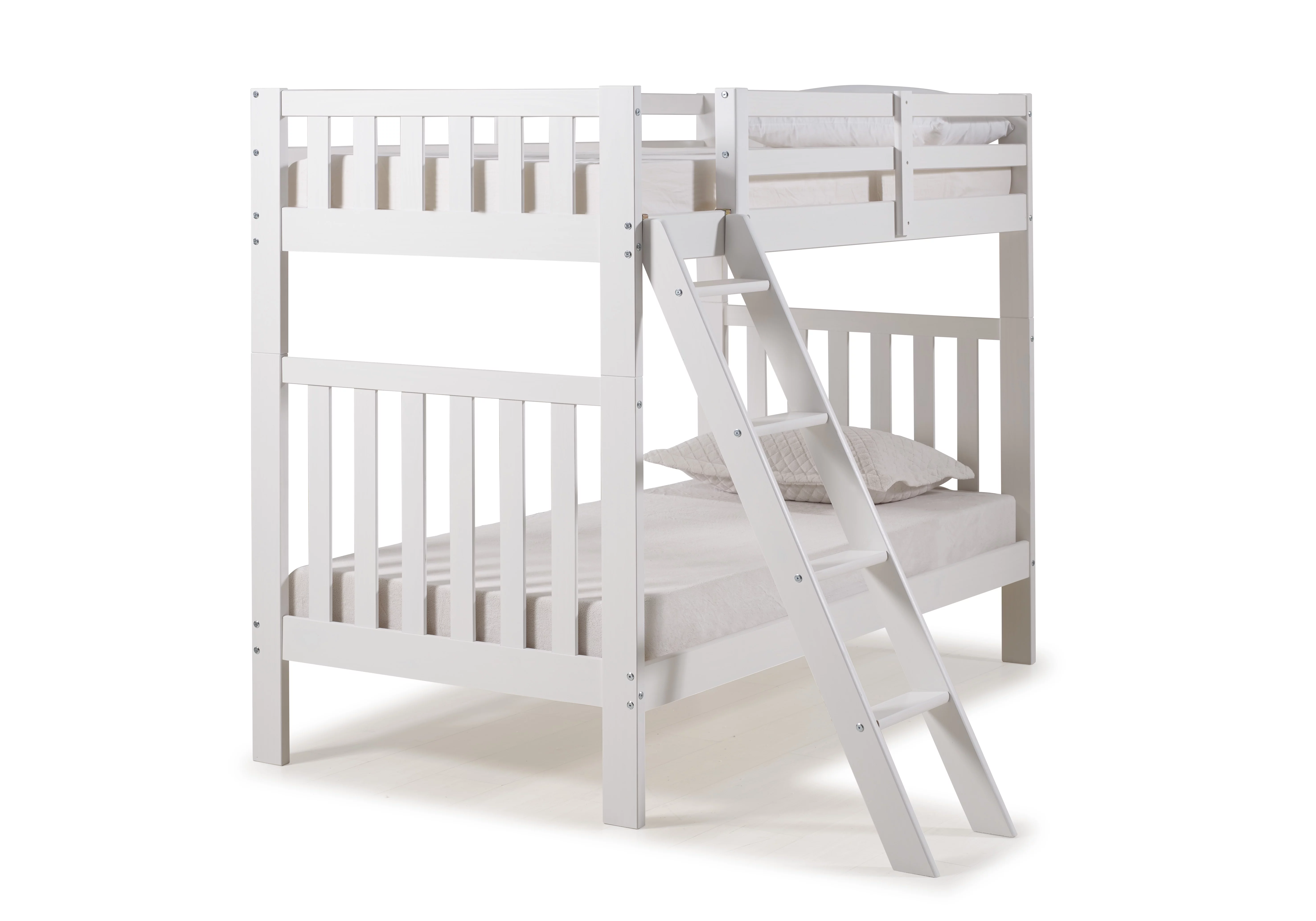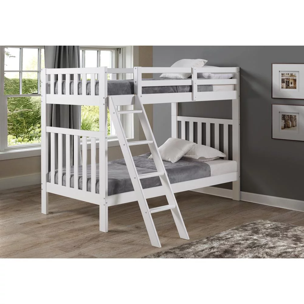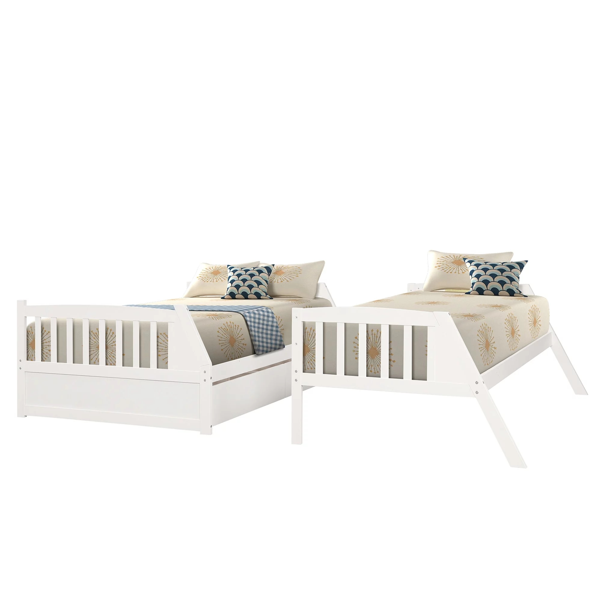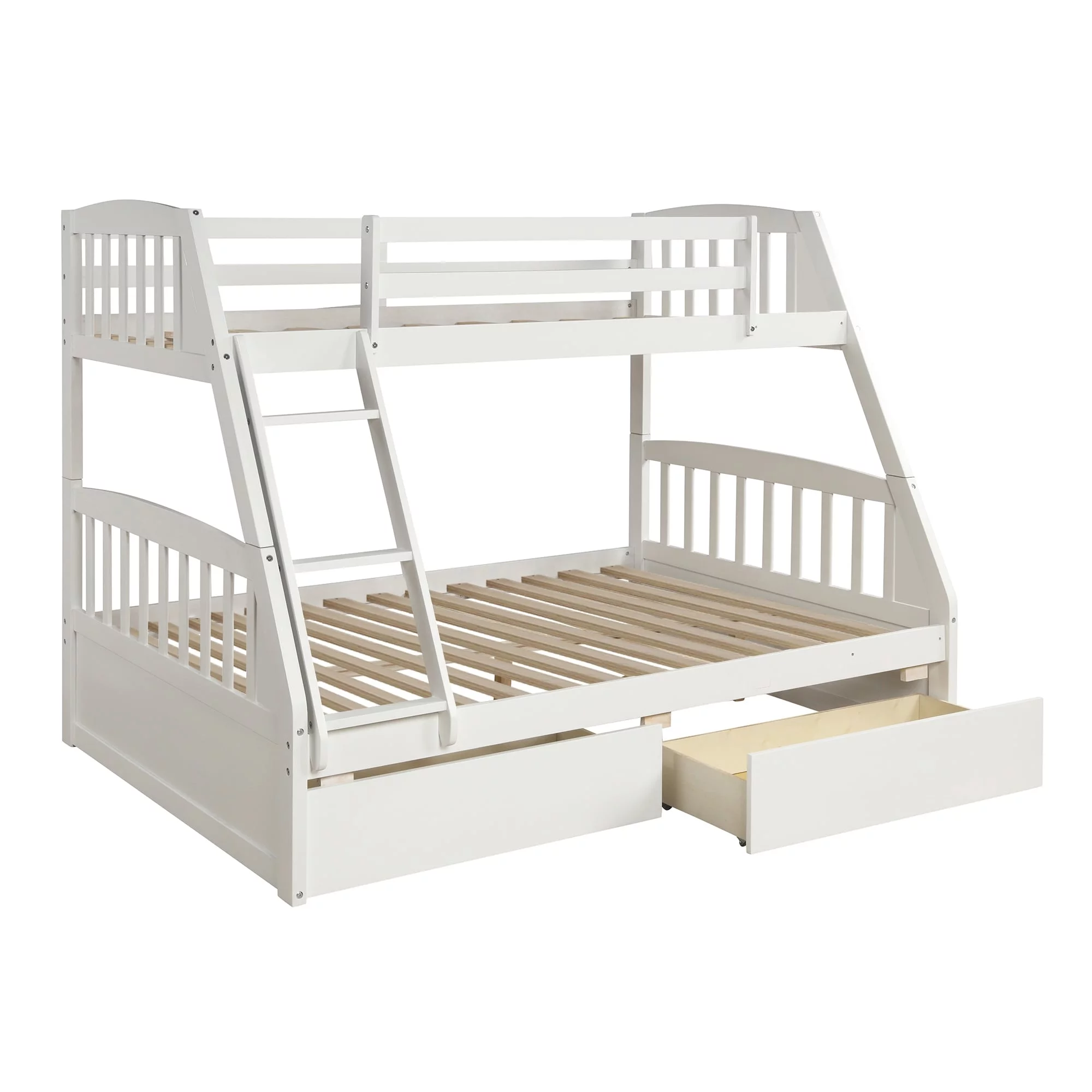 Home Adores Marco Solid Wood Twin Over Full White Bunk Bed with Two Storage Drawers