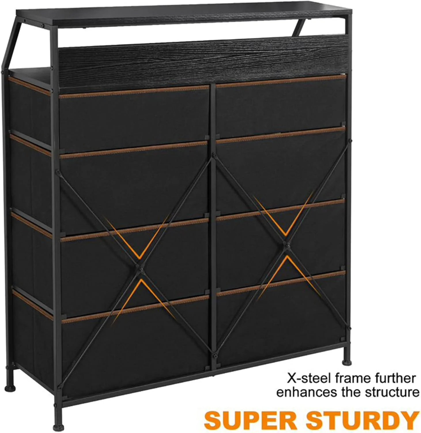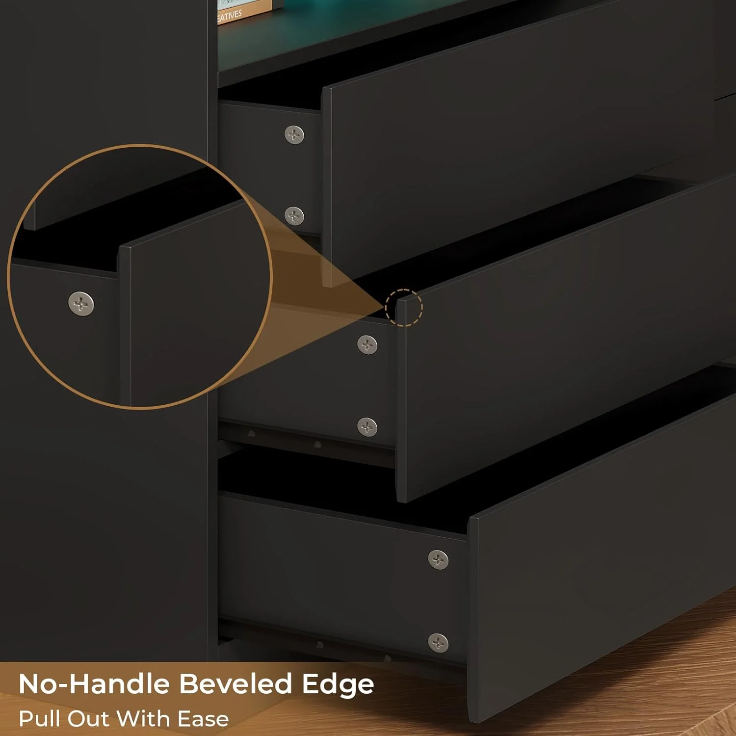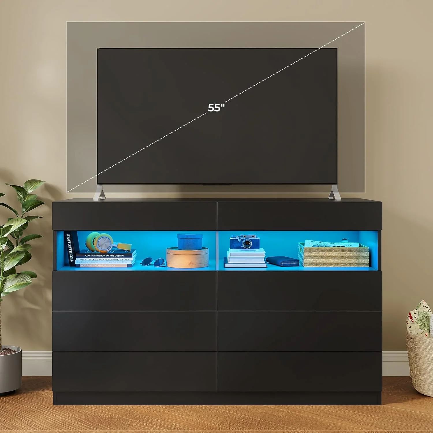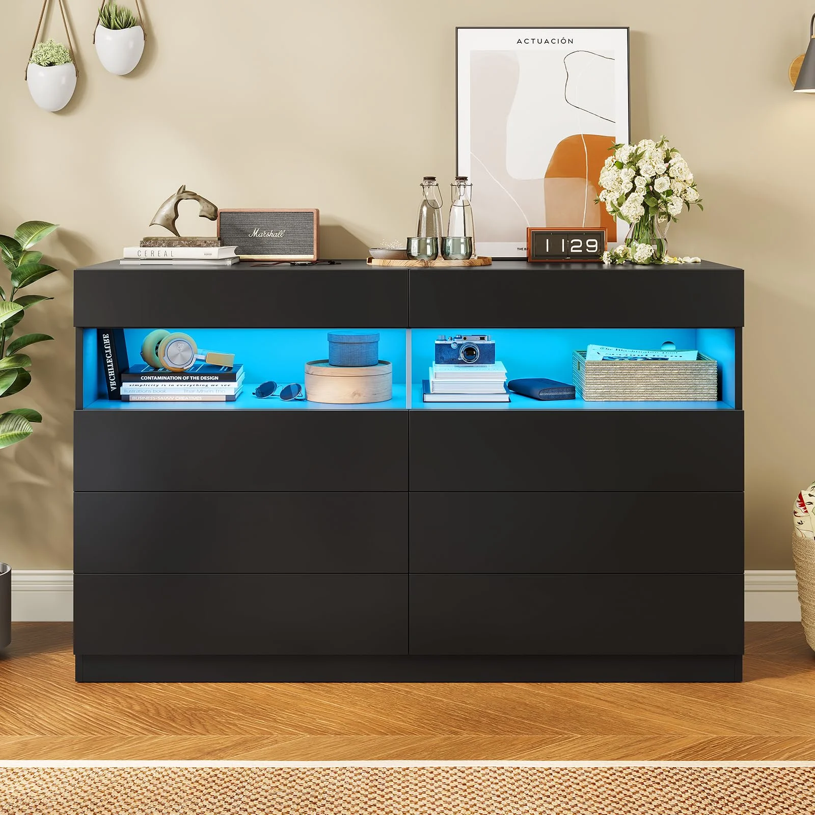 Afuhokles 8 Drawer Dressers for Bedroom with LED Light, Wide Wooden Chest of Drawers with Open Compartment, Black