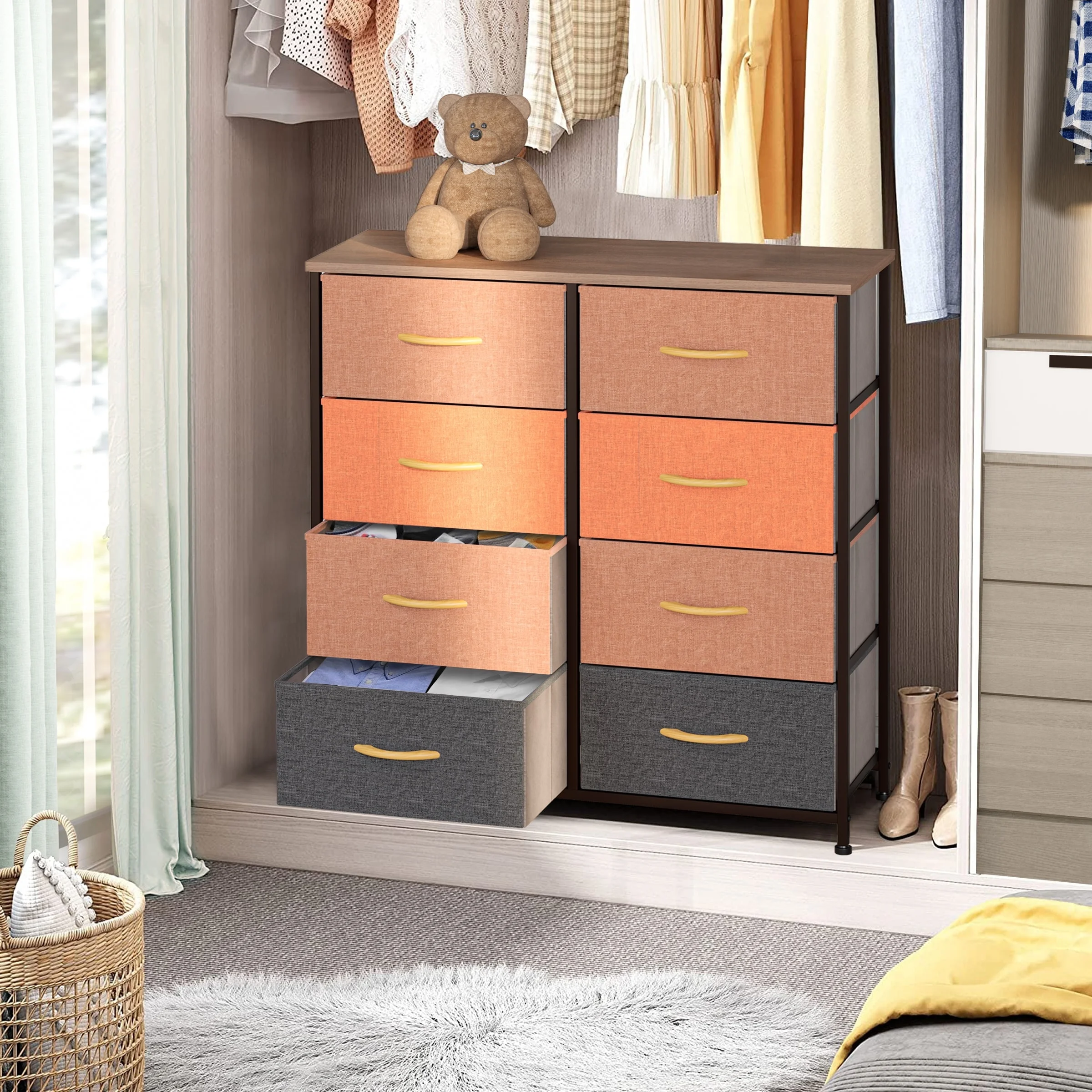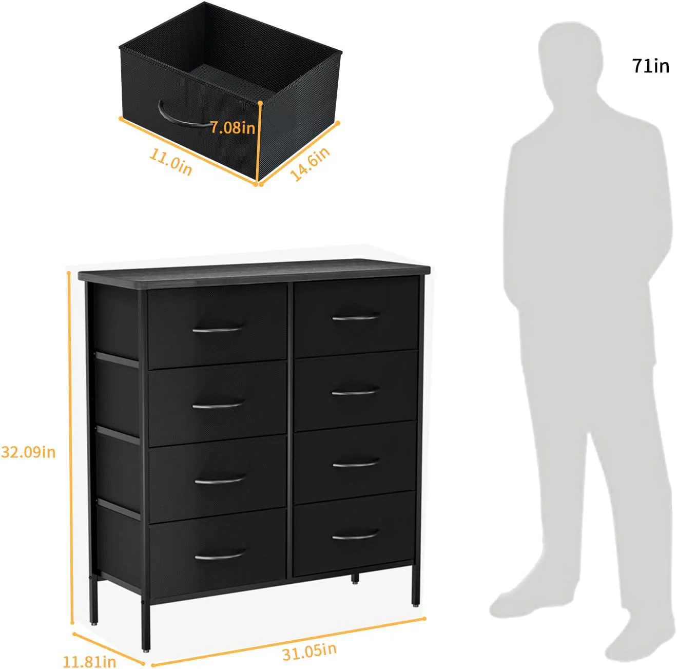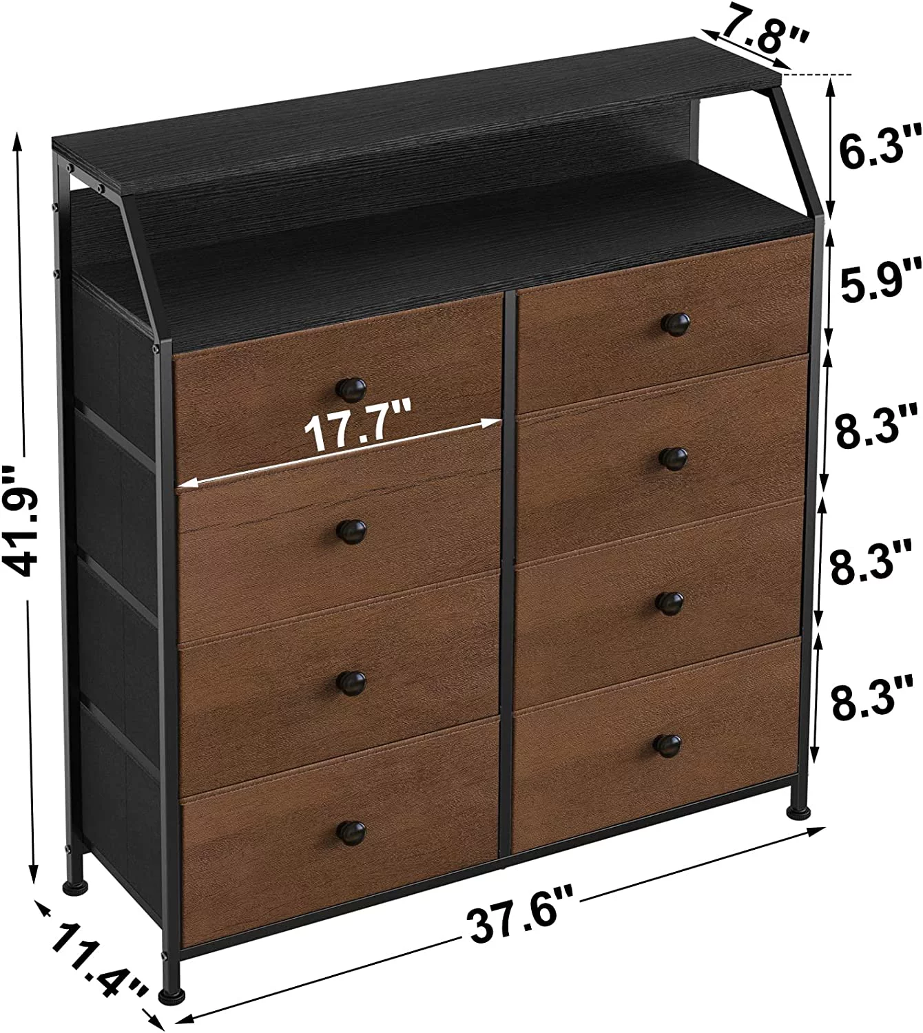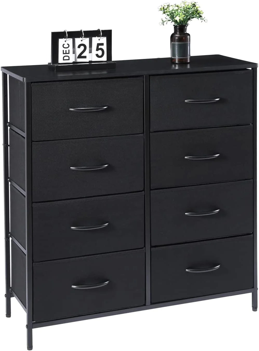 Afuhokles 8 Drawer Dressers for Bedroom with LED Light, Wide Wooden Chest of Drawers with Open Compartment, Black