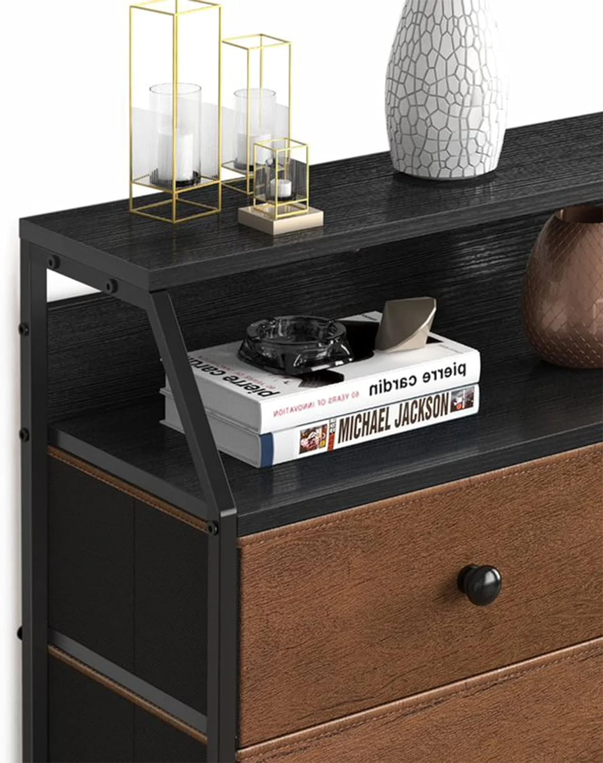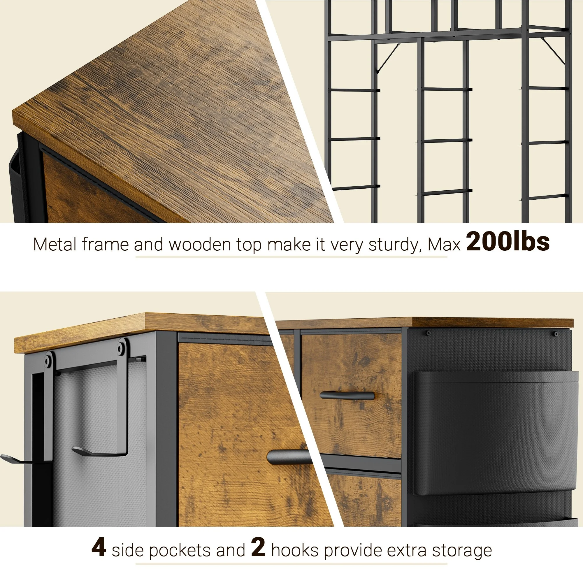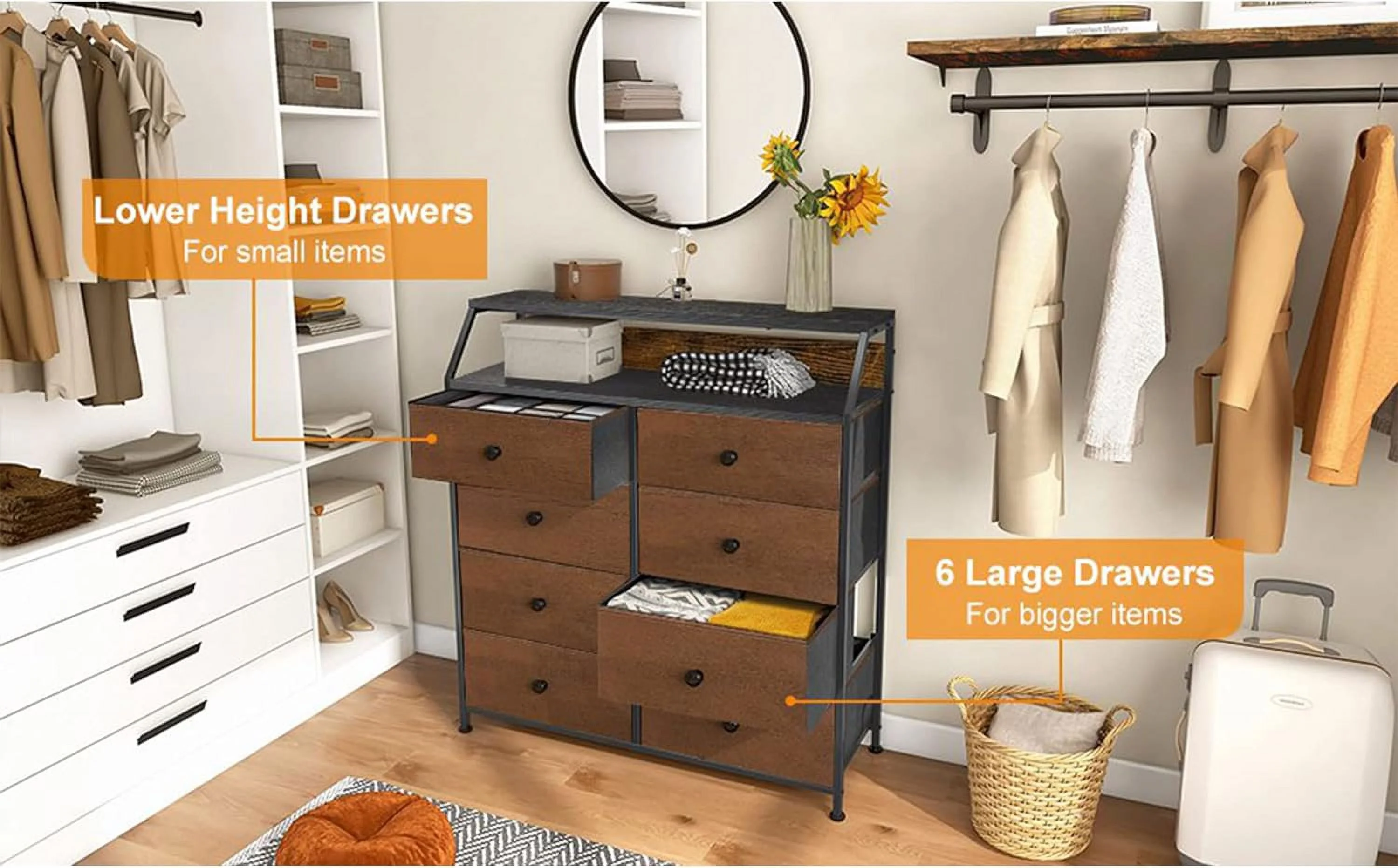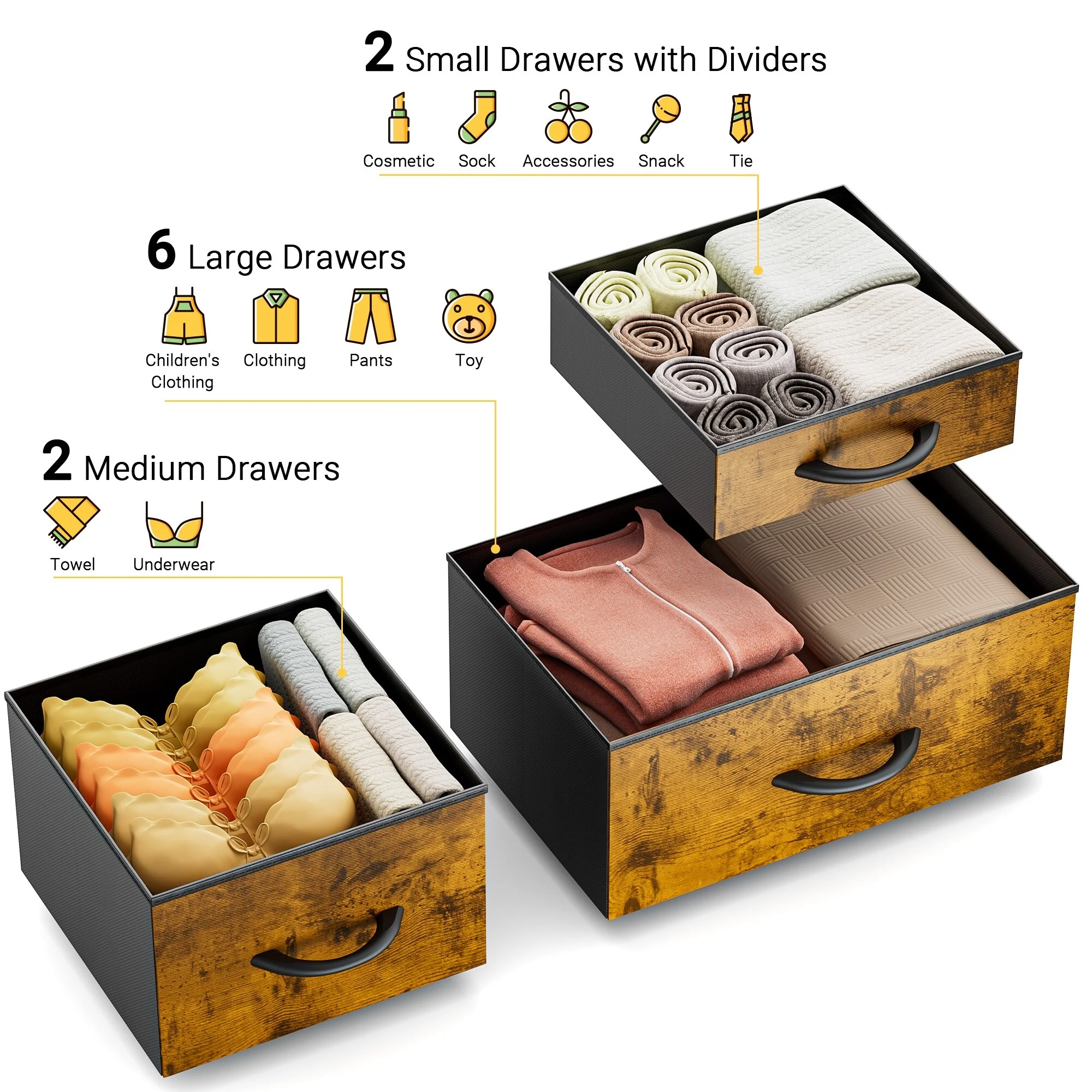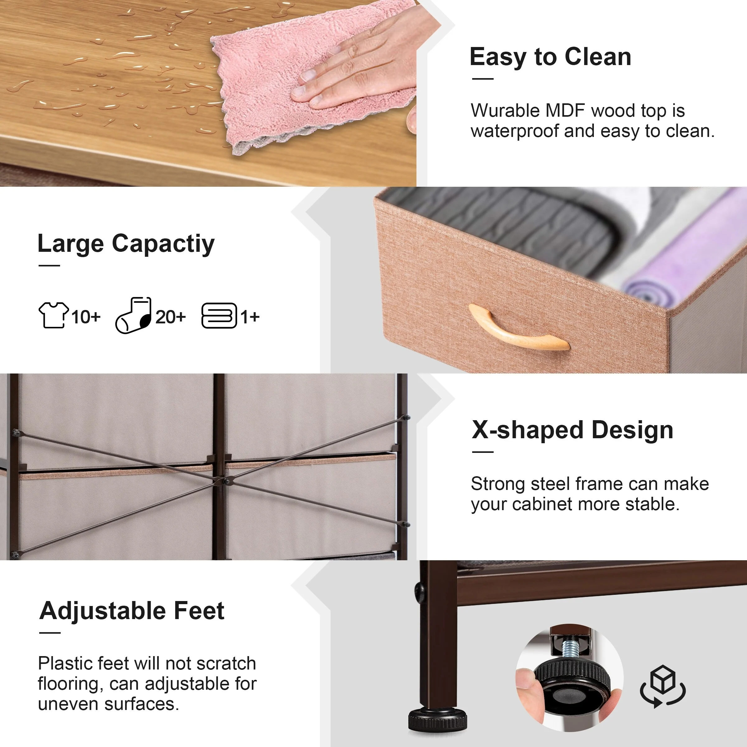 JINYUZHOU INC 12 Drawer Dresser Tall Dressers for Bedroom Fabric Chest of Drawers Rustic Brown
