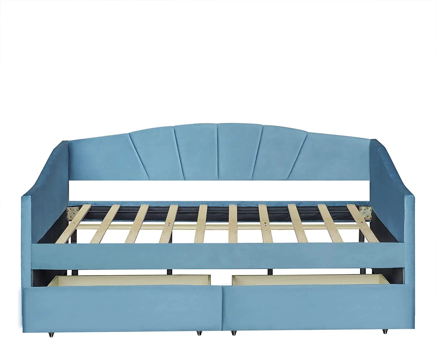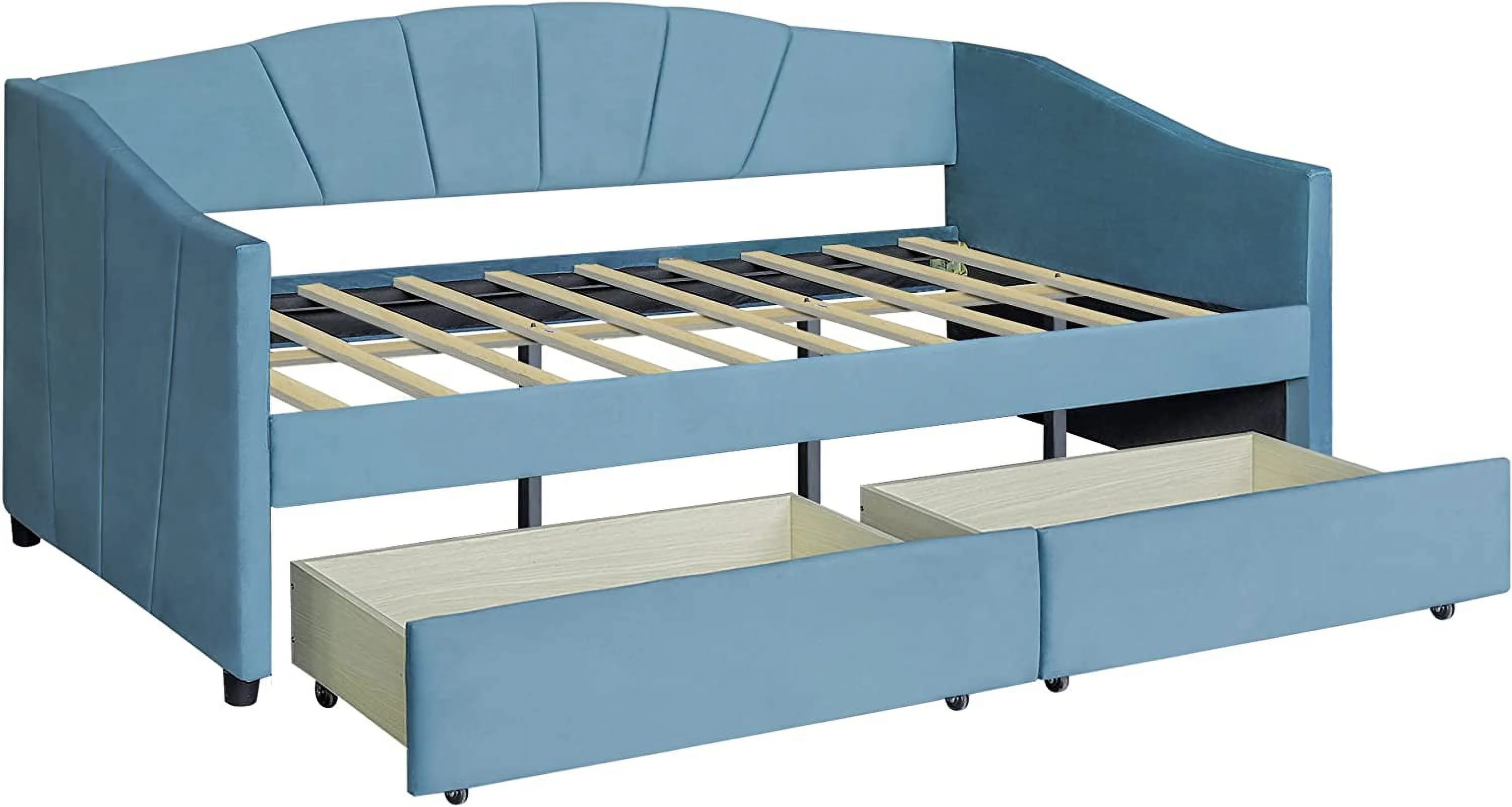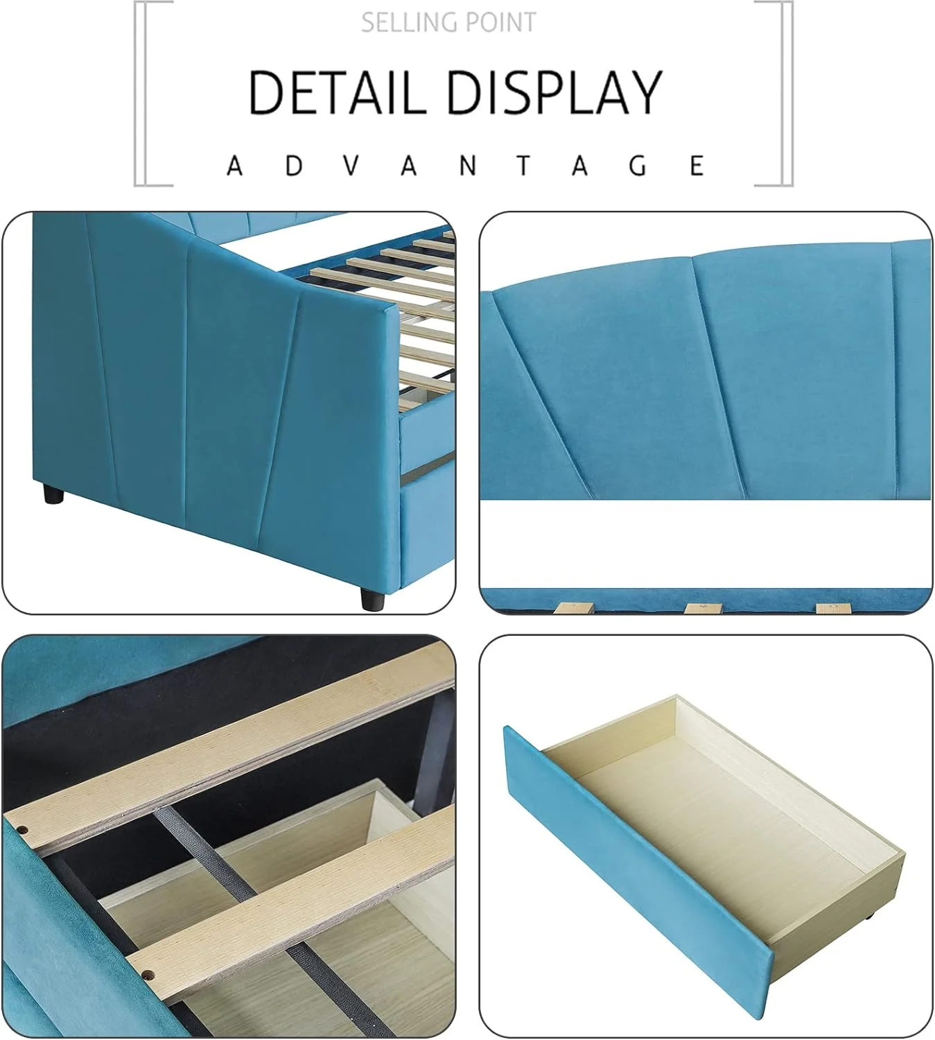 CoSoTower Twin Size Daybed with Twin Size Trundle, Storage Shelves and USB Ports, Blue