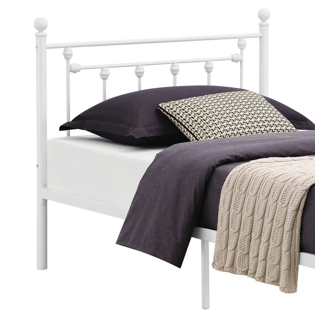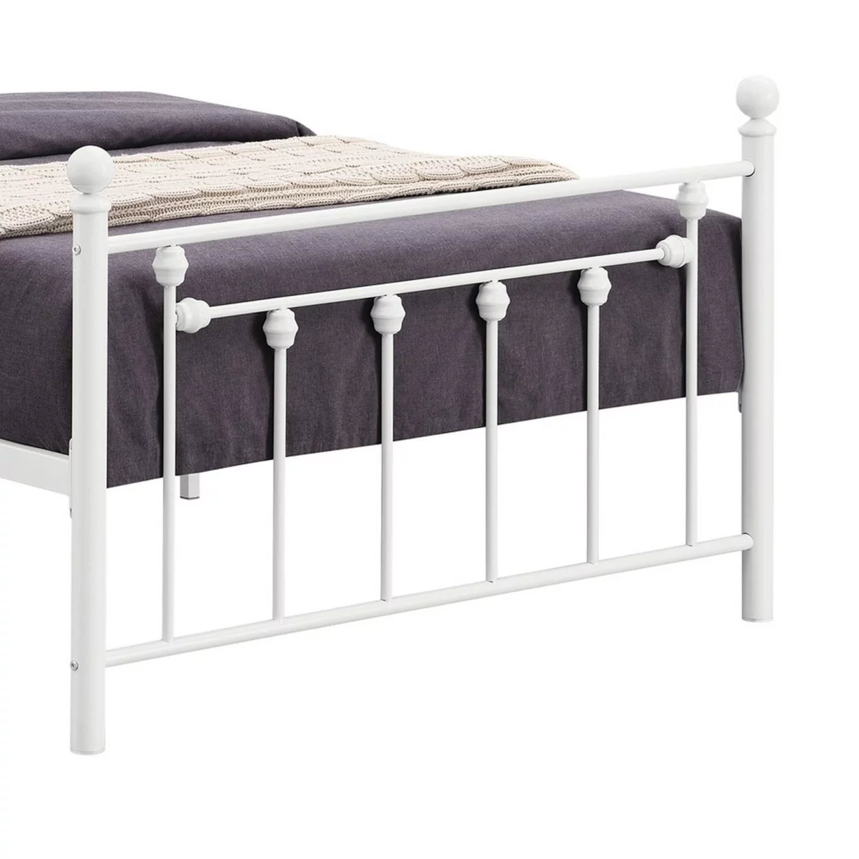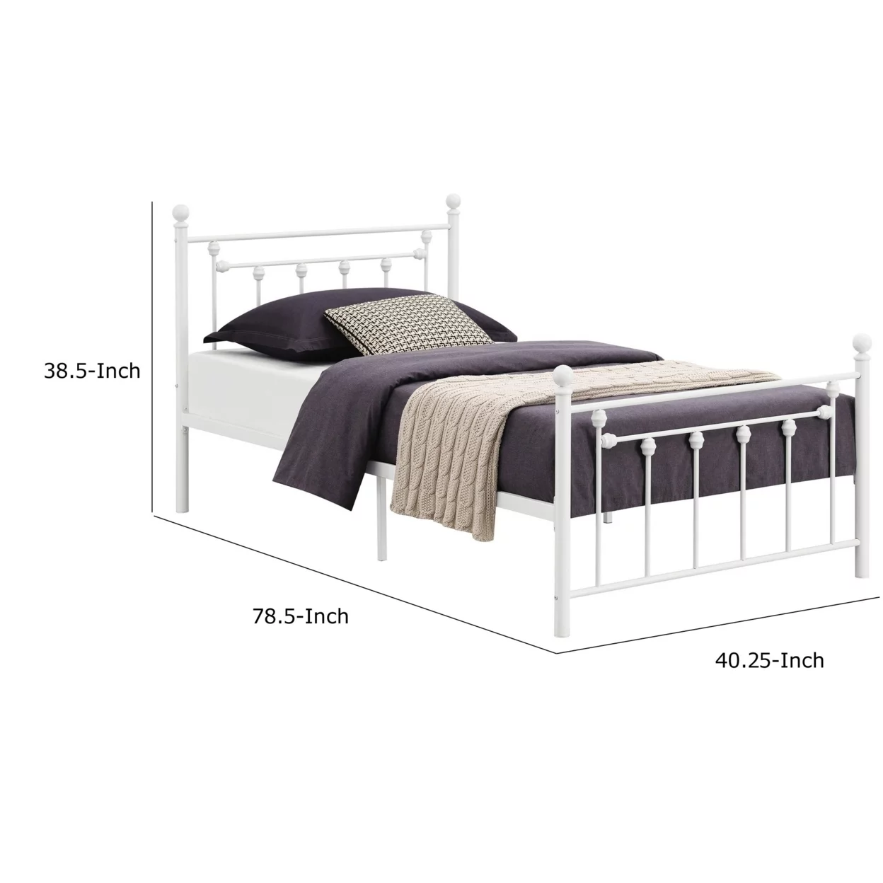 Dio 79 Inch Metal Twin Size Bed Frame Spindle Design Finial Posts White