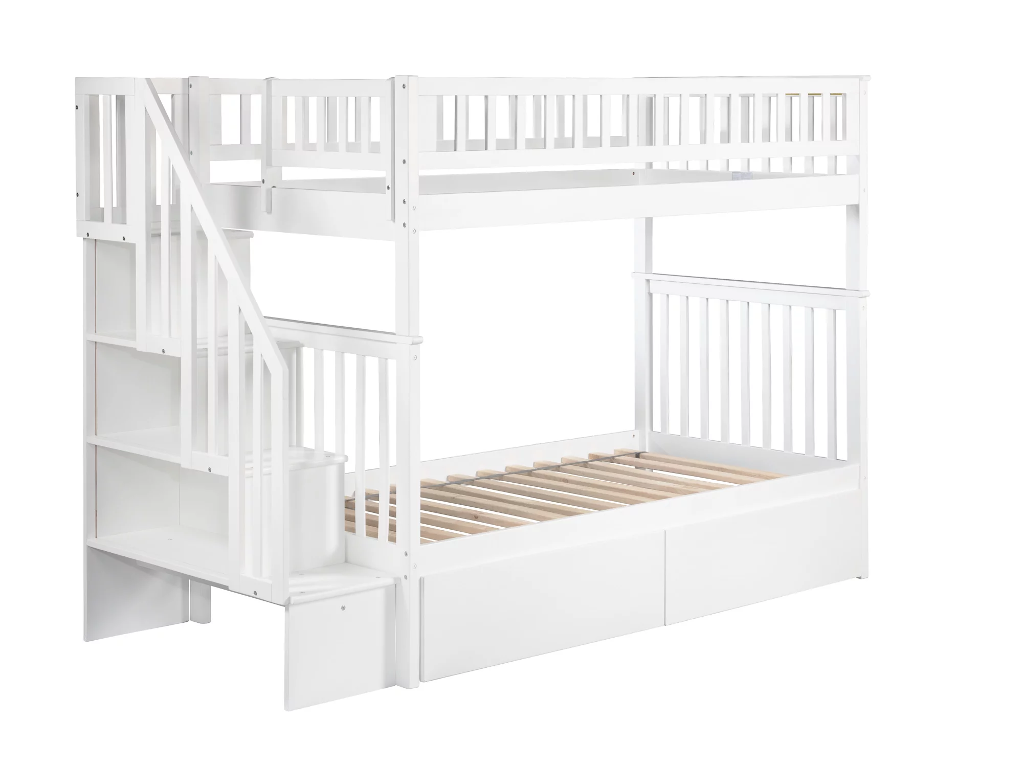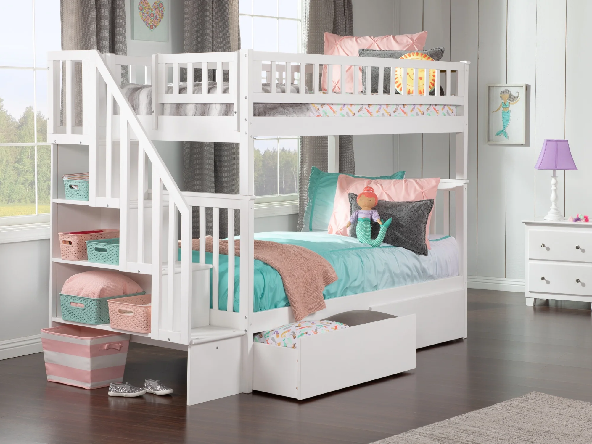 AFI Woodland Staircase Bunk with Turbo Charger and Urban Bed Drawers-Color:White,Size:Twin over Twin