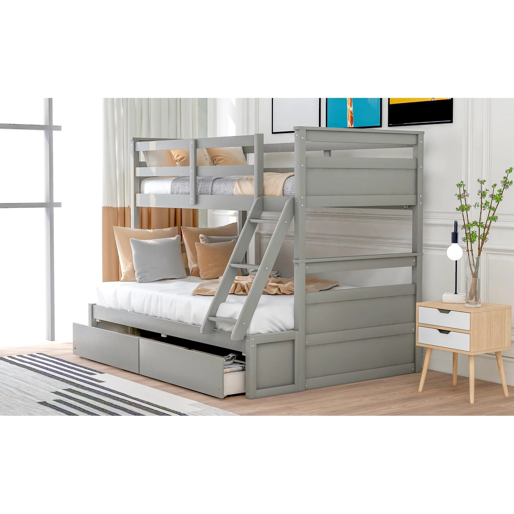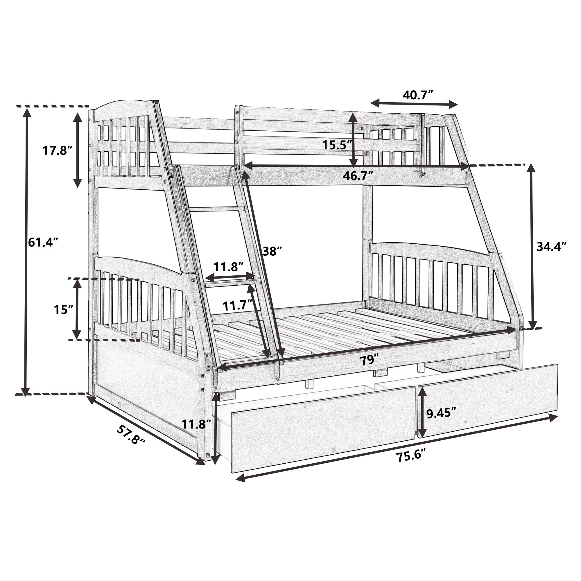 Home Adores, Inc. Rhett Twin Over Twin Bunk Bed with Two Drawers and Slide Antique Grey