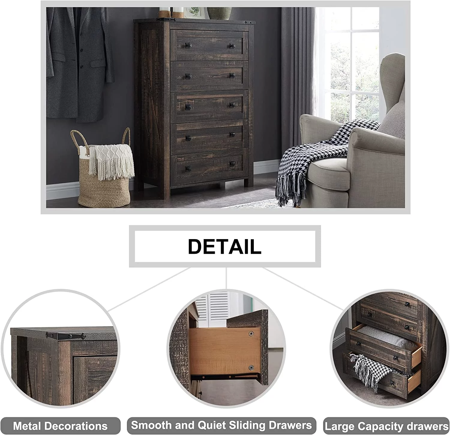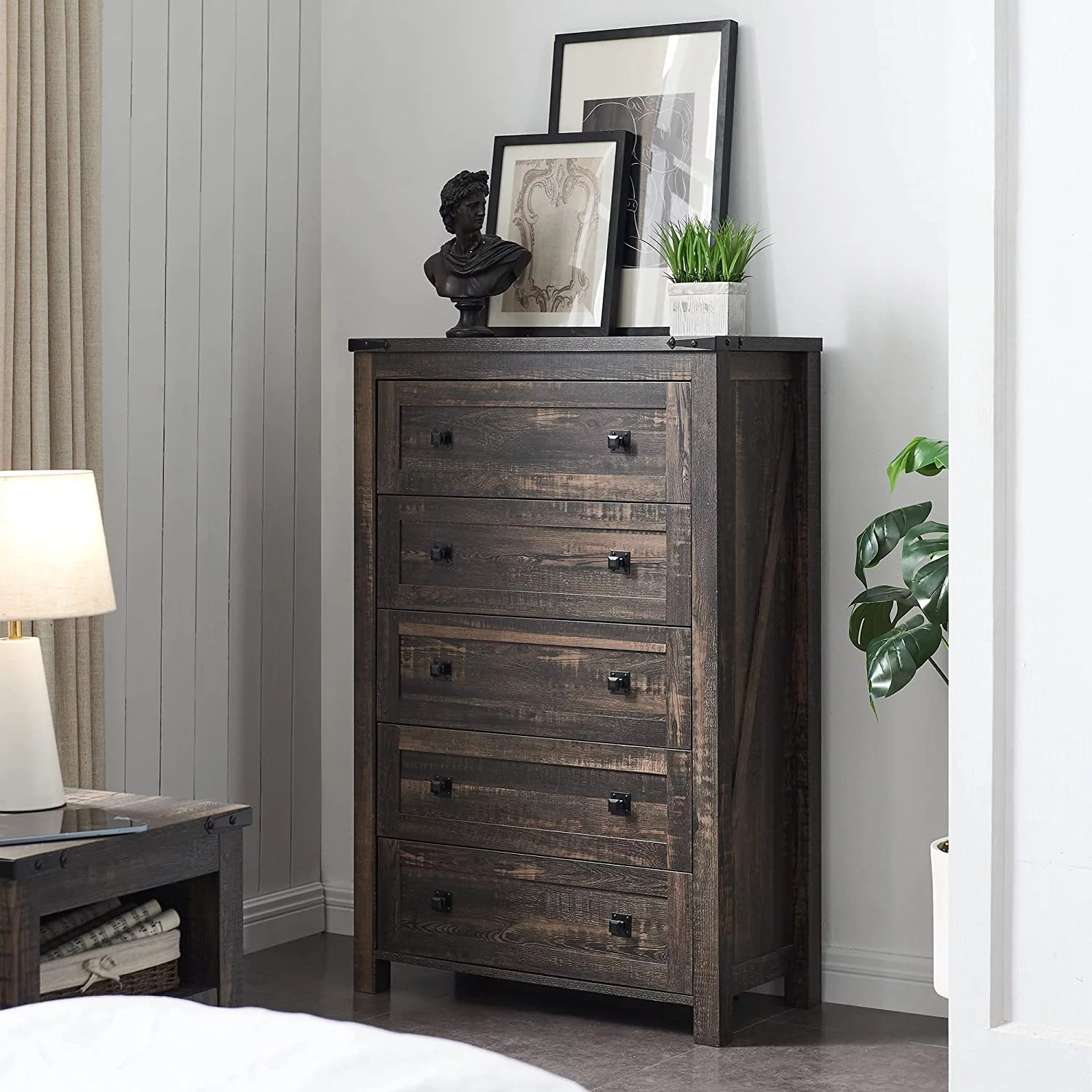 Furniture of America Greer Rustic Walnut and Black Bar 5-Drawer Chest by
