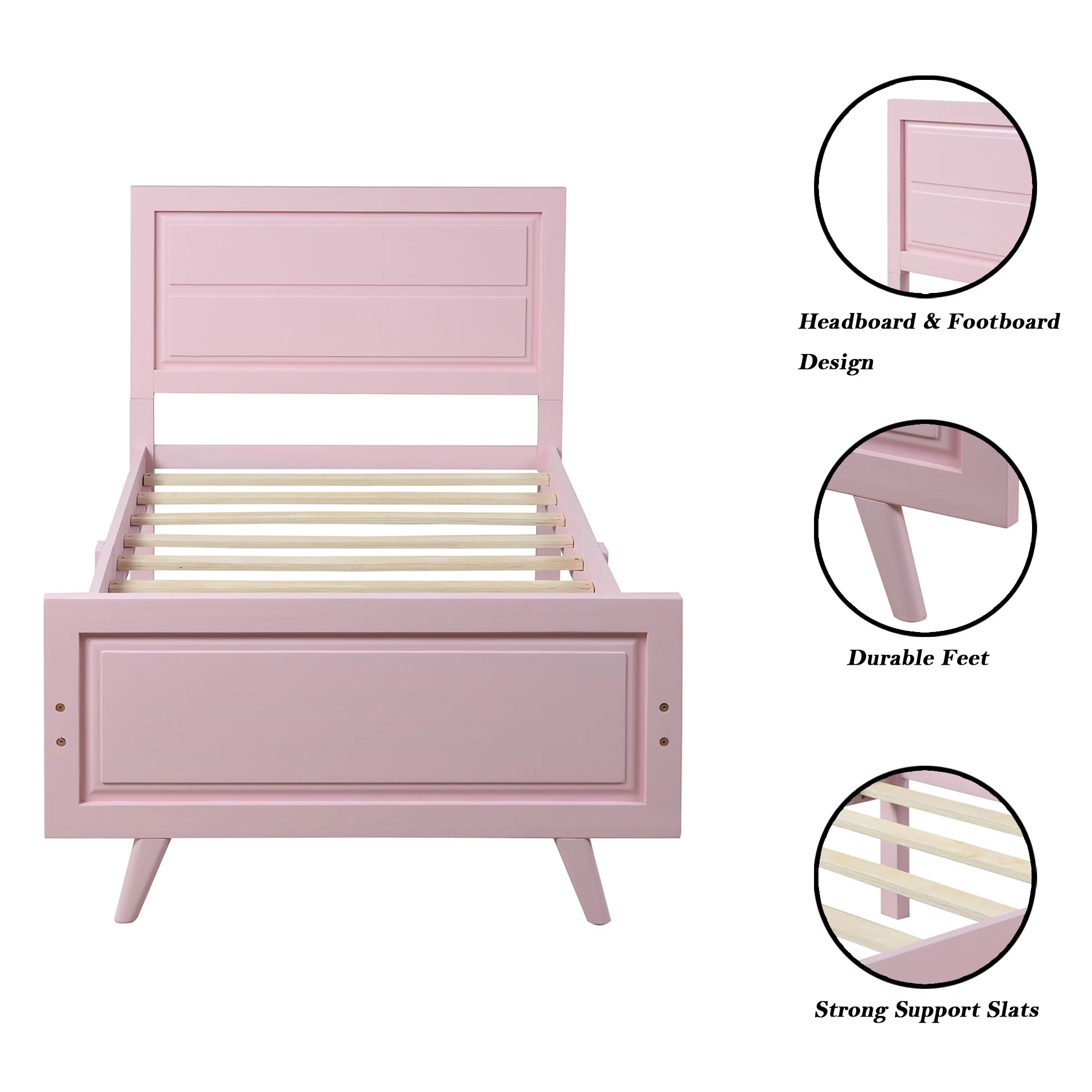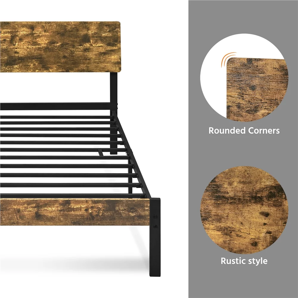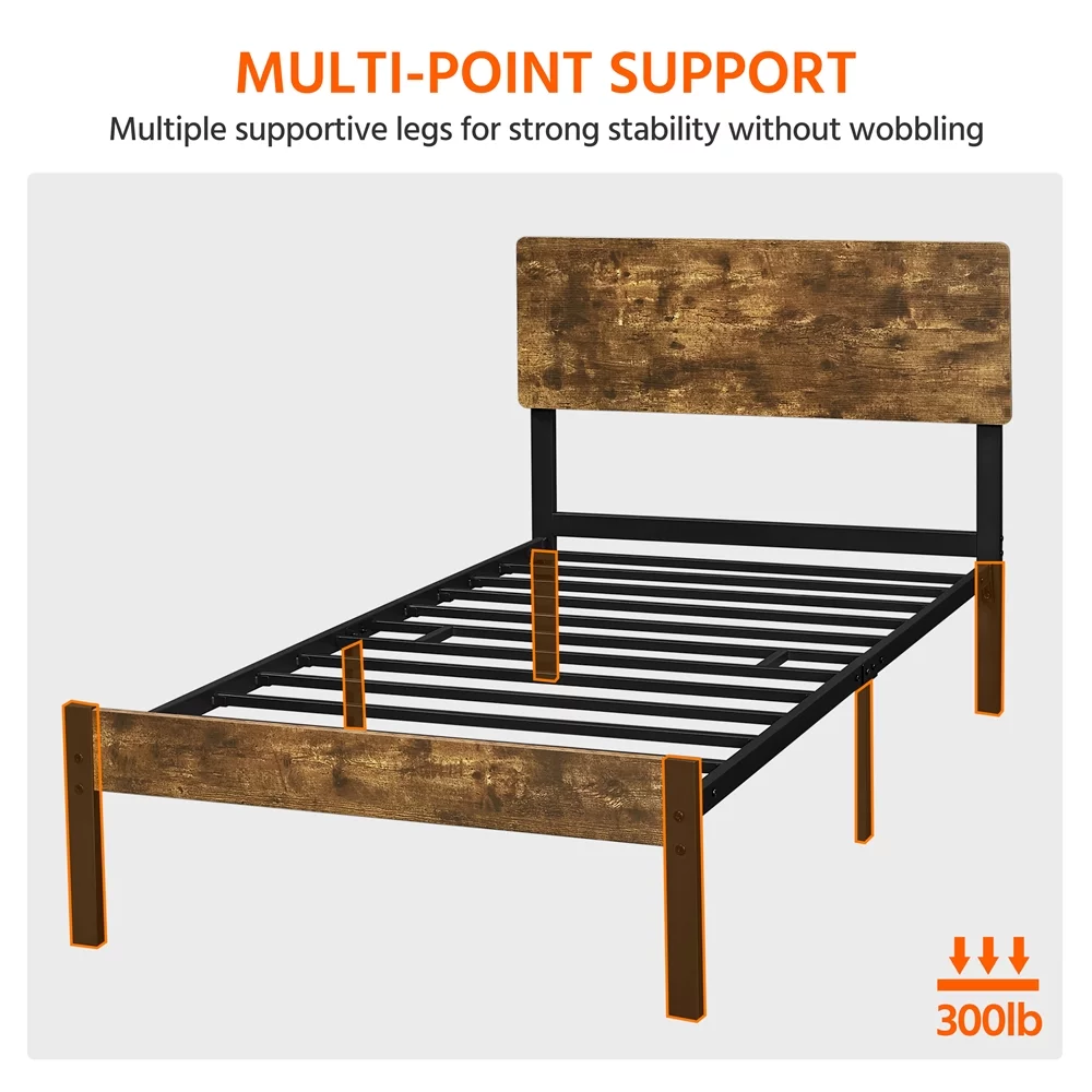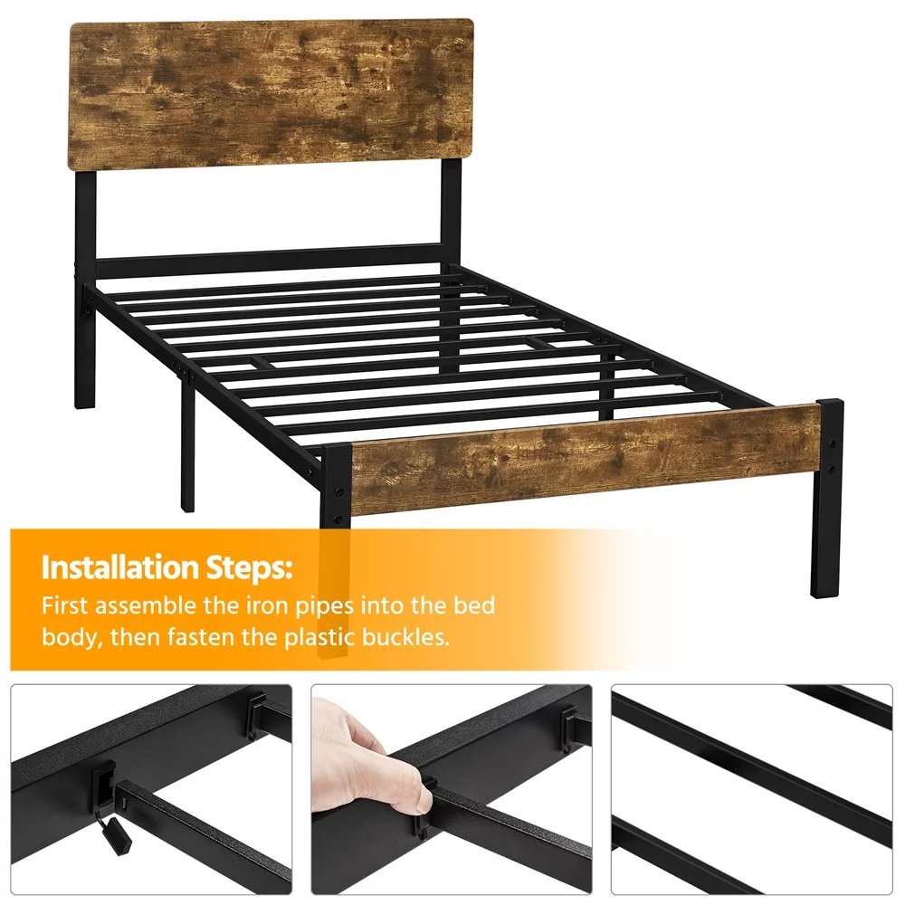 Topeakmart Platform Metal Twin Bed Frame with Wooden Headboard & Footboard