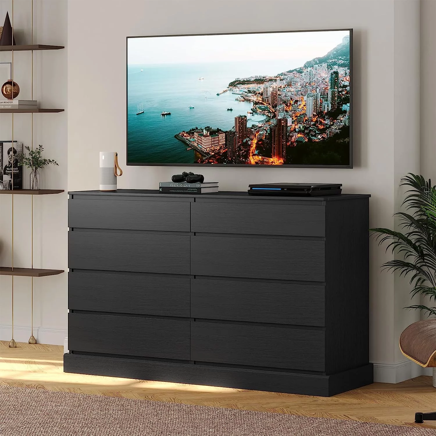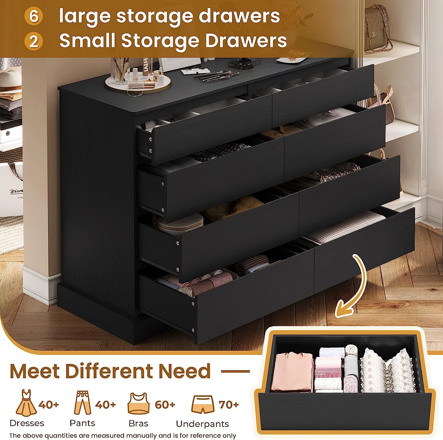 Black Double Dresser with 8 Drawers for Bedroom, Wide Chest of Drawers Storage Cabinet for Living Room