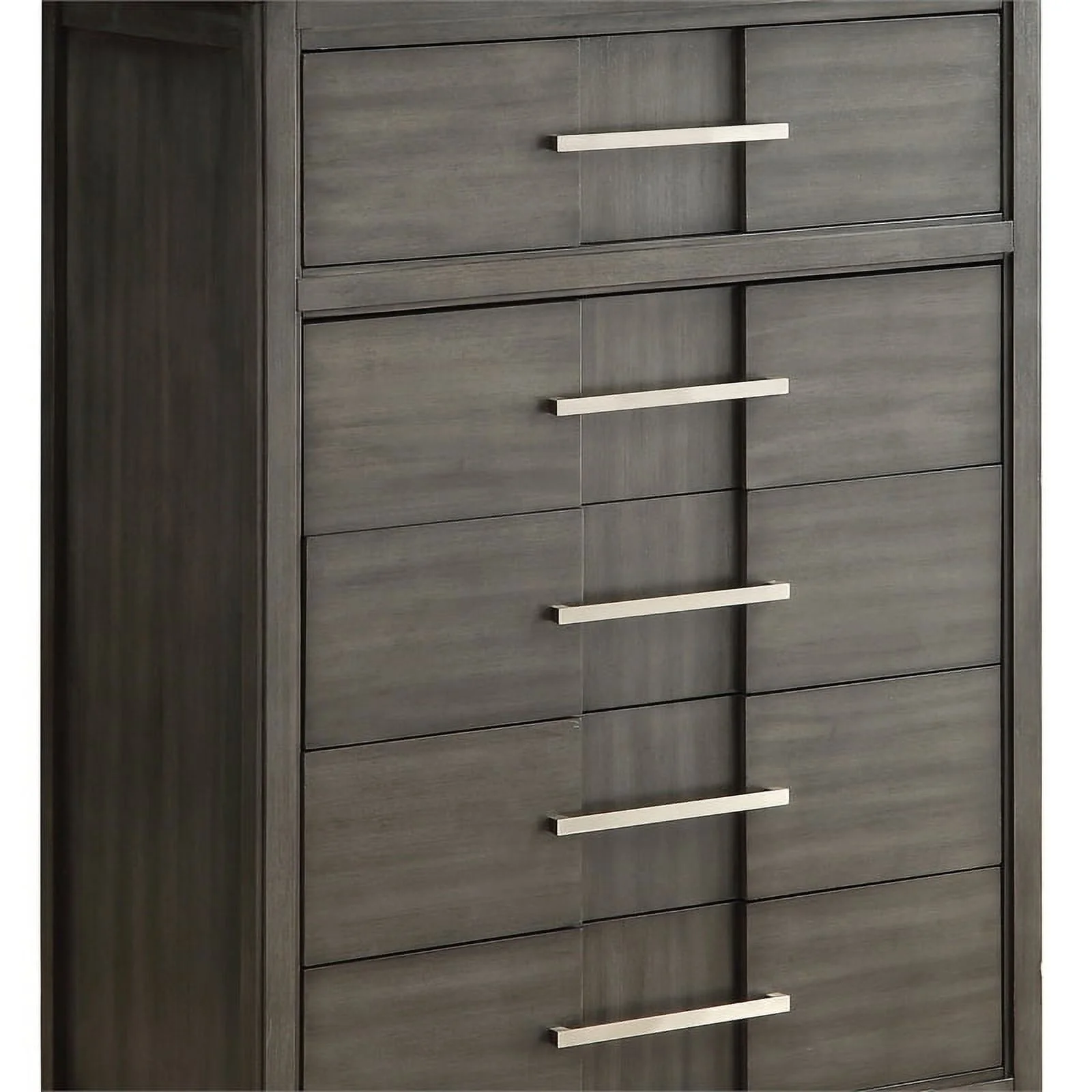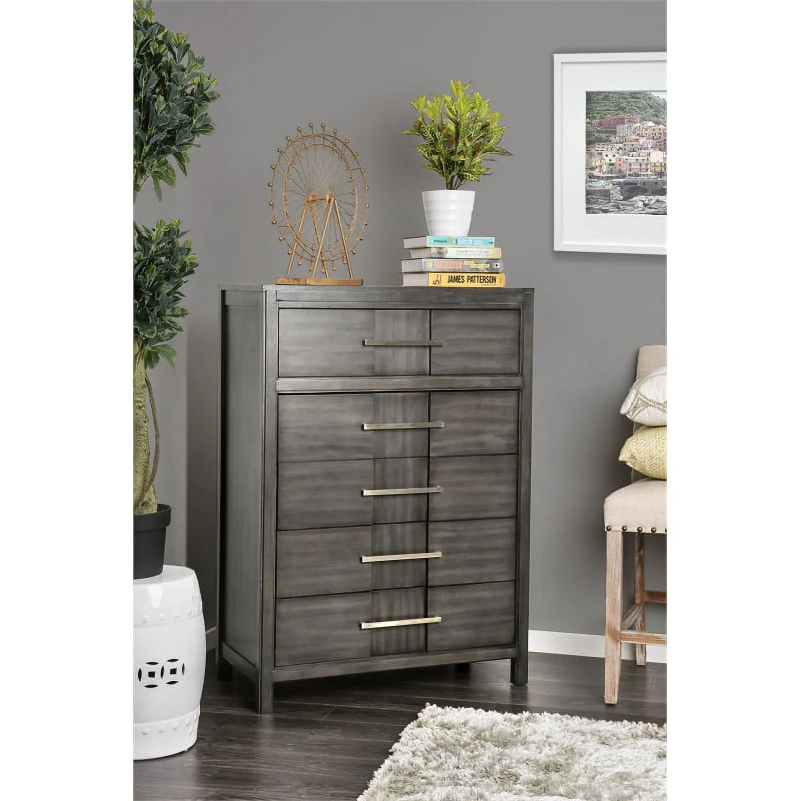 Furniture of America Vela Transitional Solid Wood 5-Drawer Chest in Gray