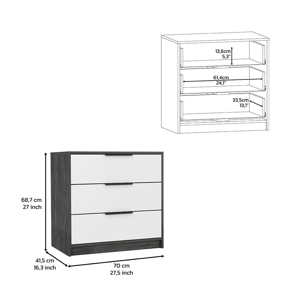 CoSoTower 3 Drawers Dresser Maryland, Superior Top, Smokey Oak / White Finish