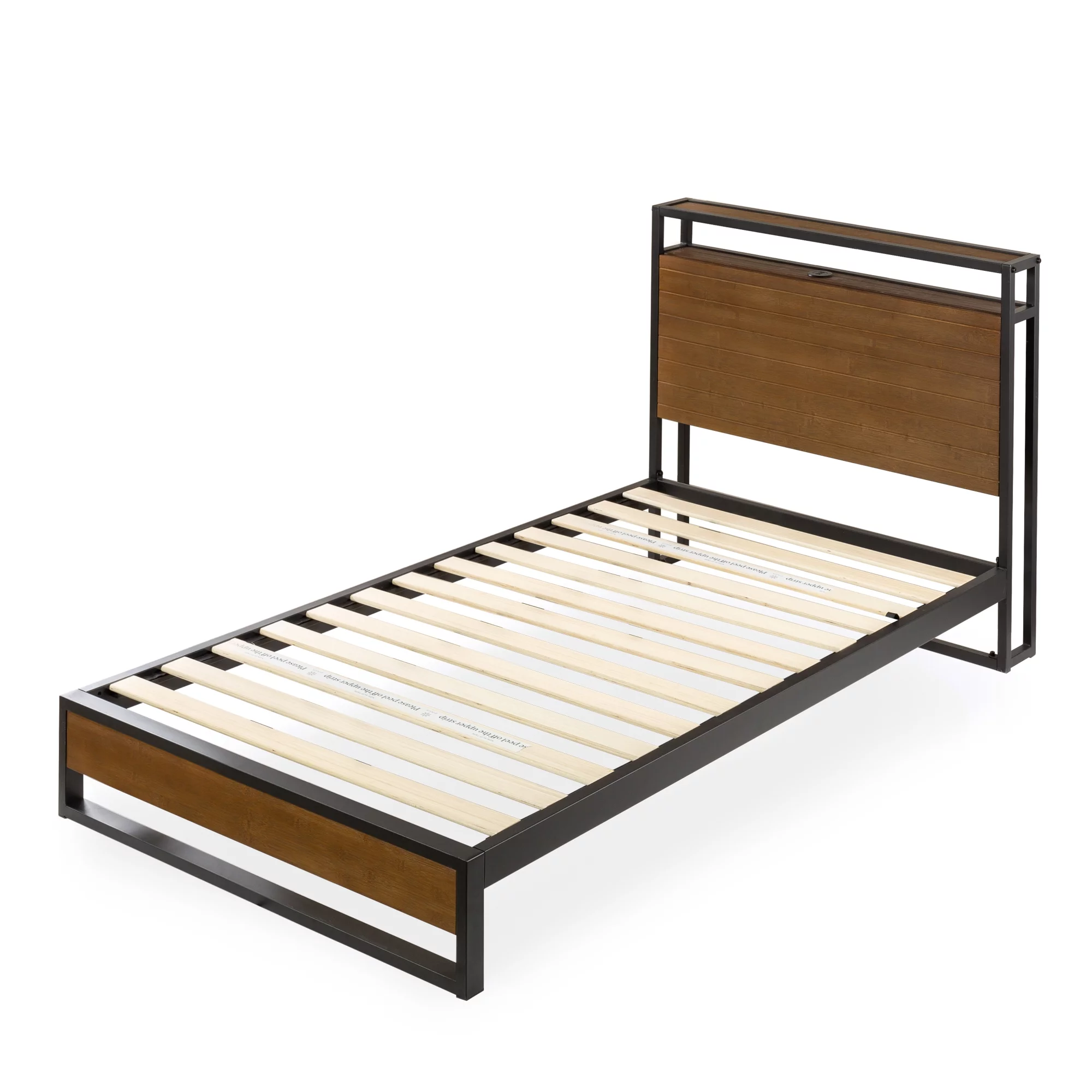 Zinus Suzanne 39" Bamboo and Metal Platform Bed Frame with Shelf and USB Ports, Adult, Twin