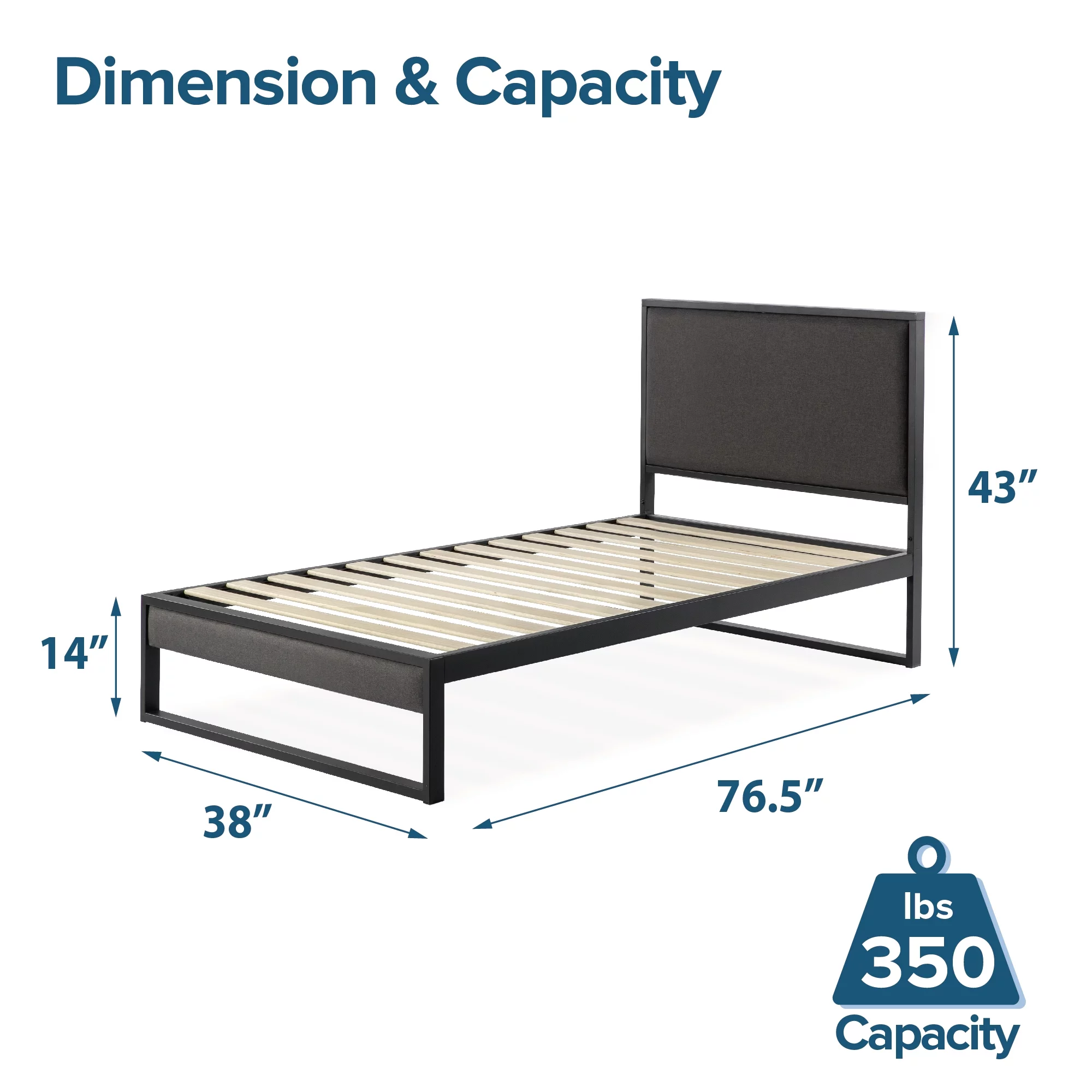Zinus Christina 43" Upholstered Platform Bed with Headboard, Twin, Gray